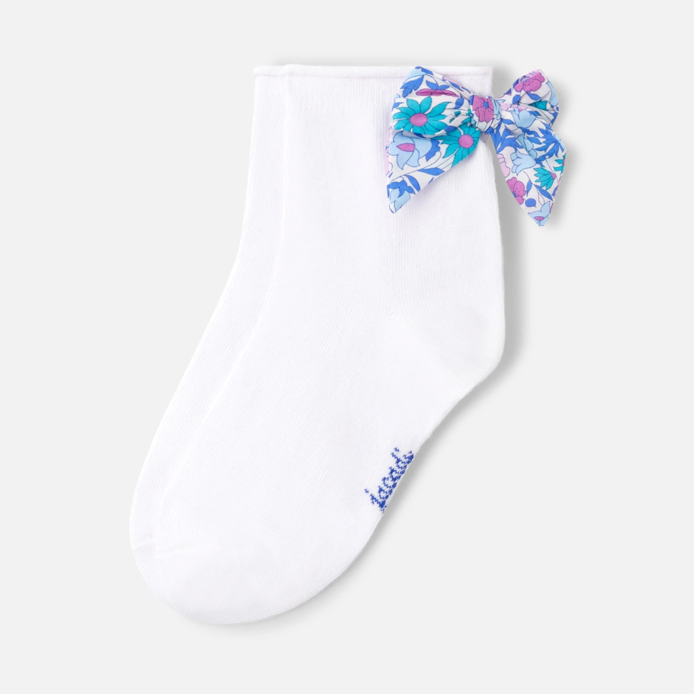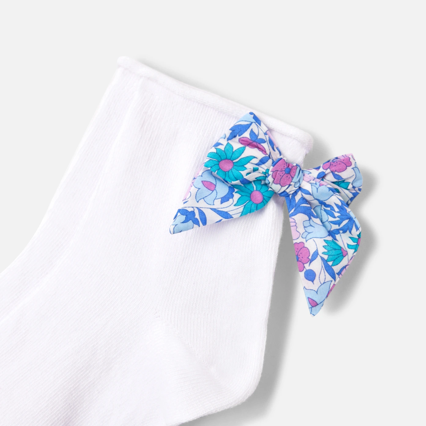 溫暖的天氣來了,帶有 Liberty 織物蝴蝶結的漂亮女孩襪子也隨之回歸。搭配瑪麗珍鞋出席活動,或搭配網球鞋打造清新外觀,柔軟的針織面料可輕鬆穿上。