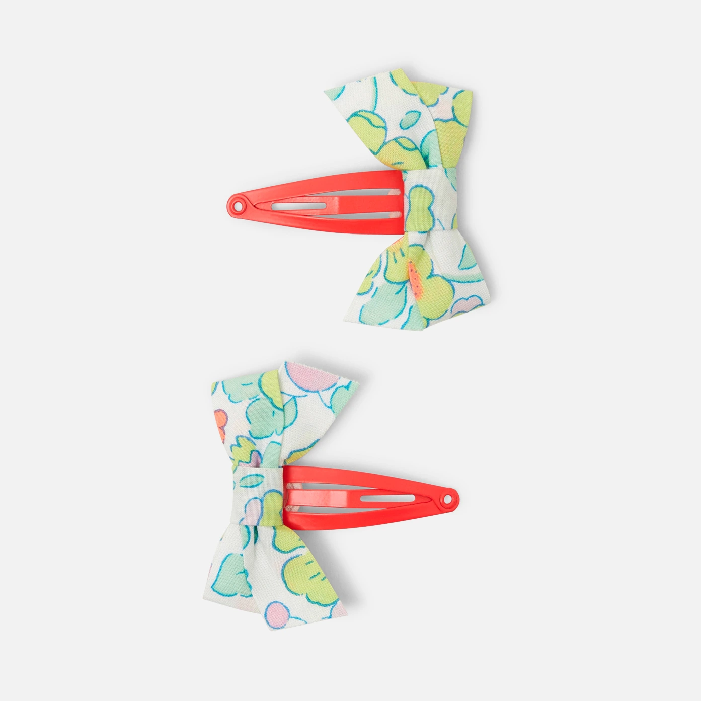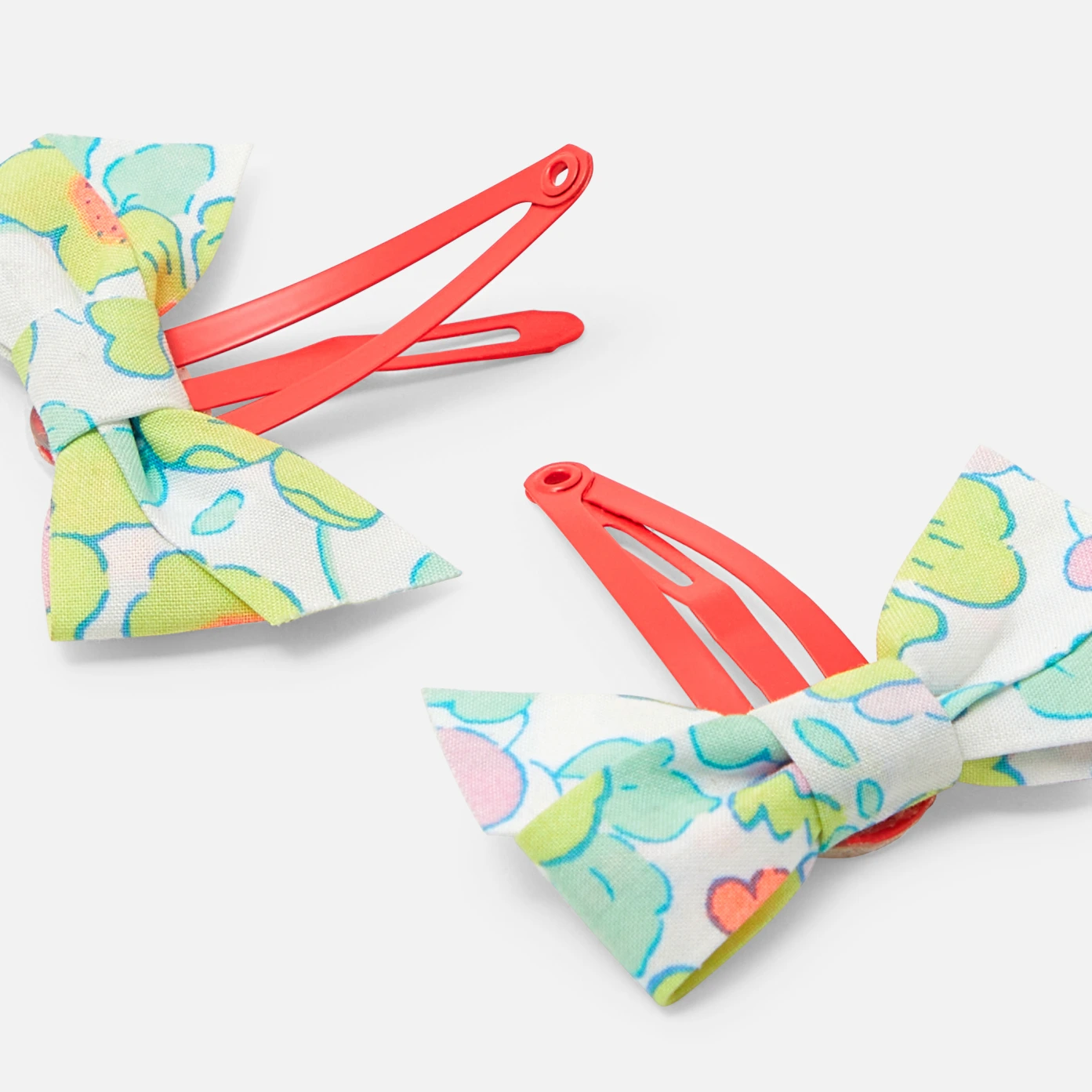 這些女嬰髮夾可為任何髮型增添色彩繽紛、波西米亞風格。飾有 Liberty 織物蝴蝶結,可與配套服裝搭配。