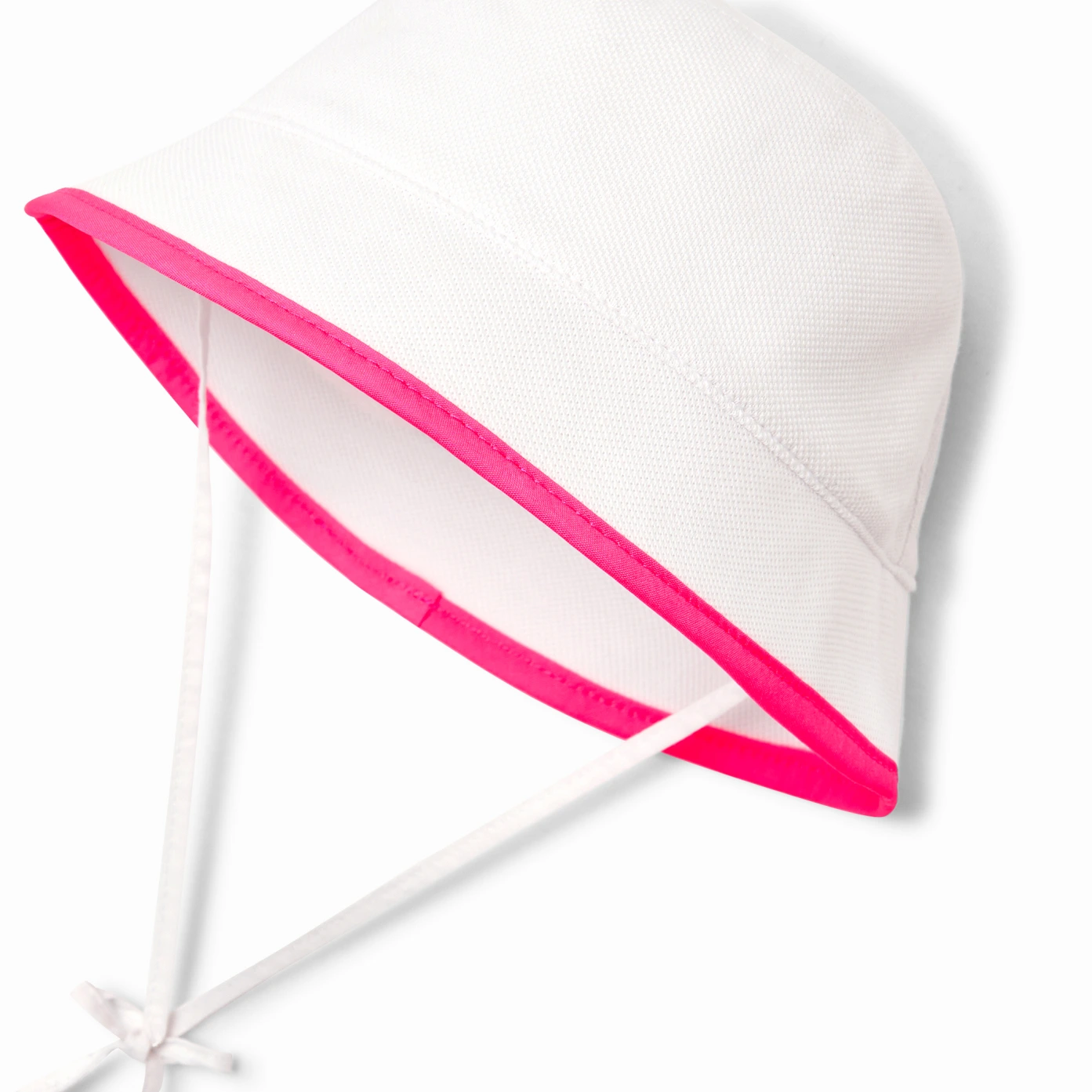 這款女童遮陽帽是夏季必備品,也是每個小女孩衣櫃裡的必備品。採用棉質珠地布製成,螢光流行斜紋為這款款式註入活力,與服裝系列相得益彰。