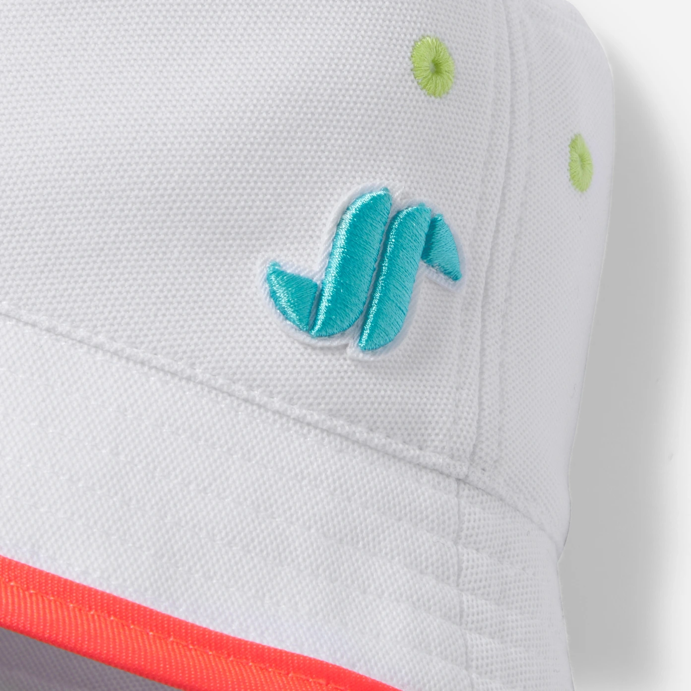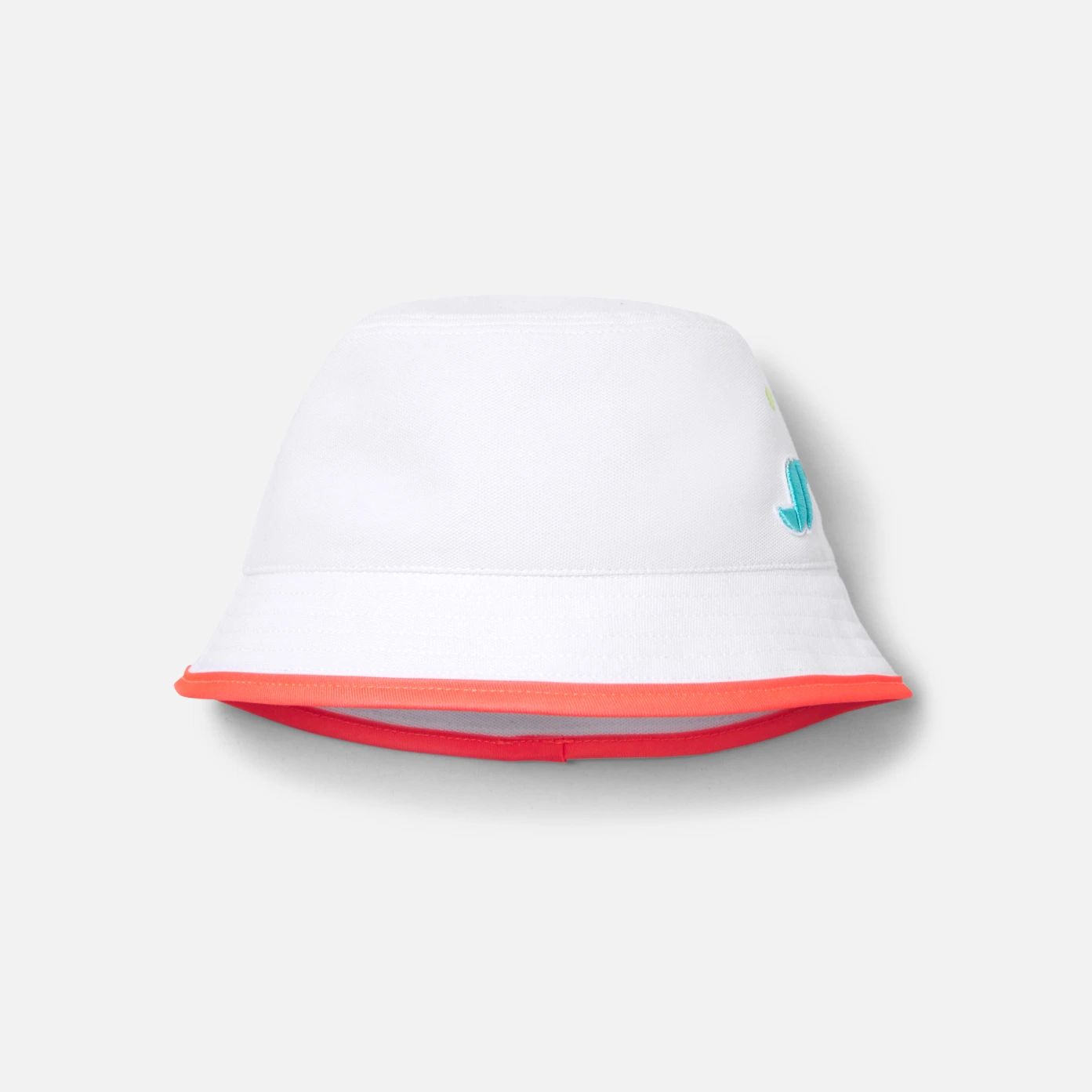 這款鮑伯帽子更現代的設計,但同樣實用,採用夏季運動時尚的外觀。採用柔軟舒適的棉質珠地布製成,帶有霓虹色斜紋飾邊,將陪伴您的女兒整個夏天。