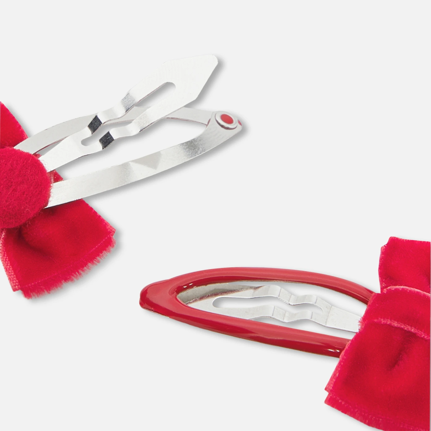 這款新髮夾讓小女孩展現與媽媽同樣的優雅風采。飾有絲絨蝴蝶結,與 Jacadi 聖誕洋裝完美搭配。