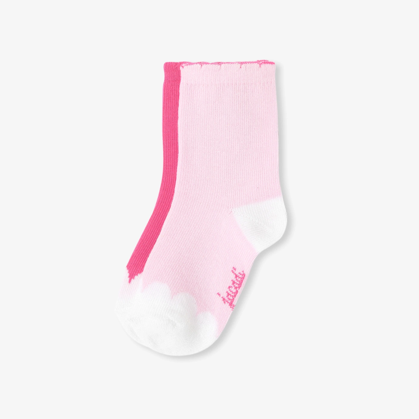 這款新生女嬰短襪以小貓與花朵圖案點綴,並飾有精緻花邊設計,與服裝系列完美呼應,為日常穿搭增添獨特巧思。