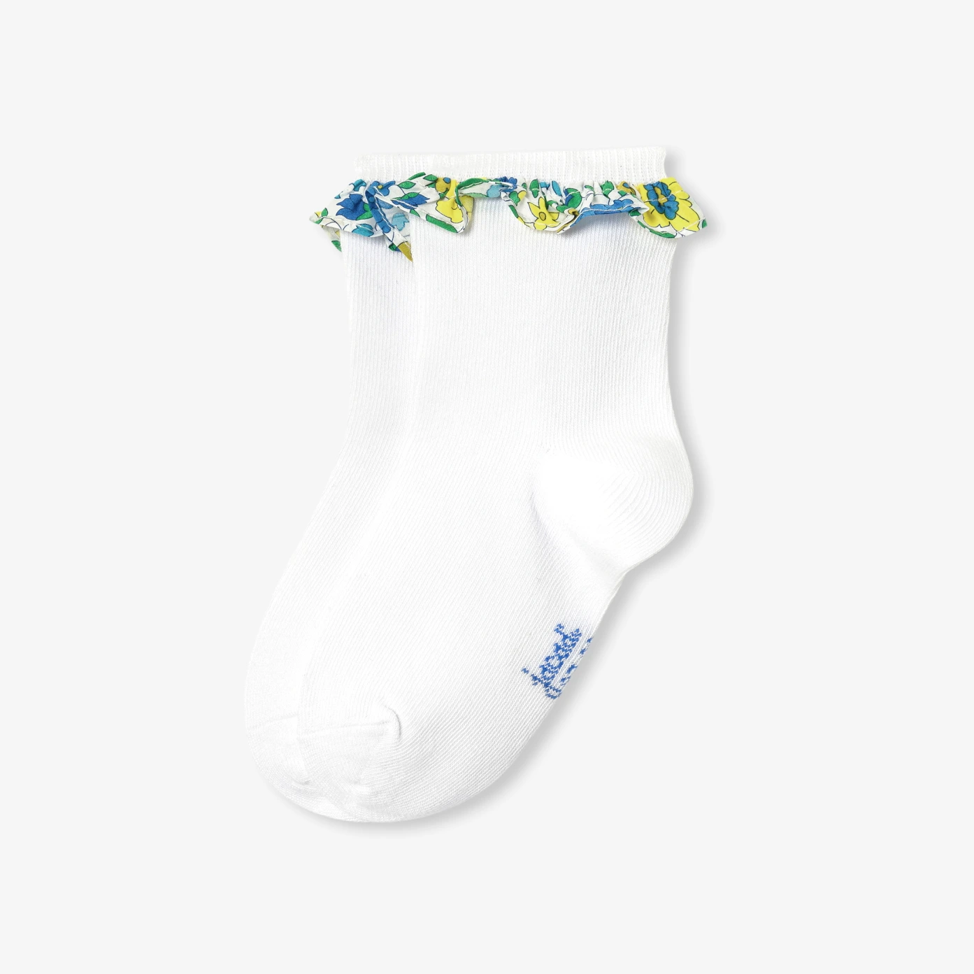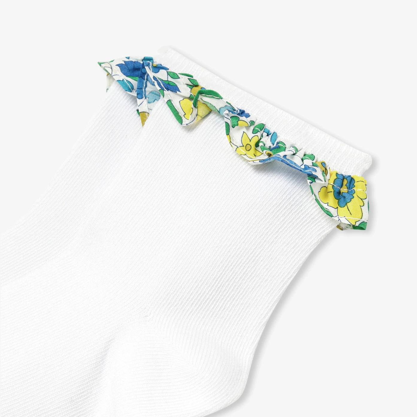 這對優雅而精緻的白色棉質襪子,配有美麗的Liberty花布荷葉邊,為季節性服裝增添了一抹俏皮感。搭配裙子或短褲,營造出一種優雅浪漫的造型。