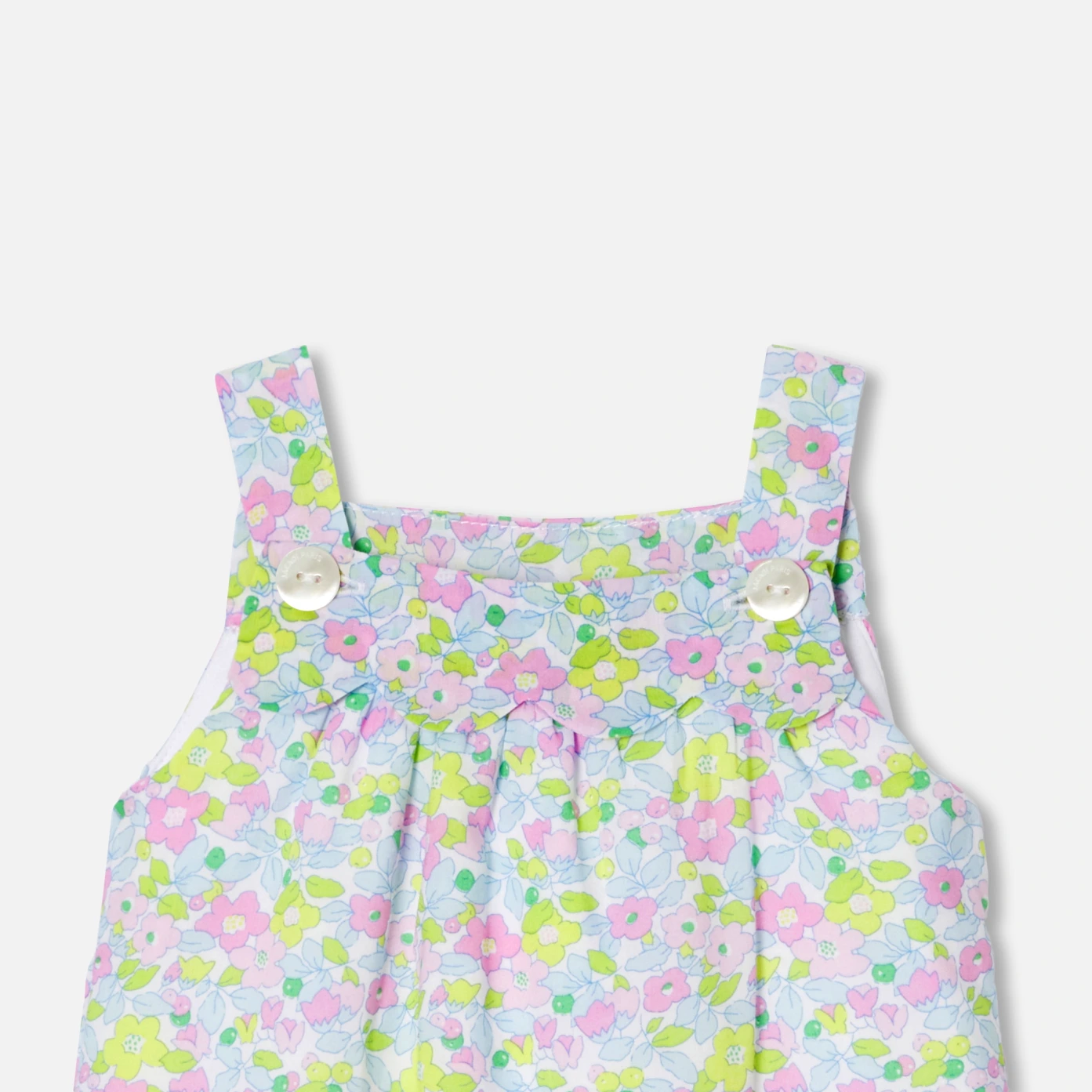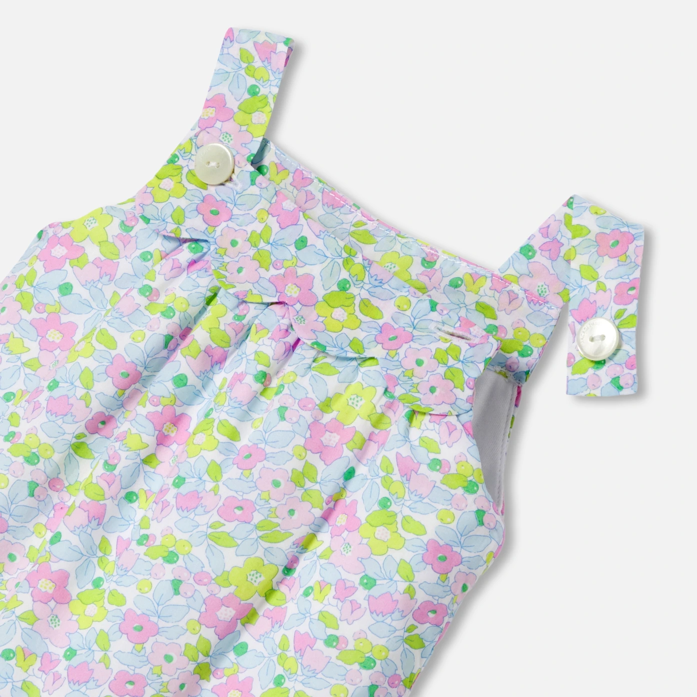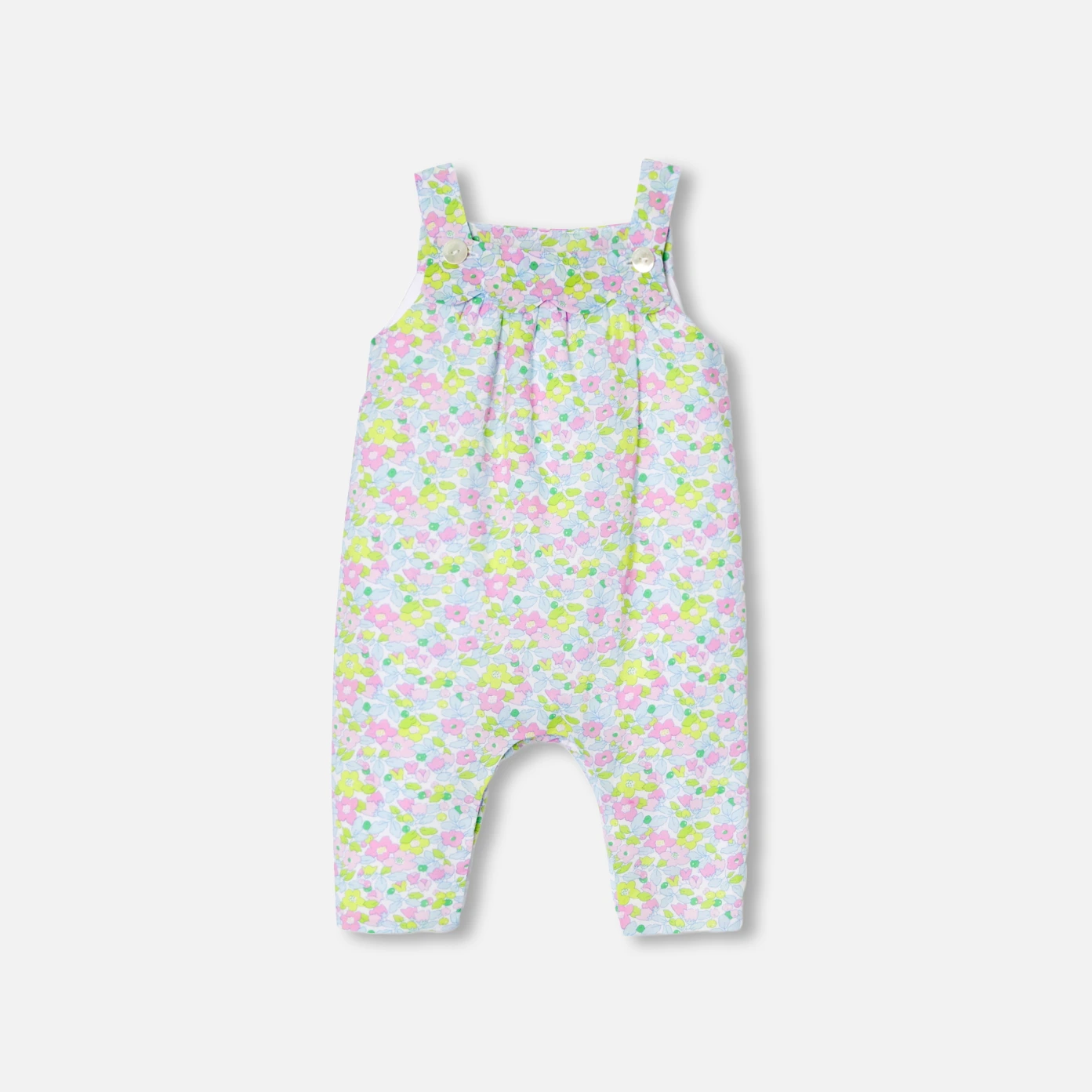 今年秋季的這款吊帶褲採用 Liberty 布料製成,色調柔和並具有時尚流行的顏色。採用針織布料襯裡和輕盈的婆鋪棉,舒適柔軟,漂亮的扇形花瓣細節增添了現代感。釦子設計的吊帶設計和胯部開口,方便穿著,是送給嬰兒的絕佳禮物。