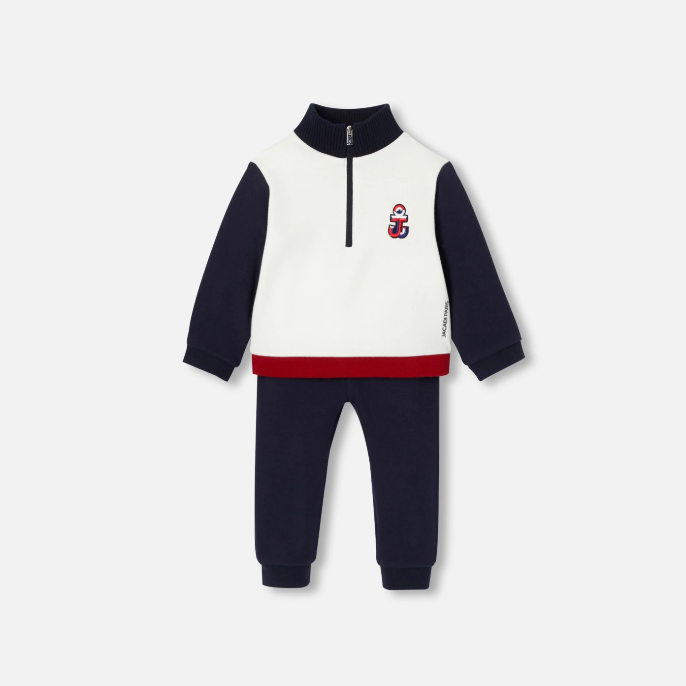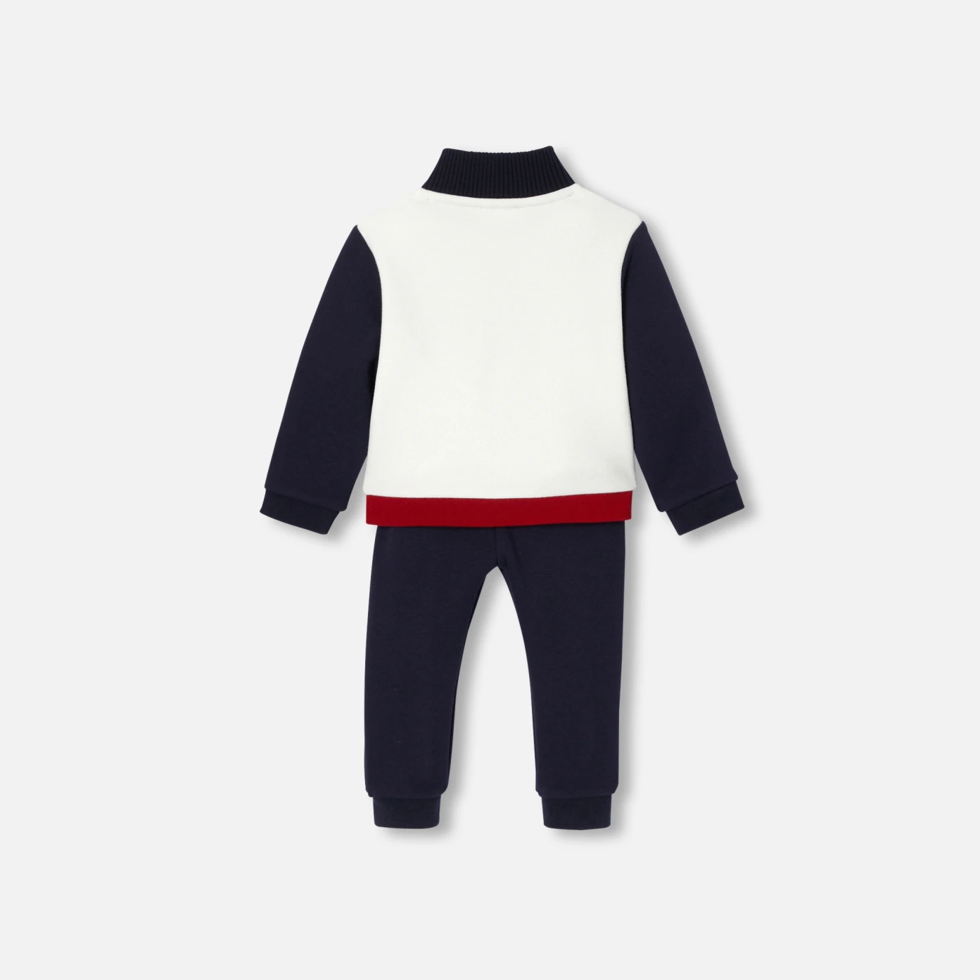 這款小男童刷毛套裝已成為日常必備單品。方便穿脫,特別適合忙碌的早晨。由拼色刷毛運動上衣和帶彈性腰帶的休閒褲組成,並採用當代水手風格設計,是開學禮物的好選擇。