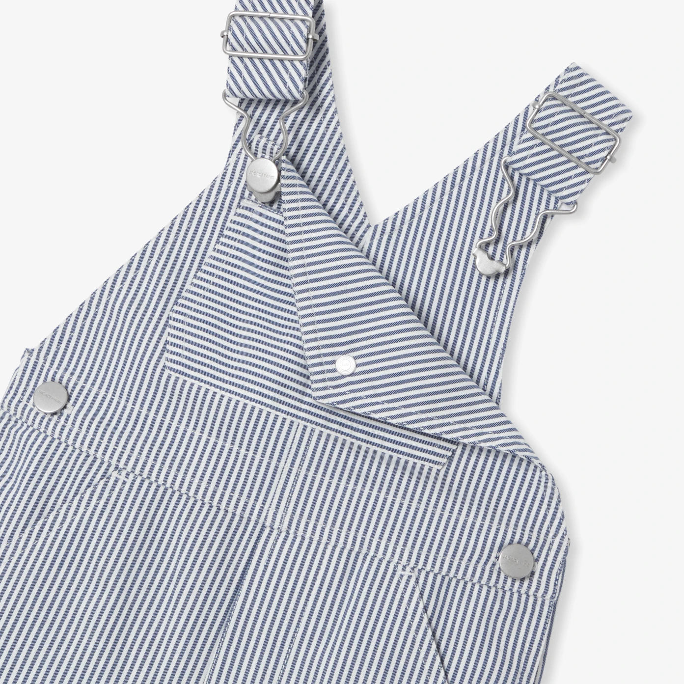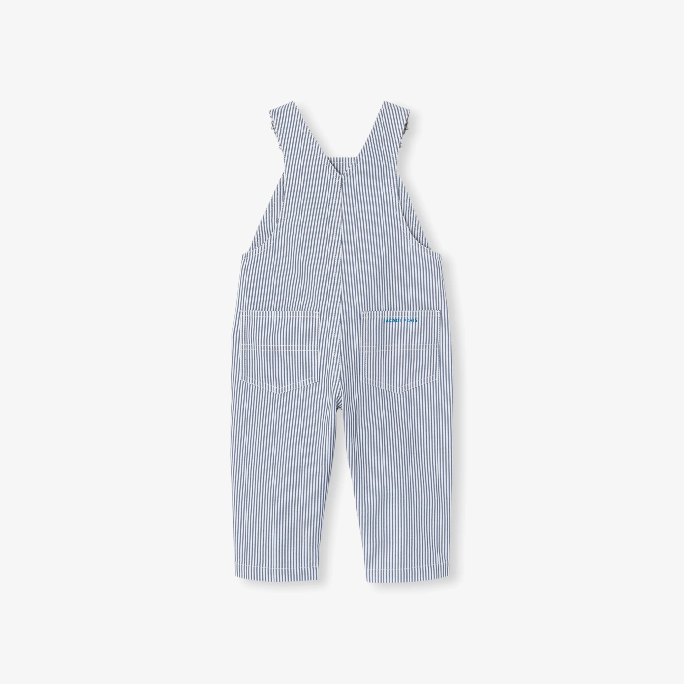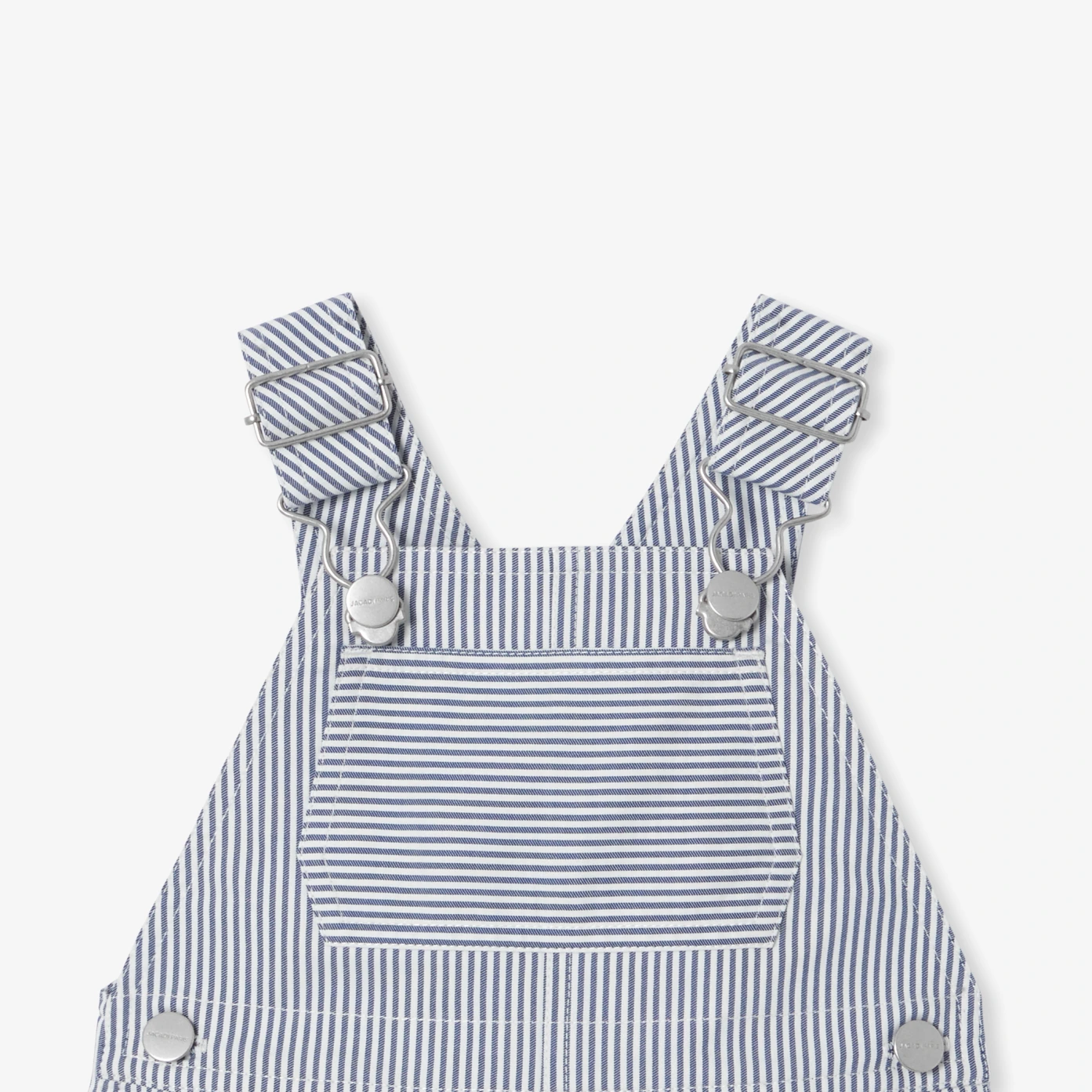 這款男寶寶連身吊帶褲以細緻的淡藍與白色條紋,營造春日清新氛圍。採用柔軟有機棉帆布製成,經典工裝剪裁搭配胸前大口袋與可調節吊帶設計,舒適又實穿。可內搭Polo衫,加上亮橘色拉鍊外套,輕鬆打造適合托嬰或親子出遊的時尚造型。