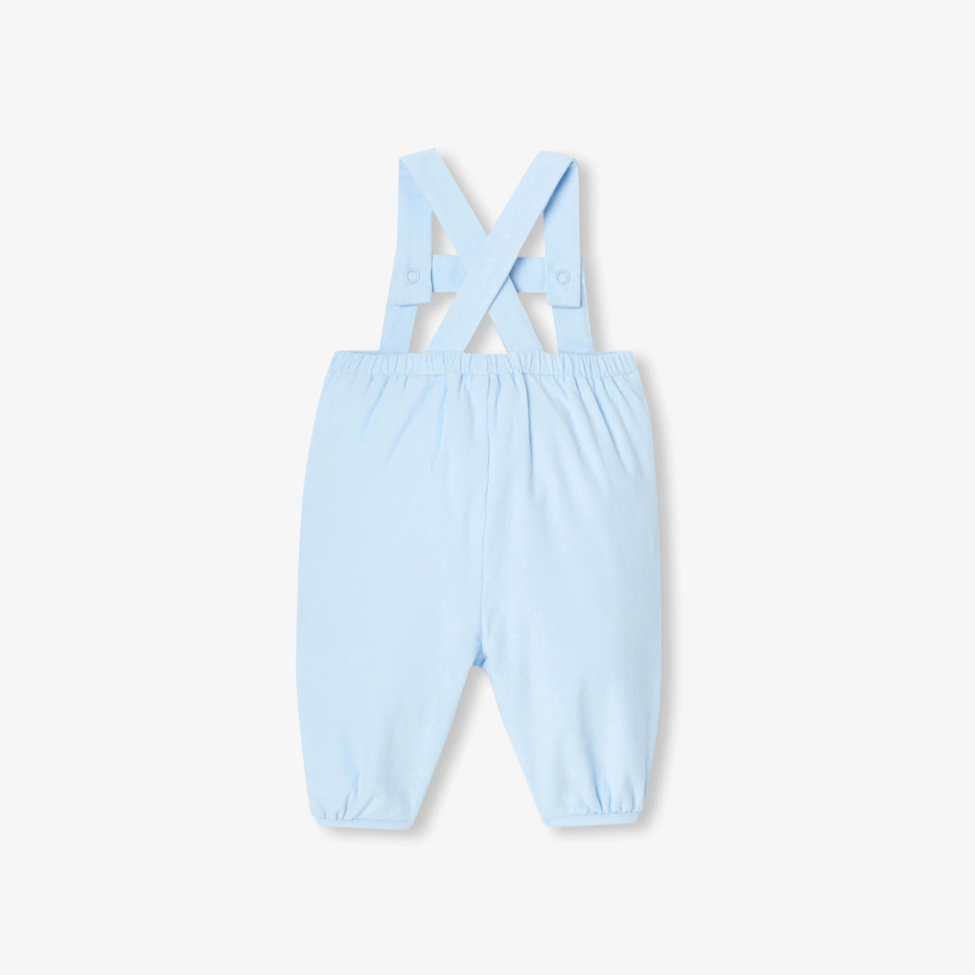 這款男寶寶吊帶褲是秋冬衣櫥中的經典款,採用柔軟天鵝絨,色彩永恆不退流行。內層針織襯裡並薄鋪棉,提供舒適與保暖,背部交叉肩帶與褲檔按扣設計,方便且穿著安全。可搭配素色包屁衣與開襟衫,打造休閒時尚造型。