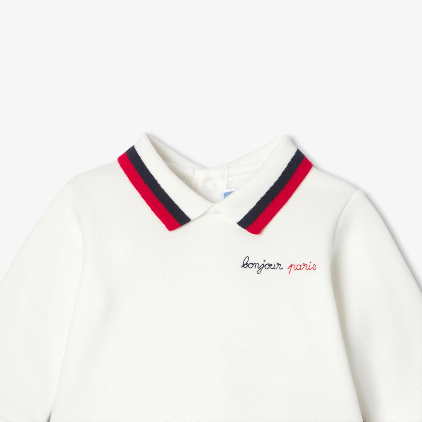 結合運動風格與實用性,這款嬰兒套裝展現出十足魅力。柔軟舒適的搖粒絨面料,搭配背面按釦開合的POLO領上衣與彈性腰圍長褲,為日常穿搭提供便利與舒適感。無論是日托中心或居家穿著皆宜,也是理想的誕生禮選擇。