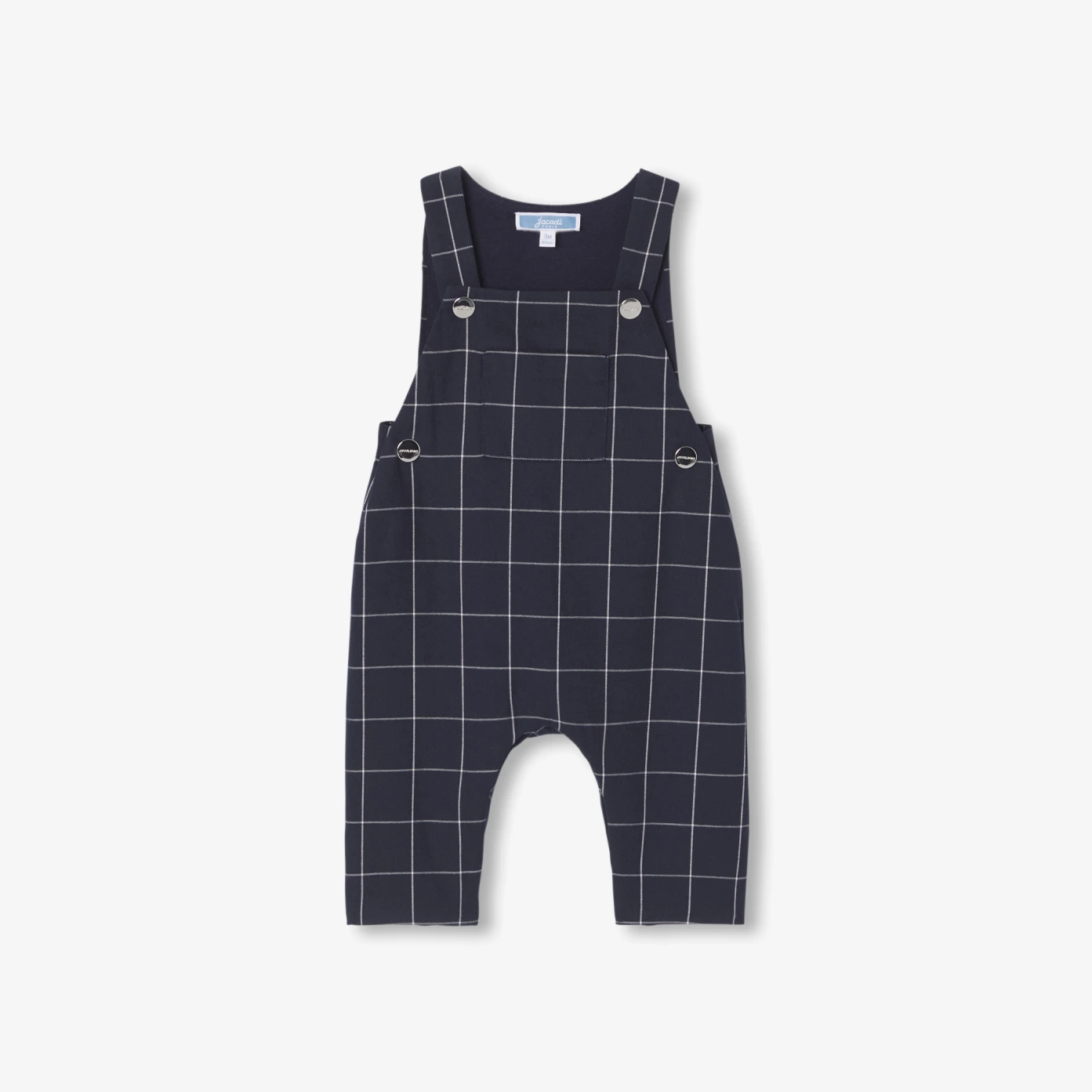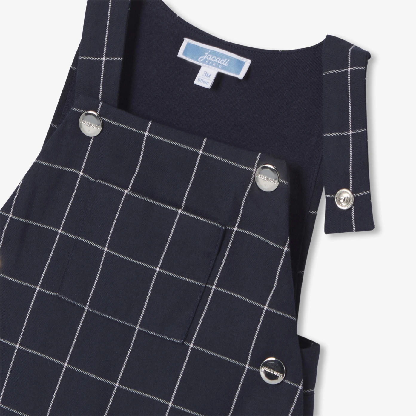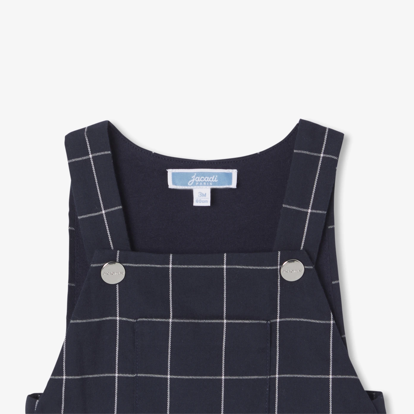 融合優雅與舒適,這款新生吊帶褲以典雅格紋脫穎而出。採用有機棉絨布製成,內裡為柔軟棉質針織,兼具舒適與包覆感。肩帶與褲襠處皆設有隱形按釦,方便穿脫。可搭配包屁衣與校隊風格開襟外套,打造現代感十足的造型。