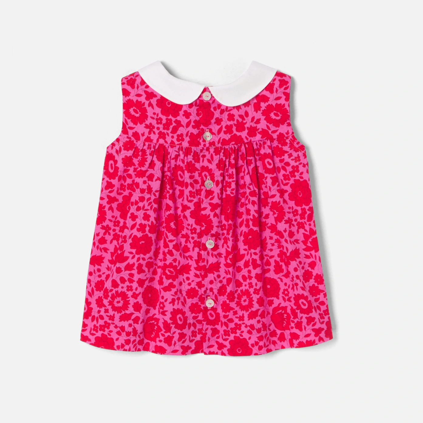 這款女童平織上衣將 Liberty 面料的魅力與棉質的輕盈相結合,為女孩帶來美麗的夏日。飾有對比鮮明的娃娃領,正面細膩的打摺帶來現代感,適合搭配華達呢短褲和涼鞋享受夏日的假期。