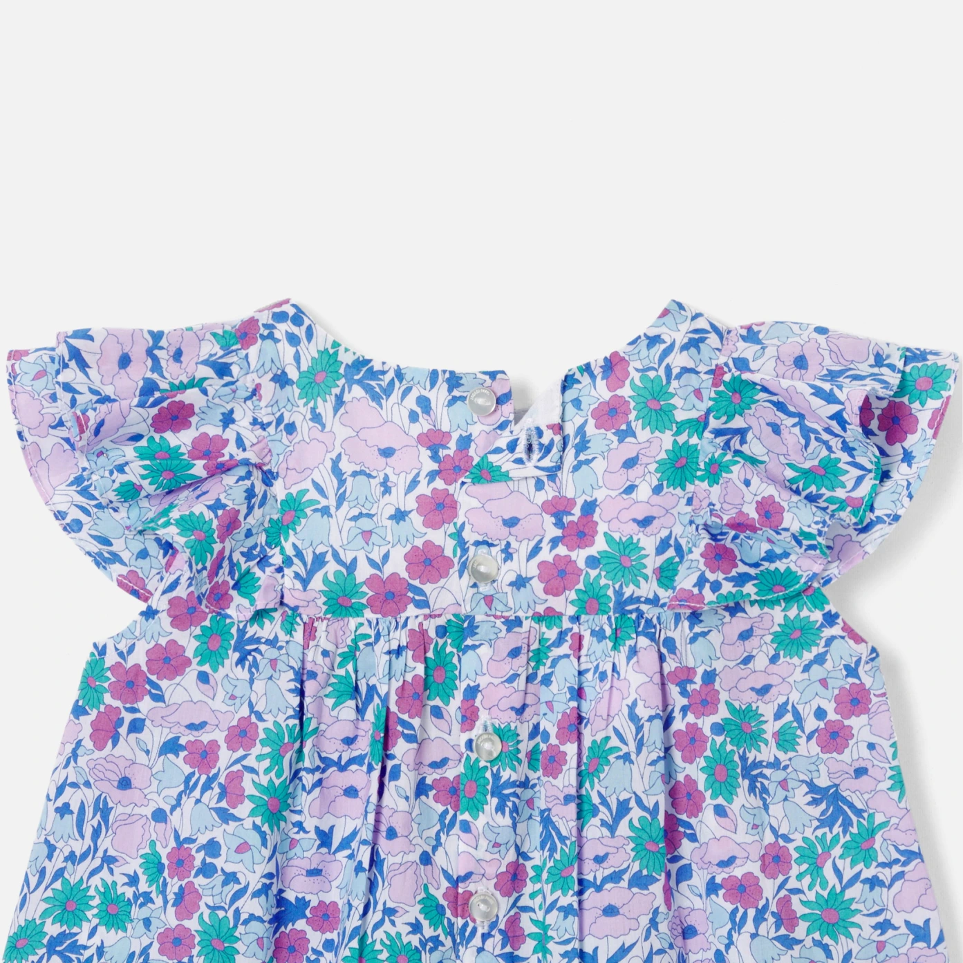 這款女童平織上衣採用 Liberty 面料製成,採用荷葉邊袖子、美麗的褶皺設計,展現其所有魅力。搭配短褲和涼鞋,優雅地度過整個夏天。