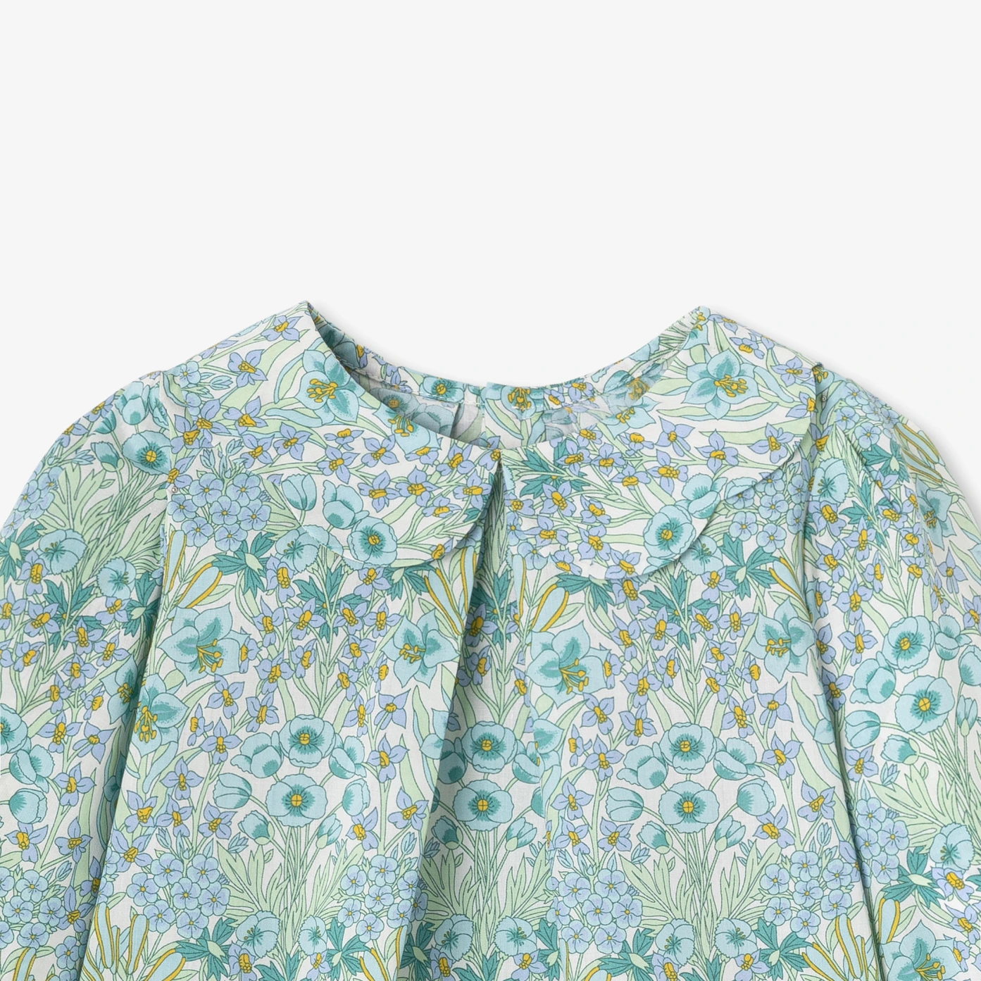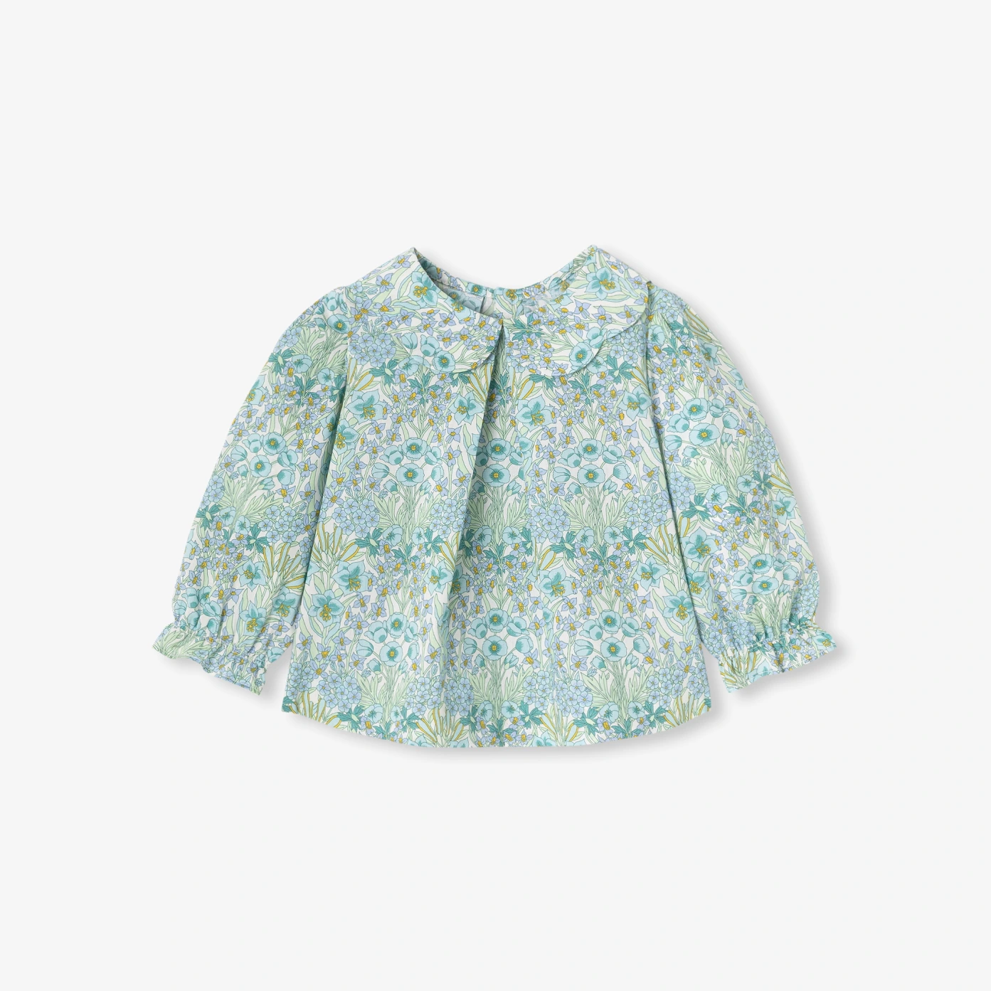 這款女寶寶平織上衣以 Liberty Montain Primerose 印花布料打造,為 Jacadi 專屬配色,彷彿漫步於柔和浪漫的花卉世界。以舒適棉質製成,搭配放大版波浪領與前幅中摺細節,營造立體而優雅的輪廓。長袖袖口則以荷葉與鬆緊收口設計點綴,增添柔美層次。背部採排釦開合設計,方便穿脫,整體精緻細膩,無論作為日常造型亮點,或穿於特別場合皆相得益彰。建議搭配無袖針織衫與天鵝絨長褲或短褲,展現舒適又優雅的法式造型。