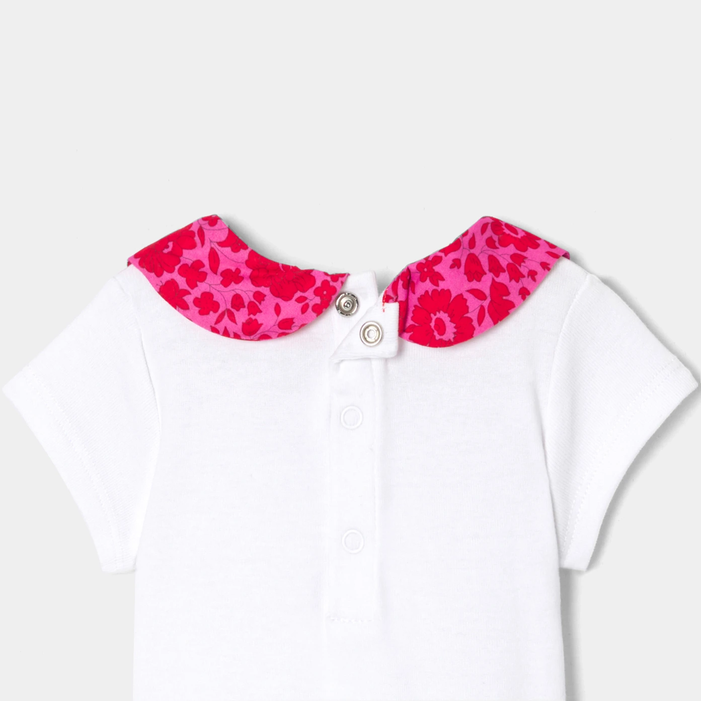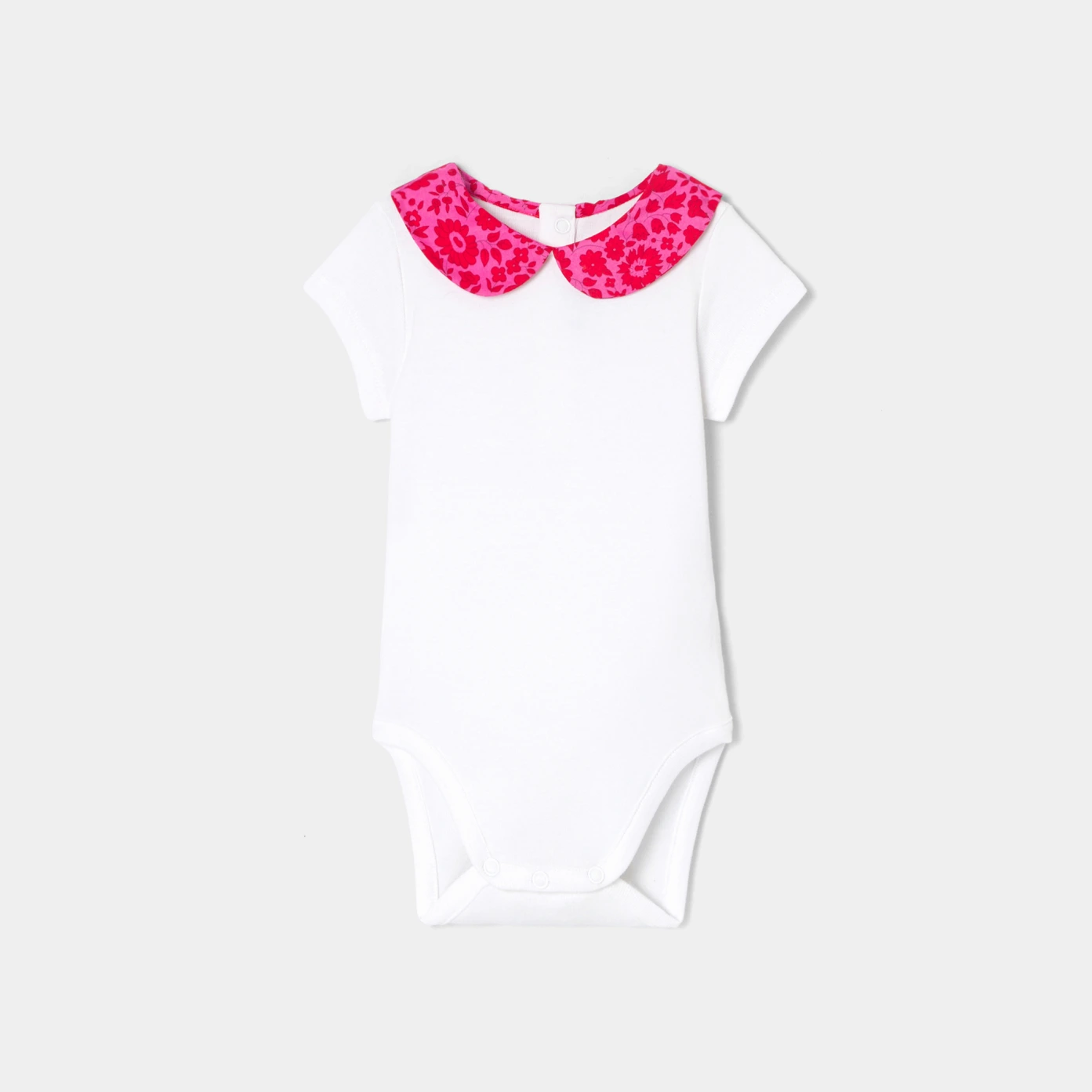 這款短袖連身衣採用優雅的 Liberty 布料衣領,適合春季。他是衣櫃的經典款,可搭配吊帶褲或華達呢短褲,為日常造型增添光彩。