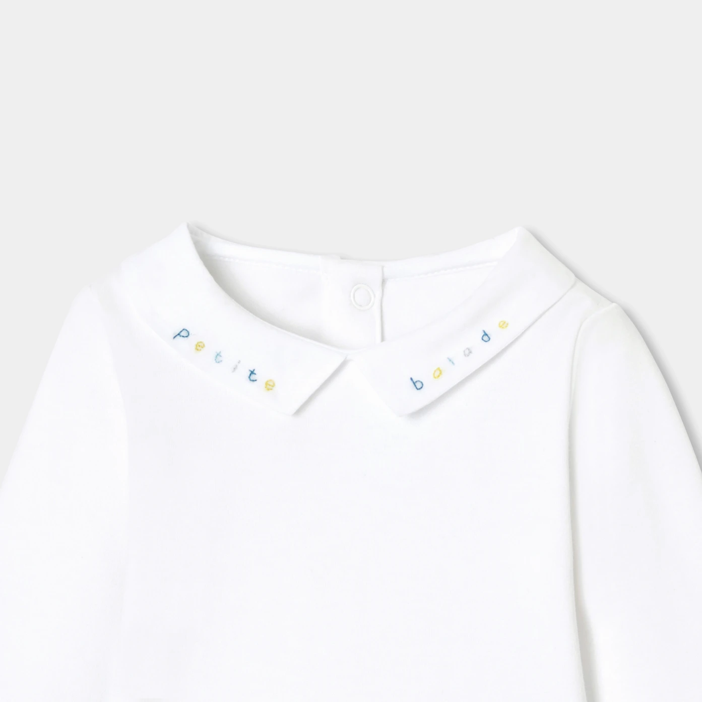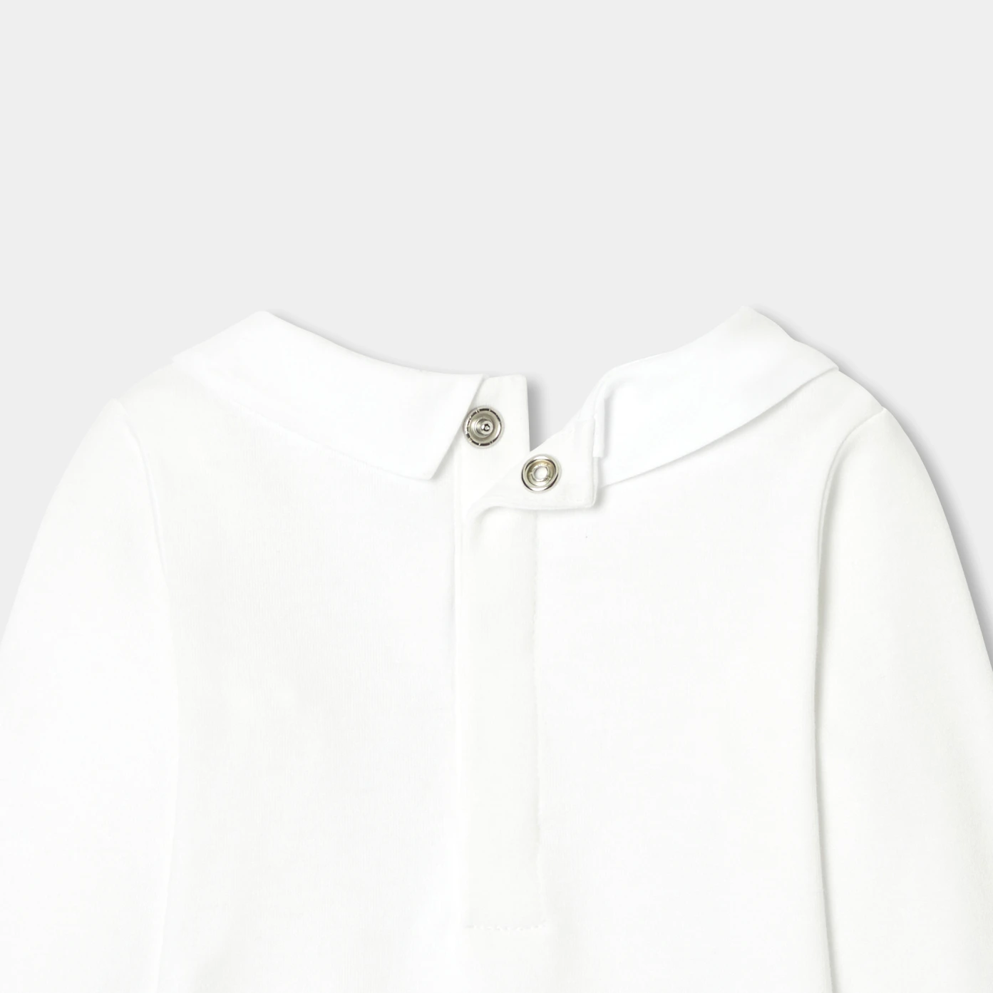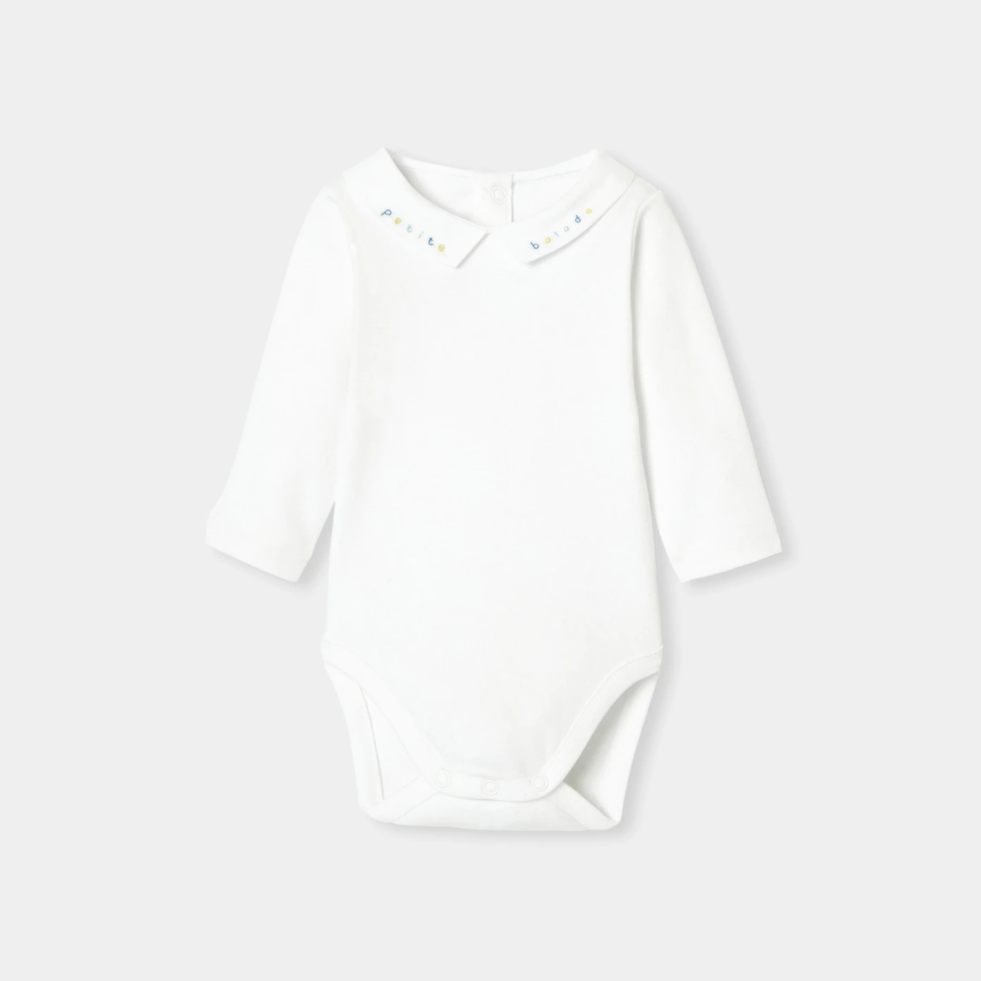 Jacadi 連身衣讓寶寶的優雅從小開始。這款有機棉連身衣配有手工刺繡府綢衣領,今年秋天可將這款有機棉連身衣套在連身裝內,為孩子帶來舒適的感受。