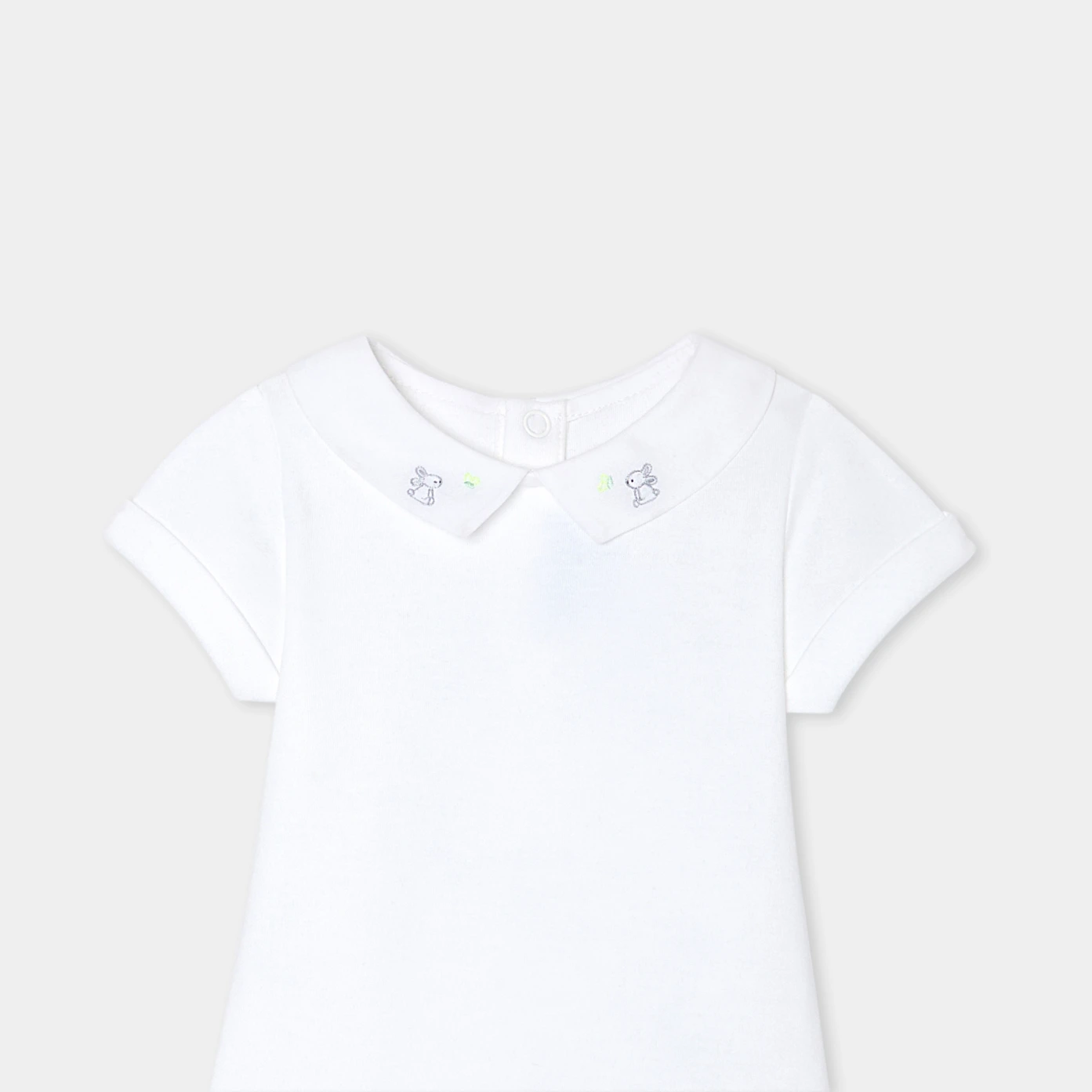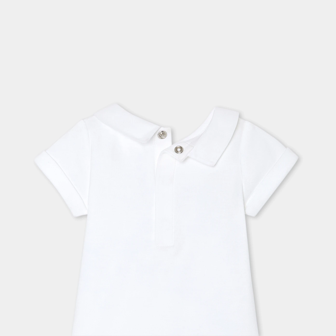 為了迎接寶寶的第一個春天,選擇這款純粹優雅的短袖連身衣。由有機純棉製成,搭配手工刺繡府綢領口和背部按釦開合設計,這款連身衣非常適合搭配吊帶褲和開襟線衫。