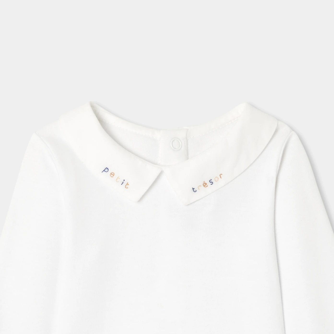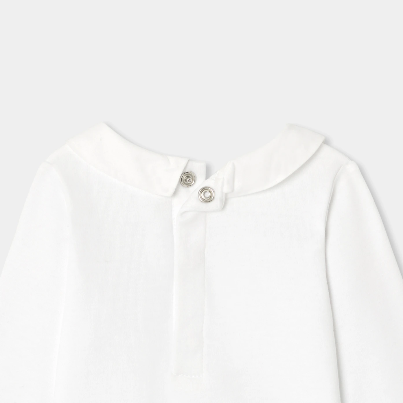 這款既多功能又舒適的新生兒長袖連身衣,採用柔軟舒適的有機棉製成。配有手工刺繡的棉布標誌性領子,搭配天鵝絨連身裝或牛仔褲,輕鬆與Jacadi的系列搭配。