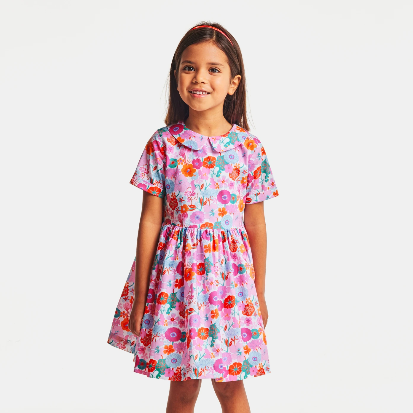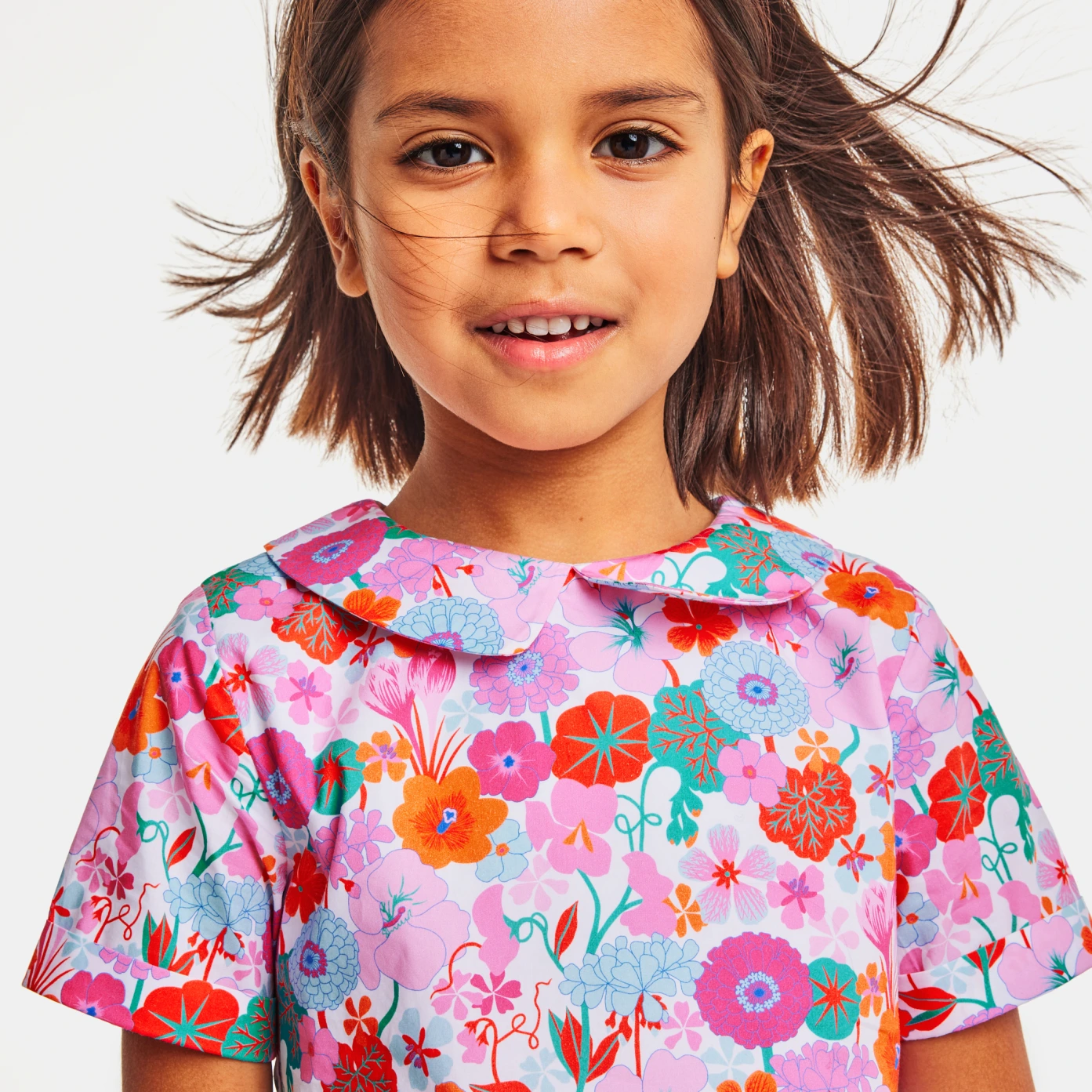 這款女孩洋裝為春季衣櫃增添了迷人的色彩。採用Liberty 面料製成,配有襯裡、小片領子和腰部細膩的打褶,打造出這款別緻而富有詩意的單品,適合穿著來慶祝春日好天氣的到來。