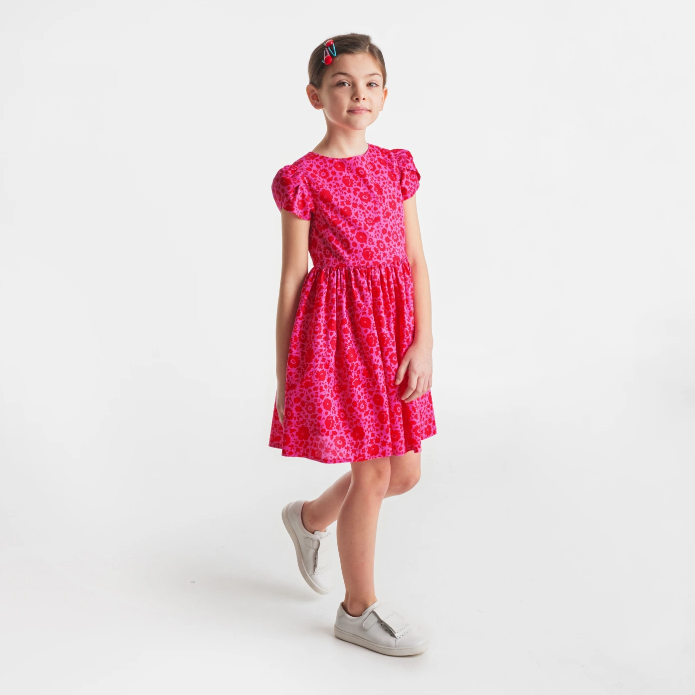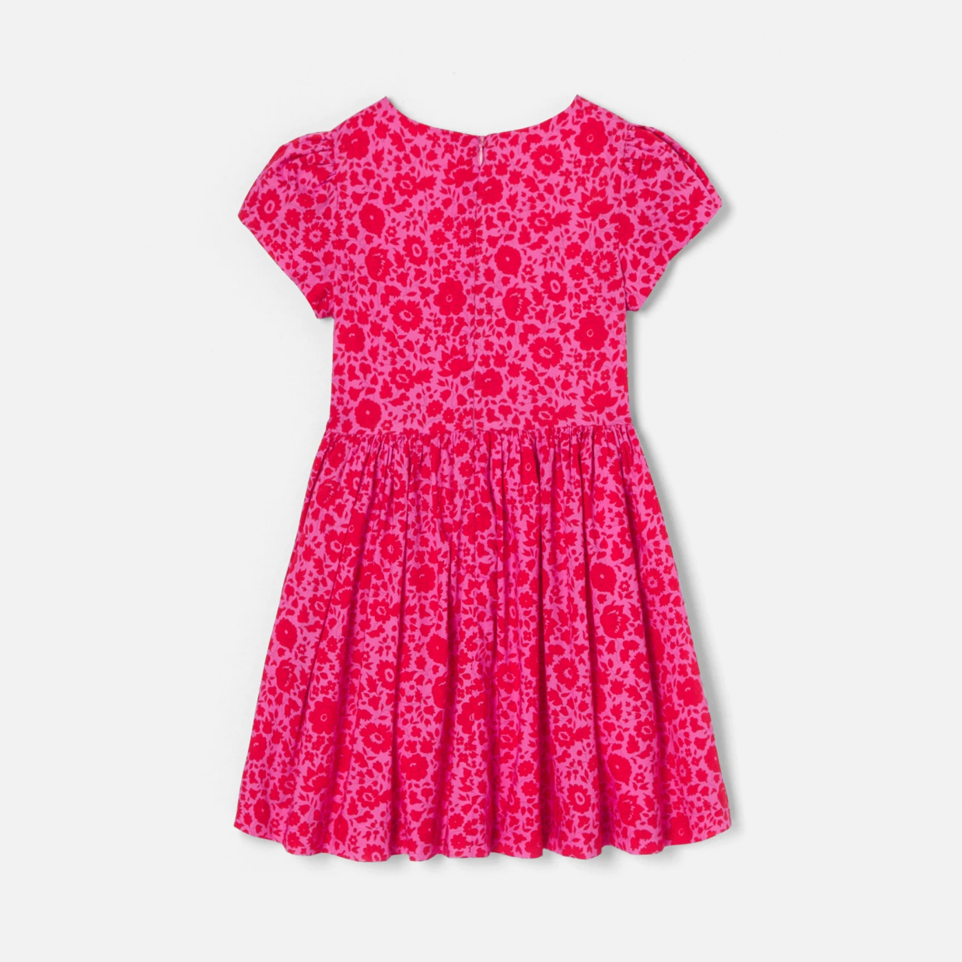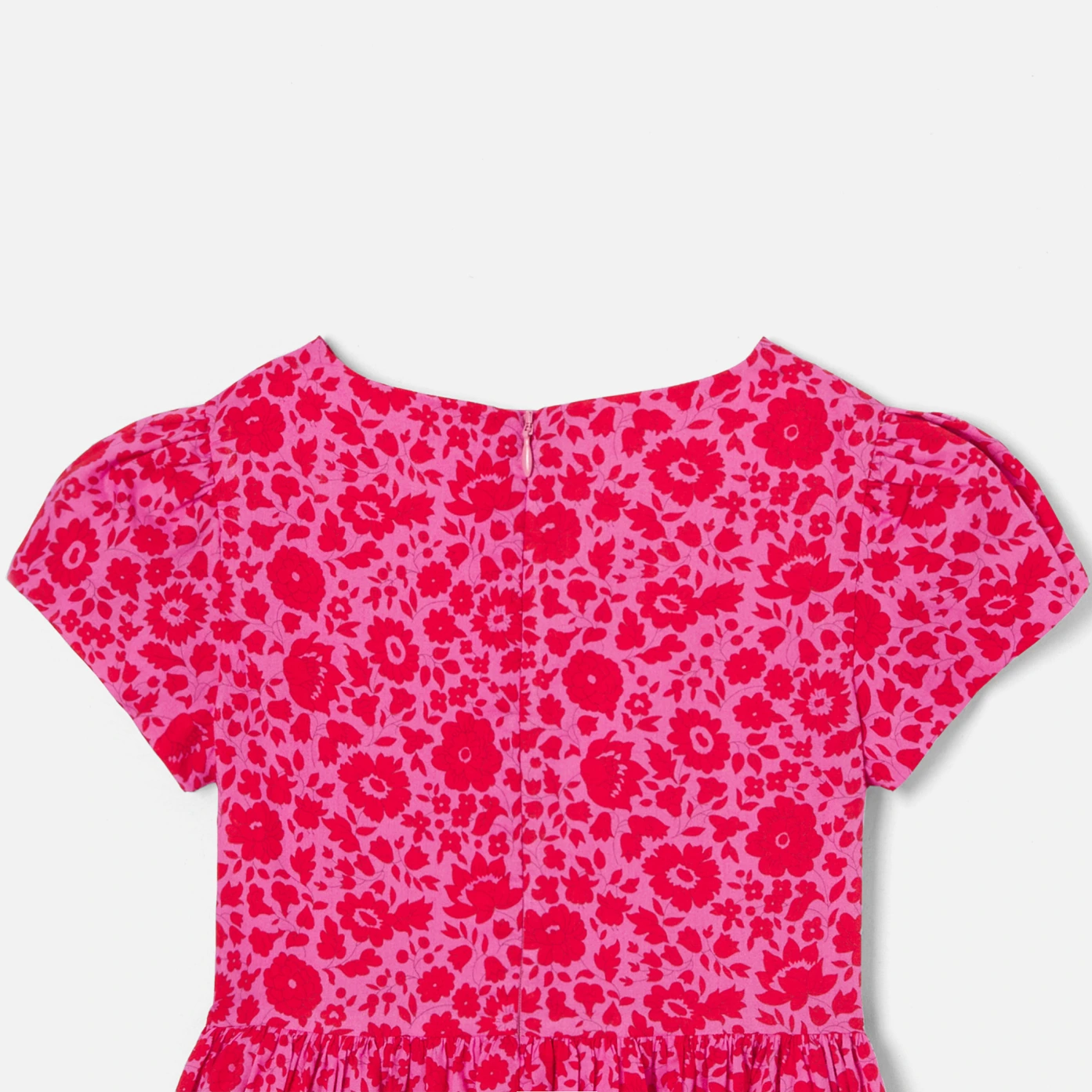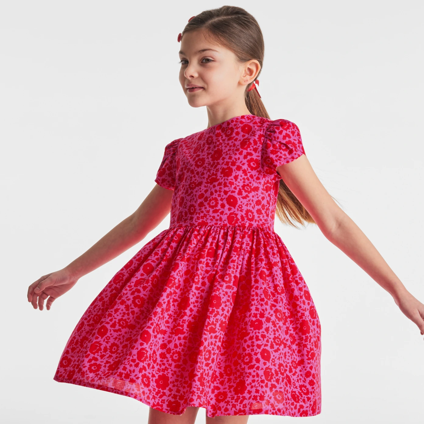 這款女孩洋裝採用雙色 Liberty 面料,透過精緻剪裁展現法式風情。短袖設計,腰部褶皺,棉質襯裡為這款別緻的單品畫上完美句號。