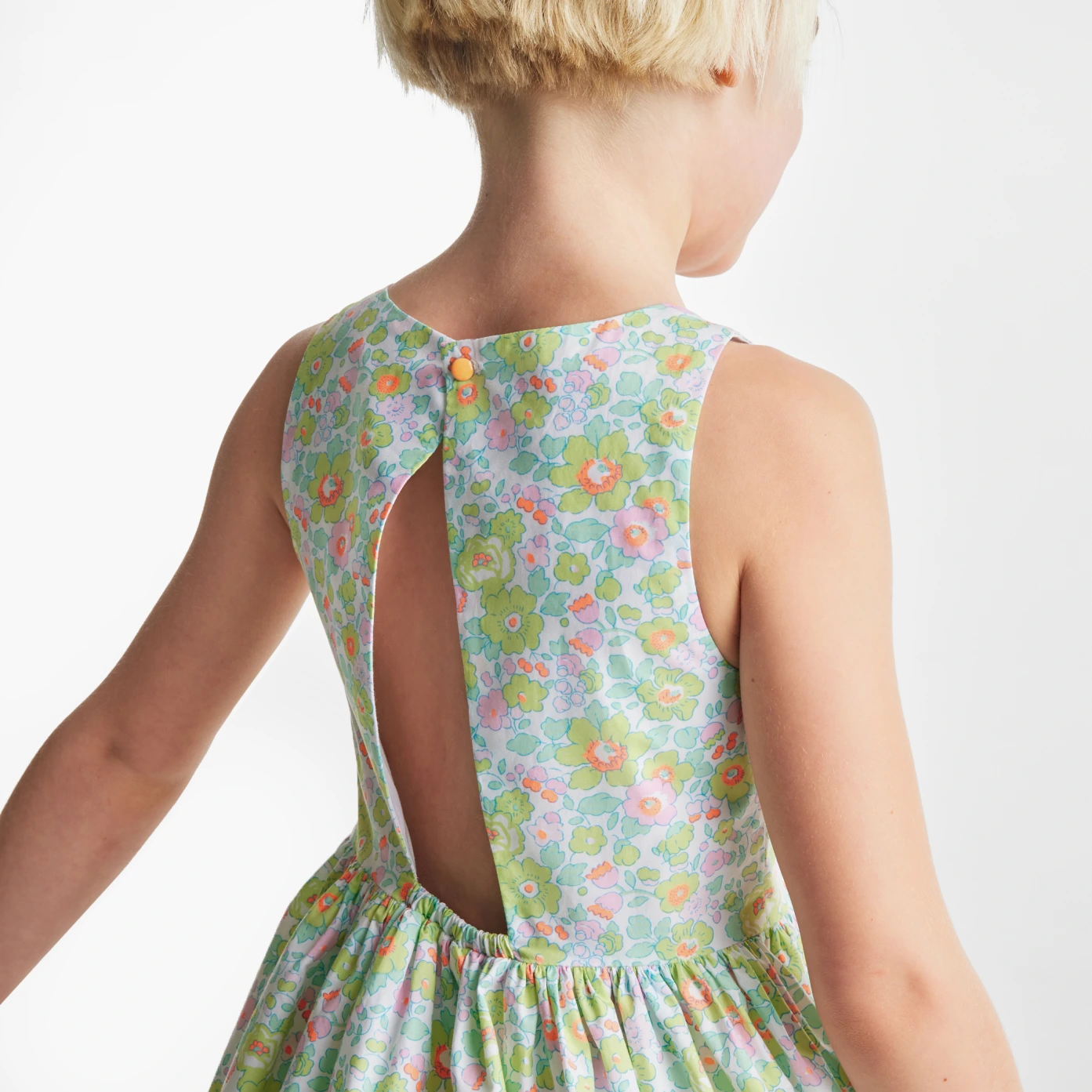 這款女孩連衣裙採用Liberty花布,為夏季增添了時尚魅力。領口和腰部精美收攏,露出優雅的上背,增添了現代感。適合搭配Liberty涼鞋和配飾,這將是一個絕佳的禮物選擇。