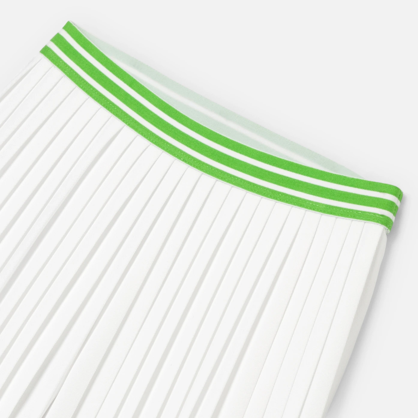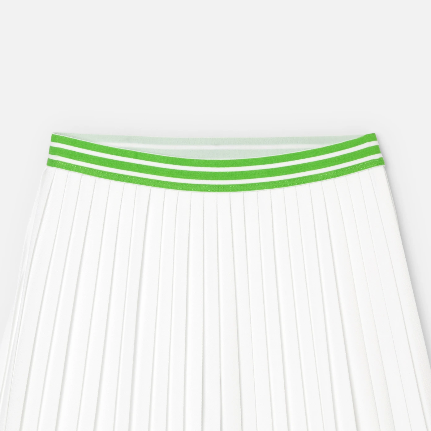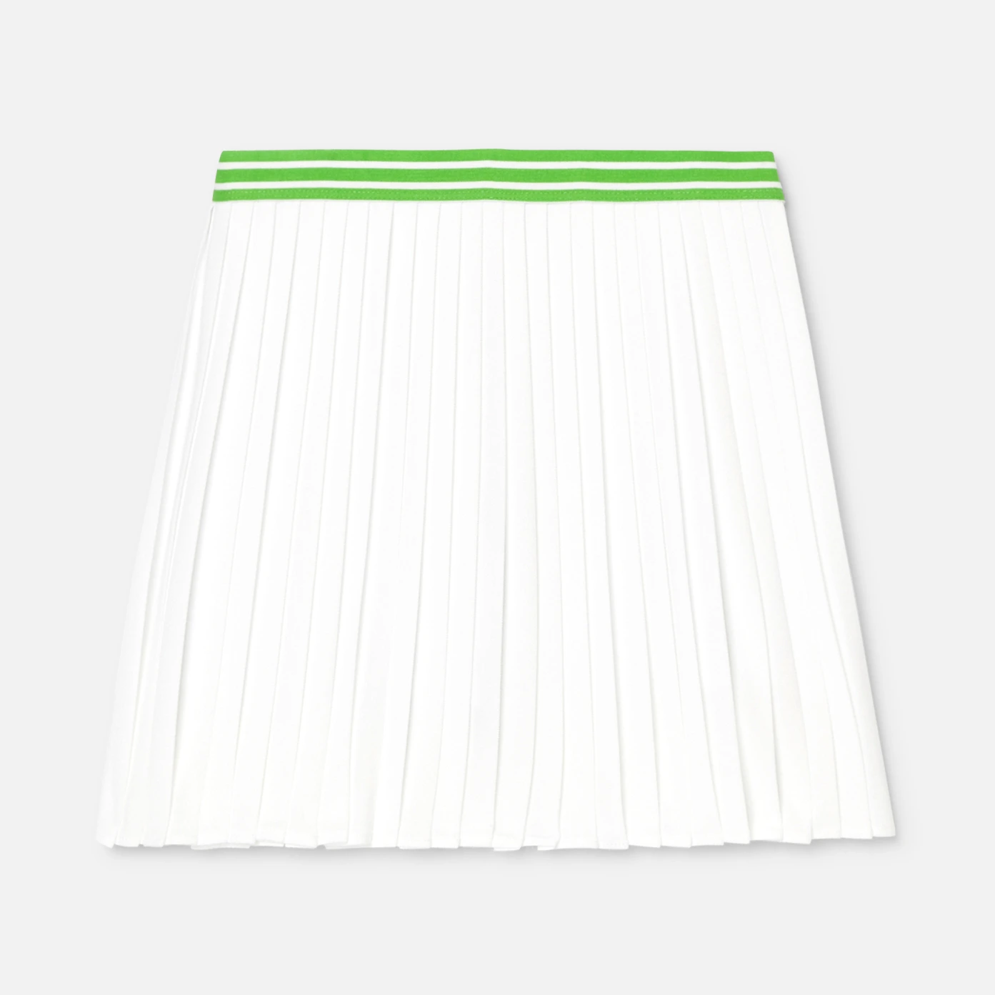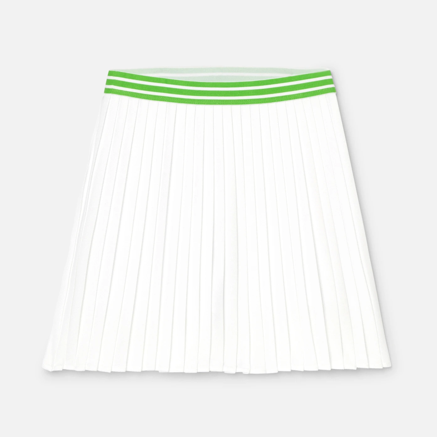 Jacadi 重新審視了網球裙,打造出一如既往的別緻款式,搭配上連身式短褲設計而更加實用,採用鬆緊腰帶的科技珠地布針織面料,適合在城鎮或運動場穿著,搭配 T 恤和運動鞋打造運動時尚造型。