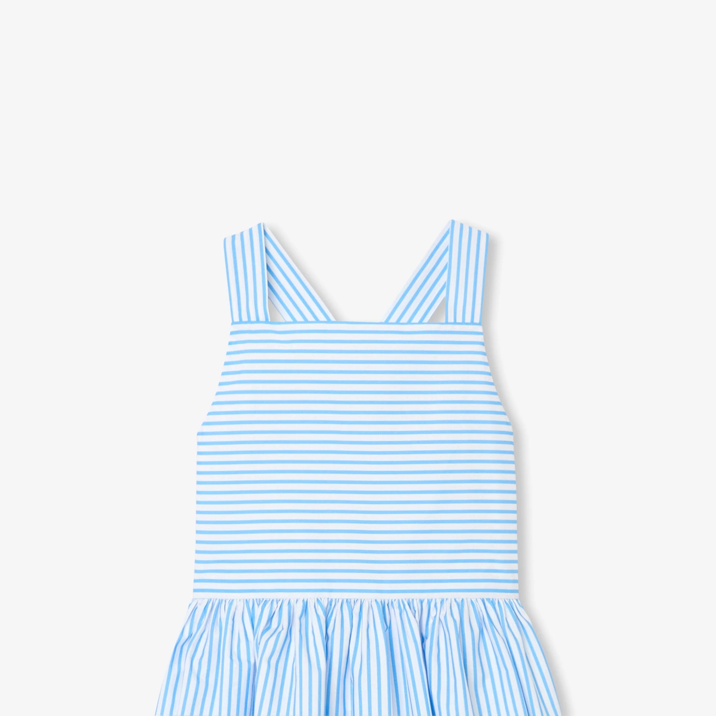 春夏系列帶領我們進入一個充滿活力的繽紛花卉世界,這款女童洋裝完美詮釋了法式優雅與夏日清新。細肩帶背後交叉設計,營造俏皮層次感,條紋棉質府綢與裙擺的大型花卉圖案相互輝映,運用全新印花技術展現細膩工藝。這件充滿匠心的夏日單品,將成為女孩衣櫥中不可或缺的存在。