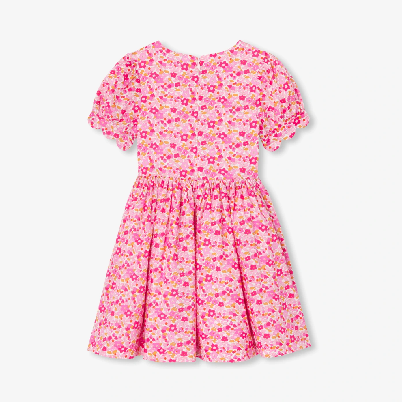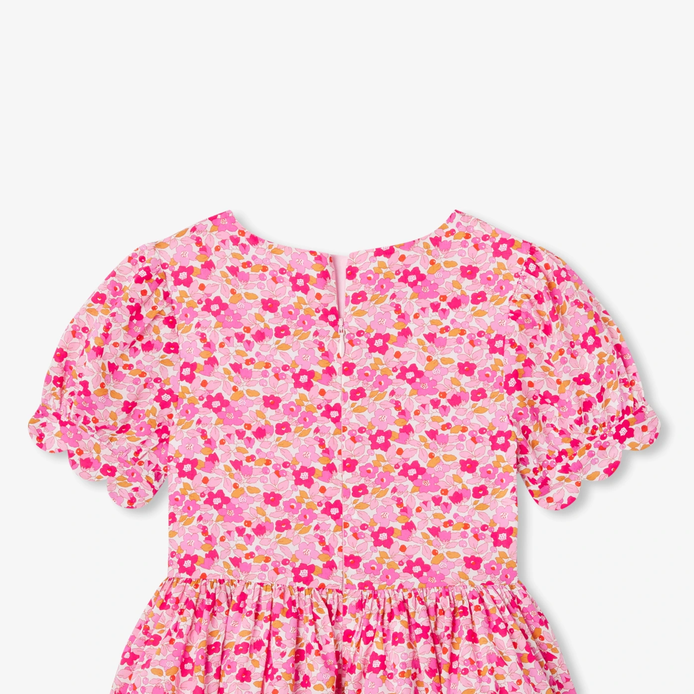 這款新作Liberty布料洋裝展現出一個優雅的花卉輪廓。選用棉府綢製成並襯有內裡,增加穿著舒適度,設計有花瓣袖邊和收腰細節。適合於夏末慶祝活動時穿著,並將成為秋季衣櫥中的亮眼單品。
