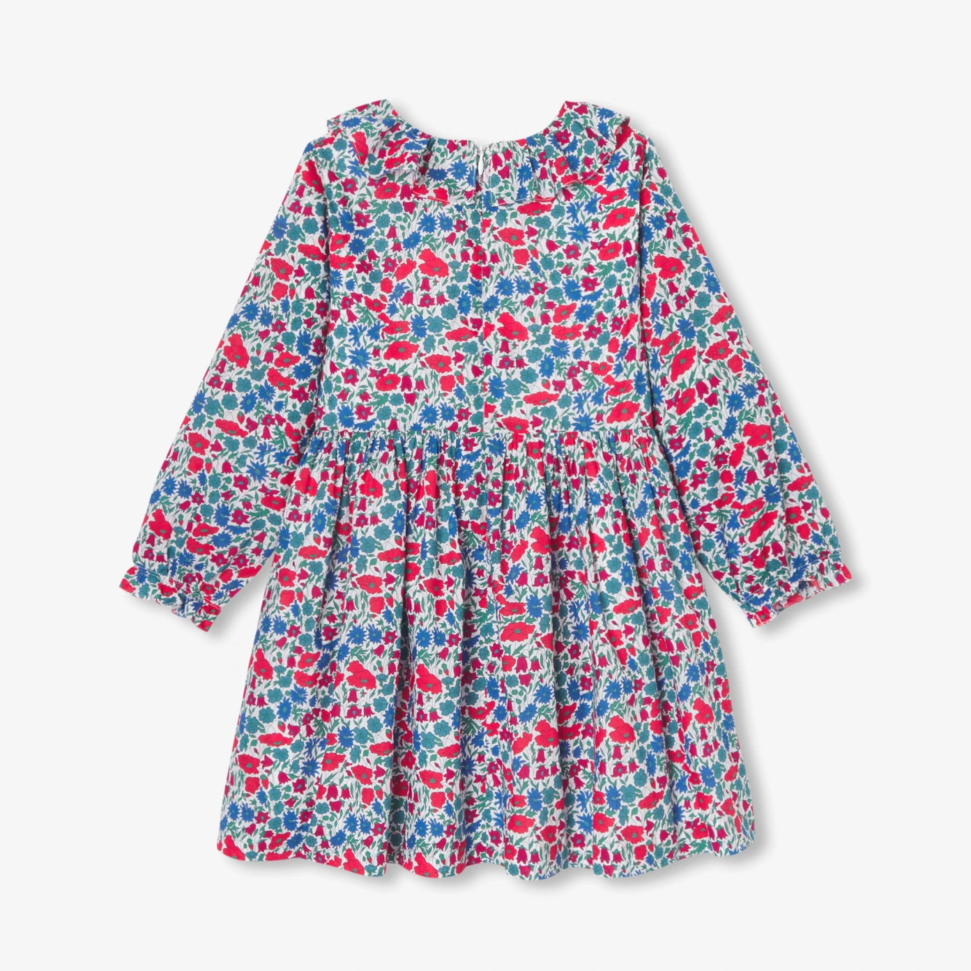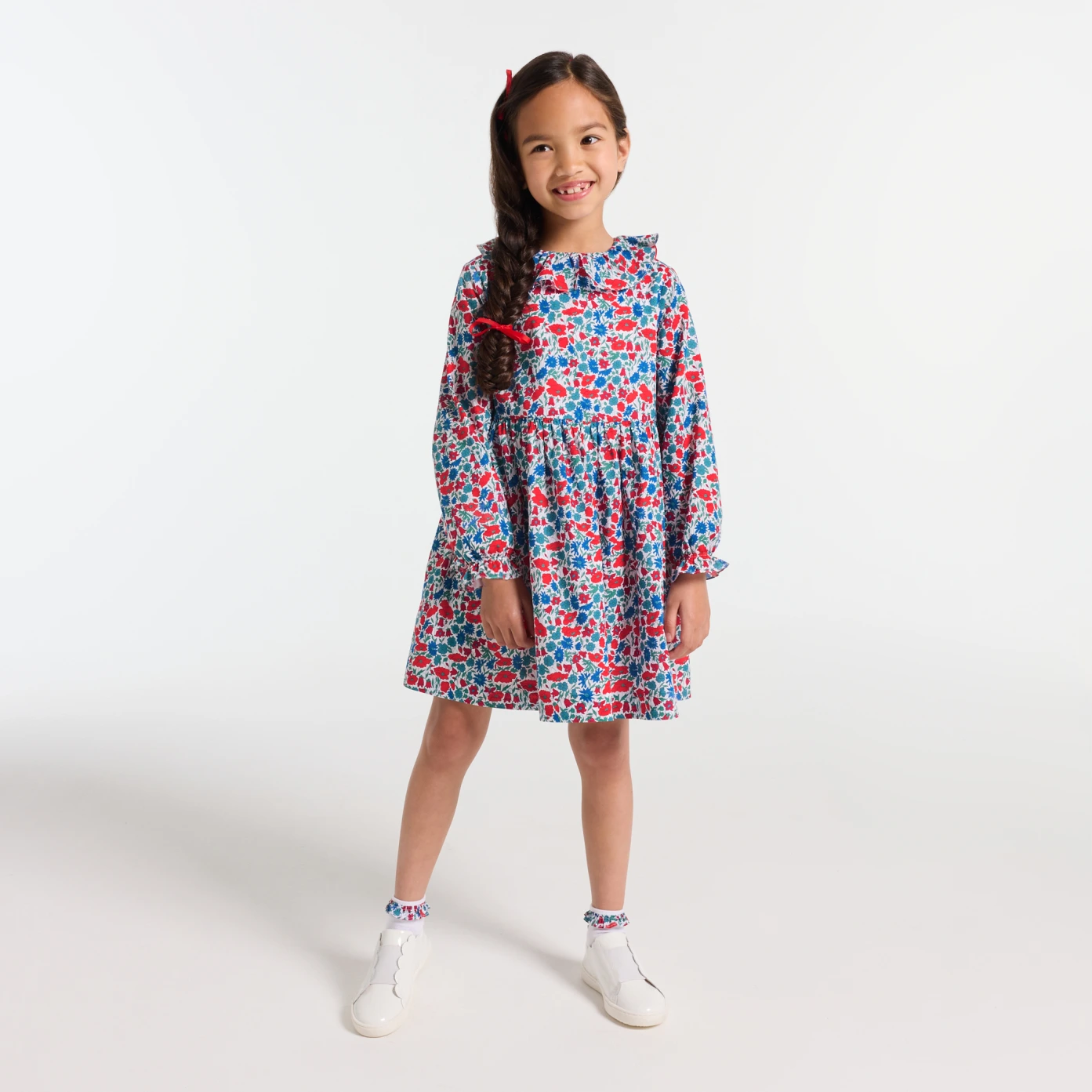 這款女孩長袖洋裝以其優雅的線條和無懈可擊的剪裁,為開學季帶來充滿色彩和花卉圖案的迷人造型。採用純棉材質,內襯加強舒適度,荷葉邊長袖、精緻的領口和束腰設計,賦予這款洋裝別緻的風采,無論搭配寶寶鞋或是踝靴,皆能展現一份都市優雅的氣質。