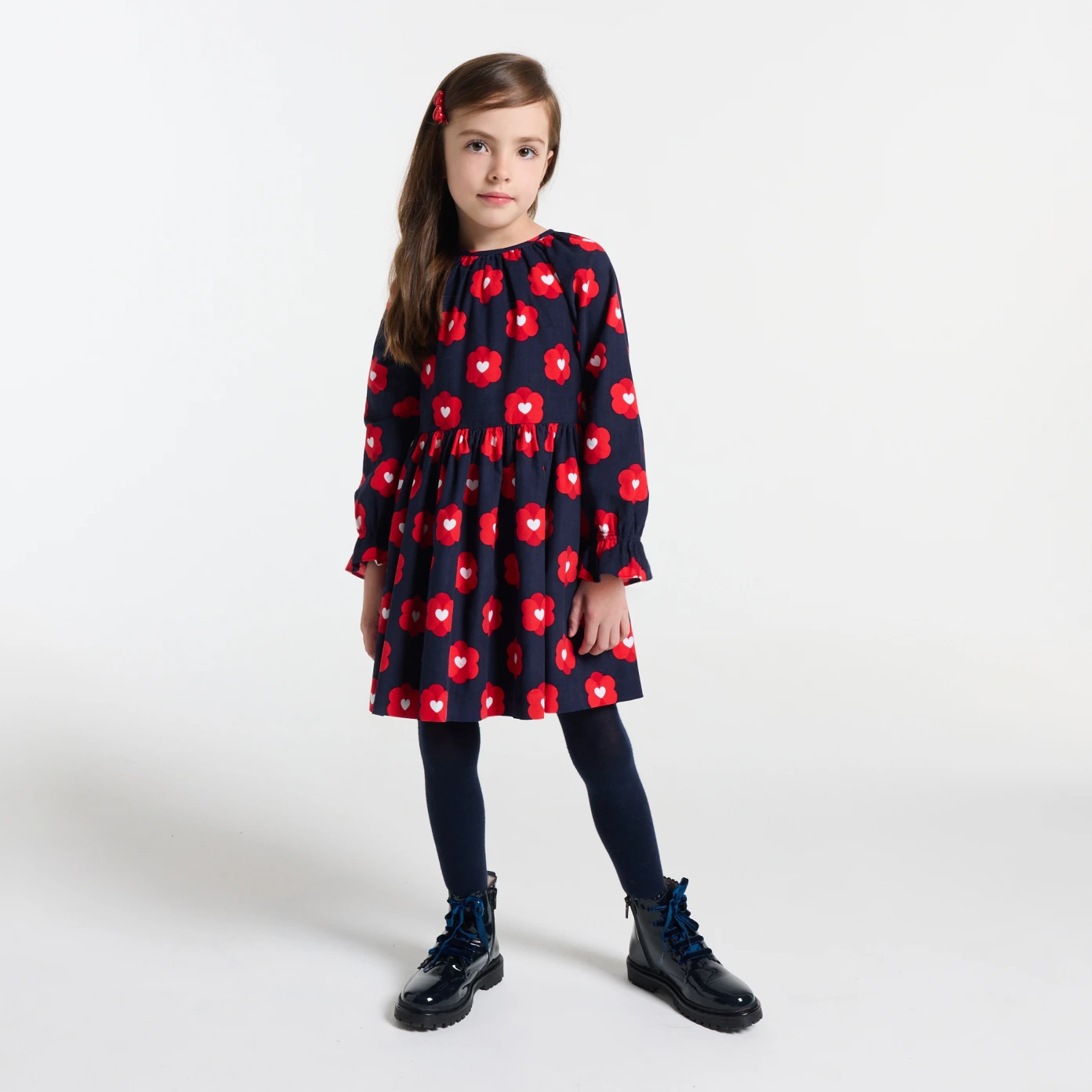 為陪伴女孩迎接開學季,Jacadi 精心設計這款優雅法式洋裝。選用細條燈芯絨製成,觸感柔軟舒適,搭配原創花卉圖案,營造復古浪漫氛圍。領口與腰部的抓皺細節、彈性燈籠袖設計,以及全棉內裡提升穿著舒適度,背後配有隱藏式拉鍊,方便穿脫。搭配褲襪與瑪莉珍鞋,即刻展現經典的巴黎風格。