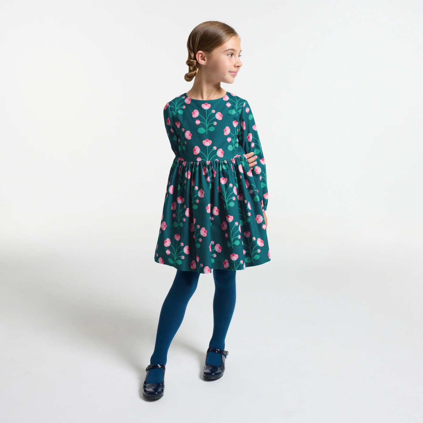 這款女童洋裝以復古優雅詮釋經典法式風情。採用細緻絨面布料,搭配柔軟棉質內裡,優雅的法式花卉印花為整體增添迷人韻味。袖口收緊設計與吊腰抓褶剪裁,細膩勾勒女孩柔和的優雅曲線,搭配上褲襪與瑪莉珍鞋,輕鬆展現時髦又充滿法式氣息的秋日造型。