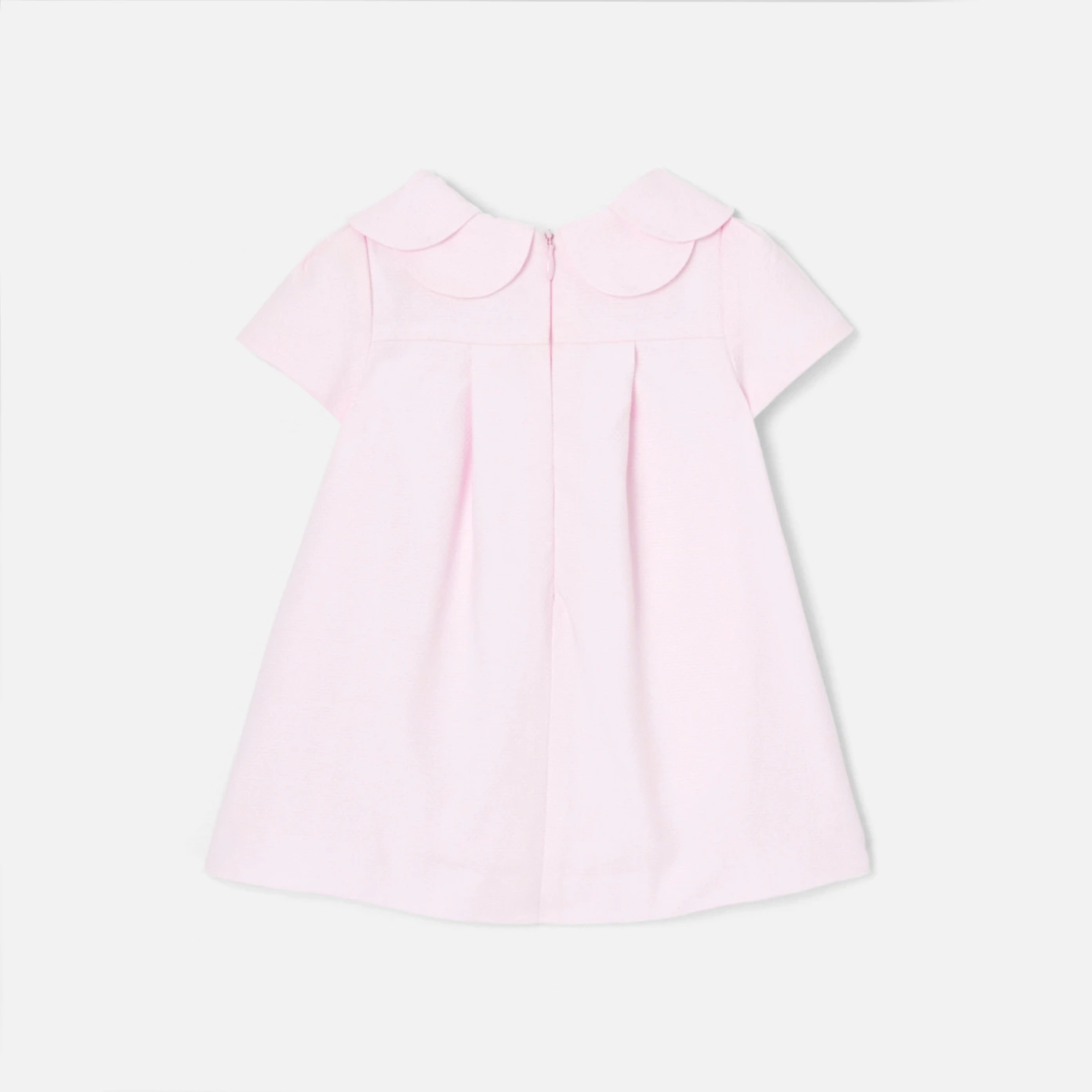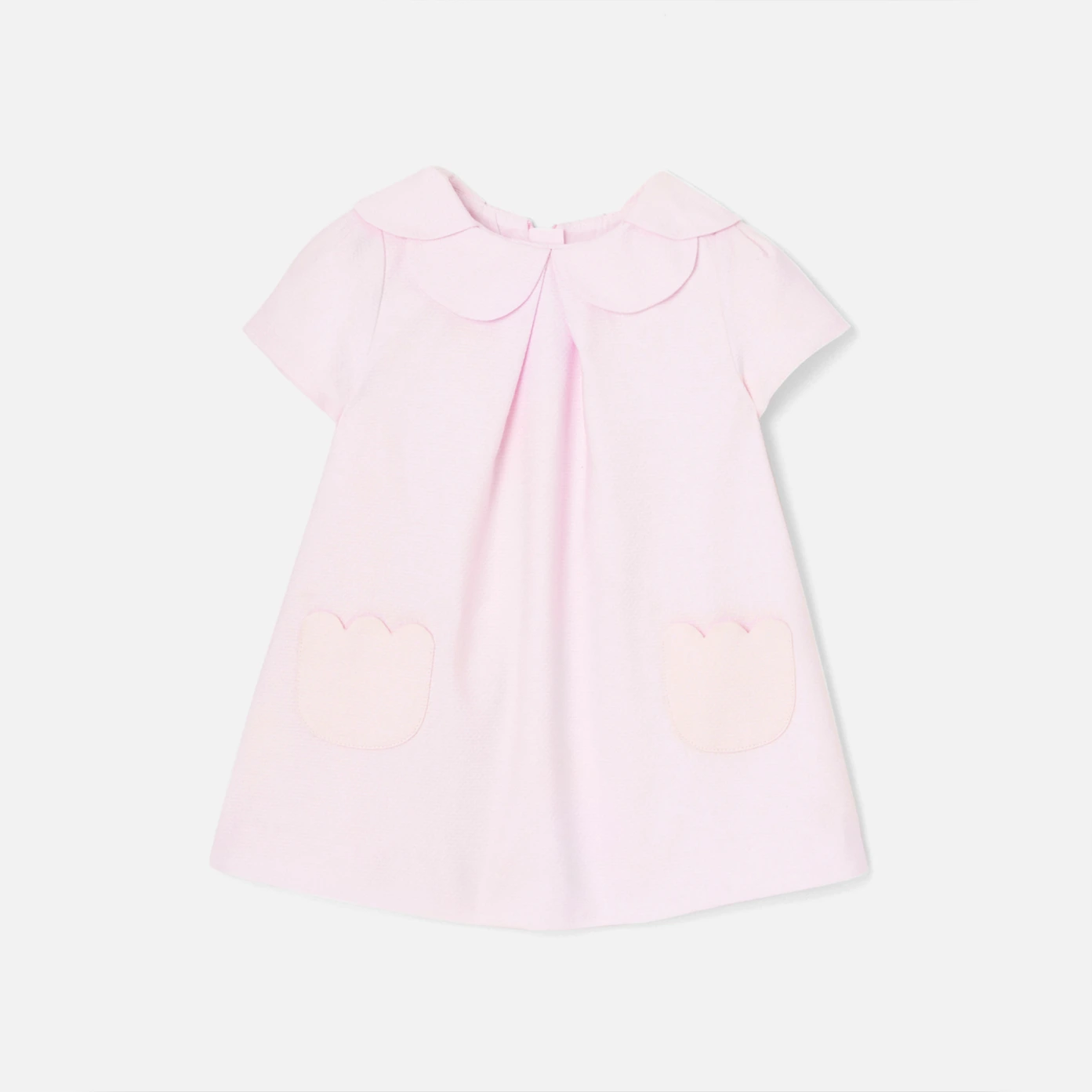 這款洋裝預告了最優雅的春季。棉質珠地布布料,短袖設計、花瓣領和鬱金香形狀的口袋點綴這款休閒別緻的款式,適合夏季搭配帽子和彩色涼鞋。
