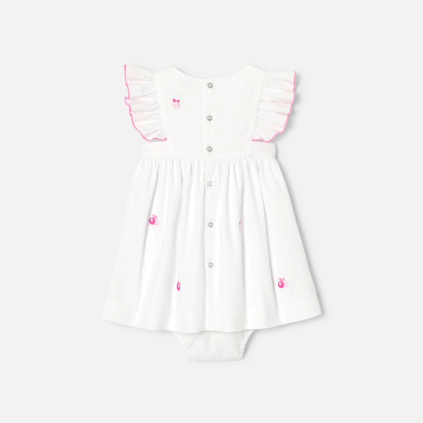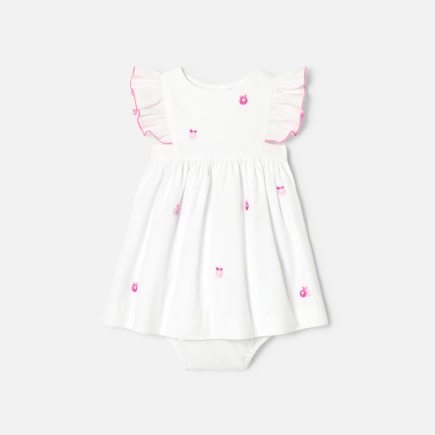 這款女童洋裝有著波西米亞風格別緻而現代,點綴著適合夏季的小莓果刺繡。採用柔軟府綢製成,飾有螢光縫線荷葉邊,無論是度假還是出席儀式都同樣完美。