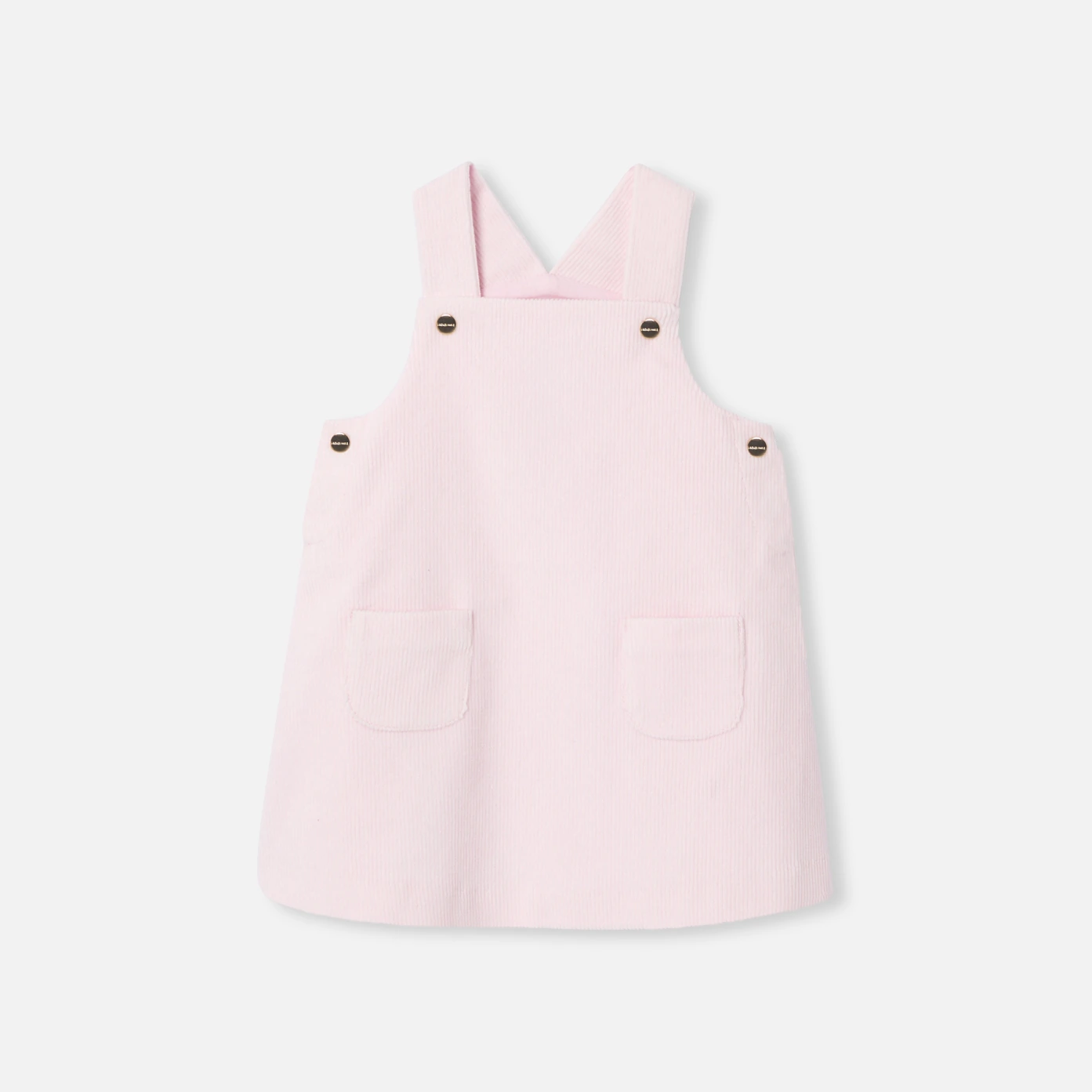 這款寶寶背心裙洋溢著復古風情,帶有金屬釦扣的肩帶,為秋冬季節增添溫暖感。使用有機棉燈芯絨製成,並襯有棉質薄紗,貼心設計的口袋與柔和色調,方便搭配T恤或襯衫,適合上幼兒園或家庭假期穿著。