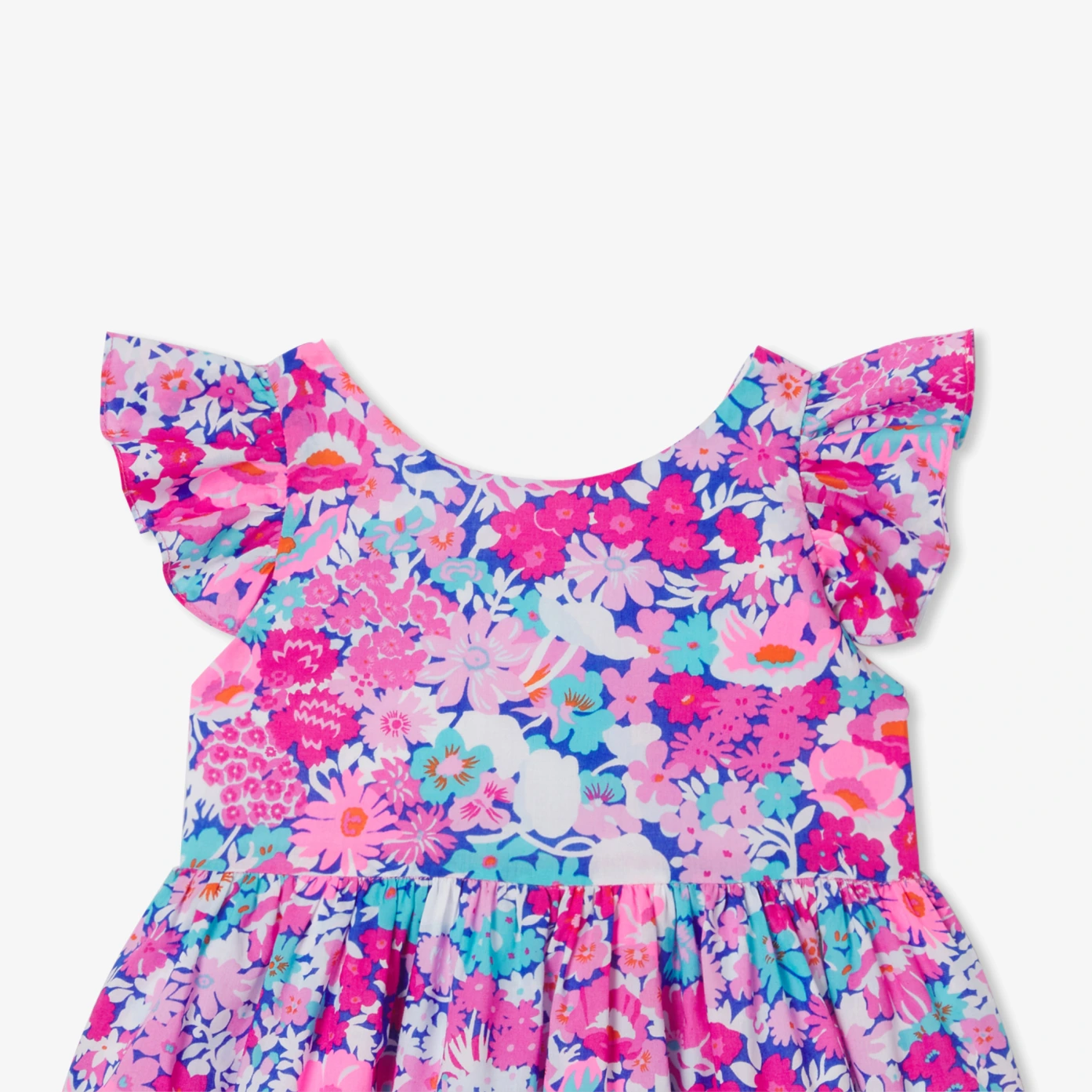 今夏,Jacadi以繽紛花卉世界迎接小公主,這款女寶寶洋裝以 Liberty 印花布料打造,滿溢法式優雅氣息。荷葉邊袖口、交叉背帶設計與腰部細褶細節,營造出俐落幾何感外型,無論是典禮場合或日常穿搭,皆能展現動人魅力。