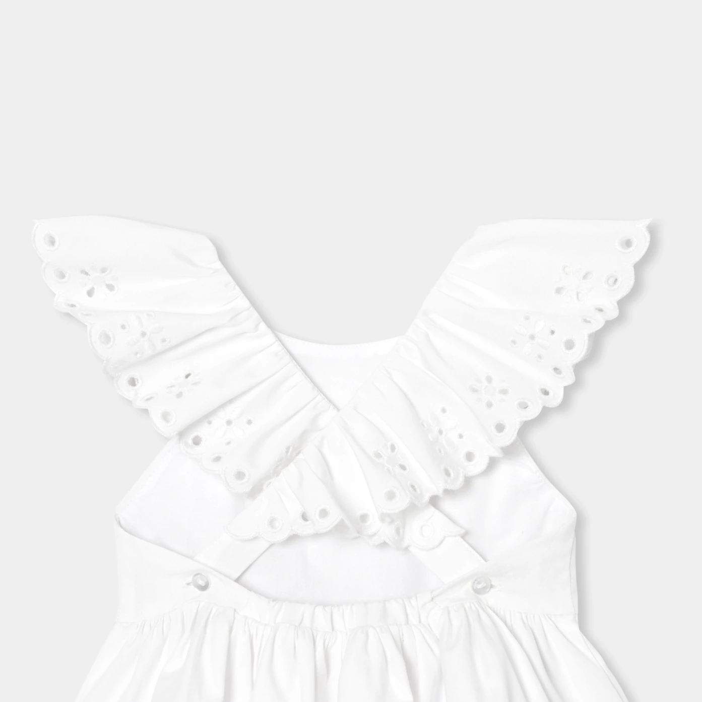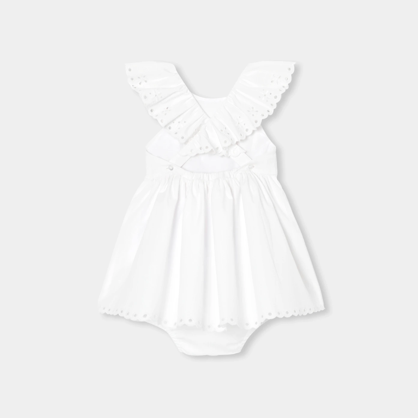 正值盛大場合季節,這款洋裝將是每場受邀典禮的完美選擇。致敬法式優雅與精湛工藝,澎袖設計、交叉背帶與細緻法式刺繡,為這款幾何線條洋裝增添典雅氛圍。搭配涼鞋與帽子,為寶貝打造迷人儀式感造型。