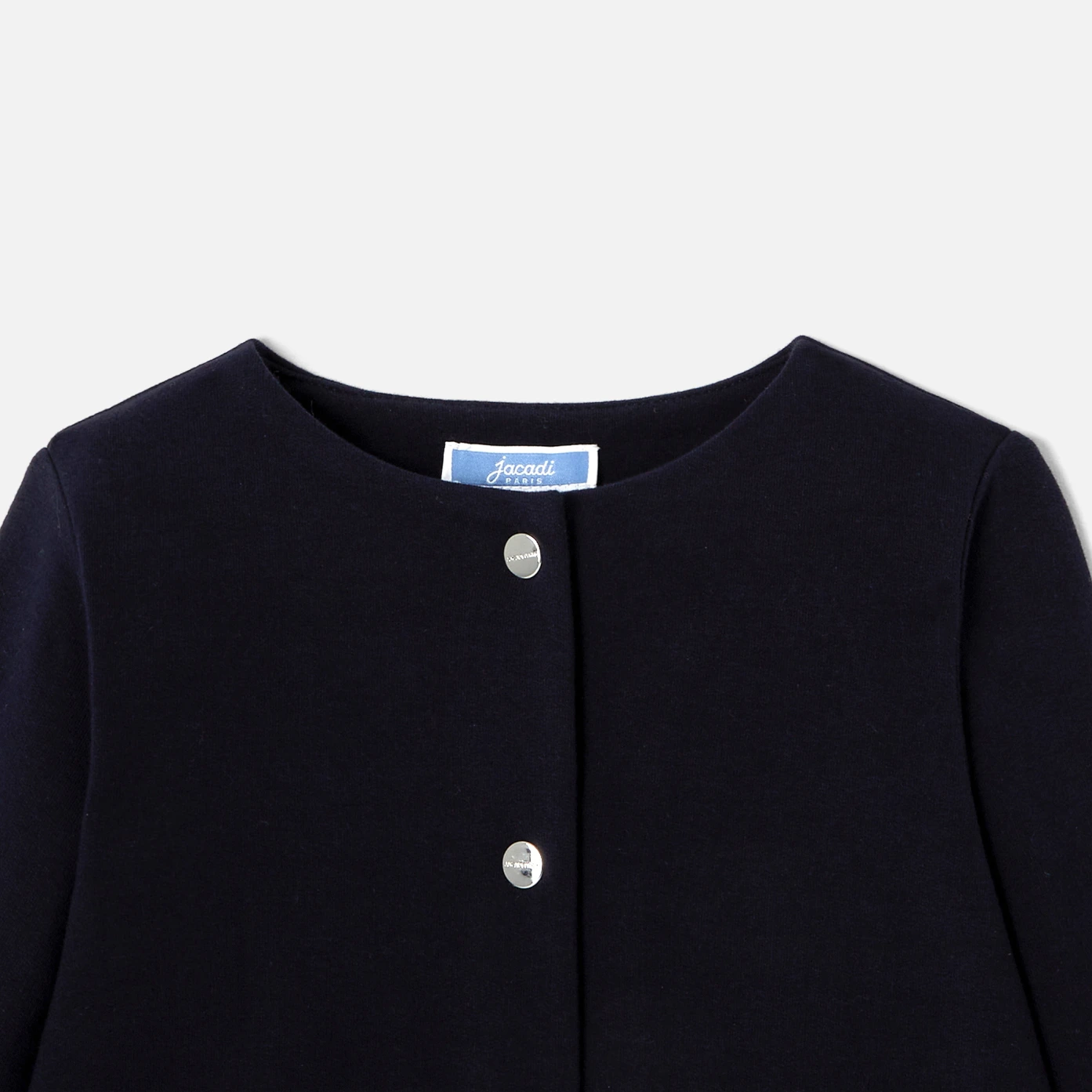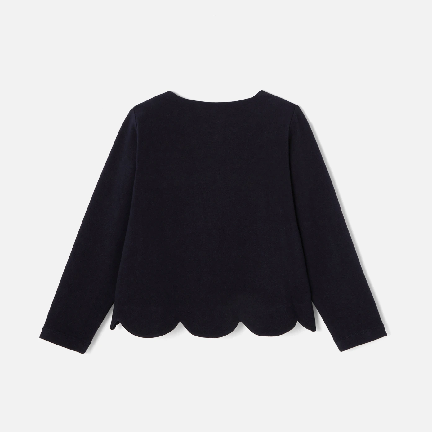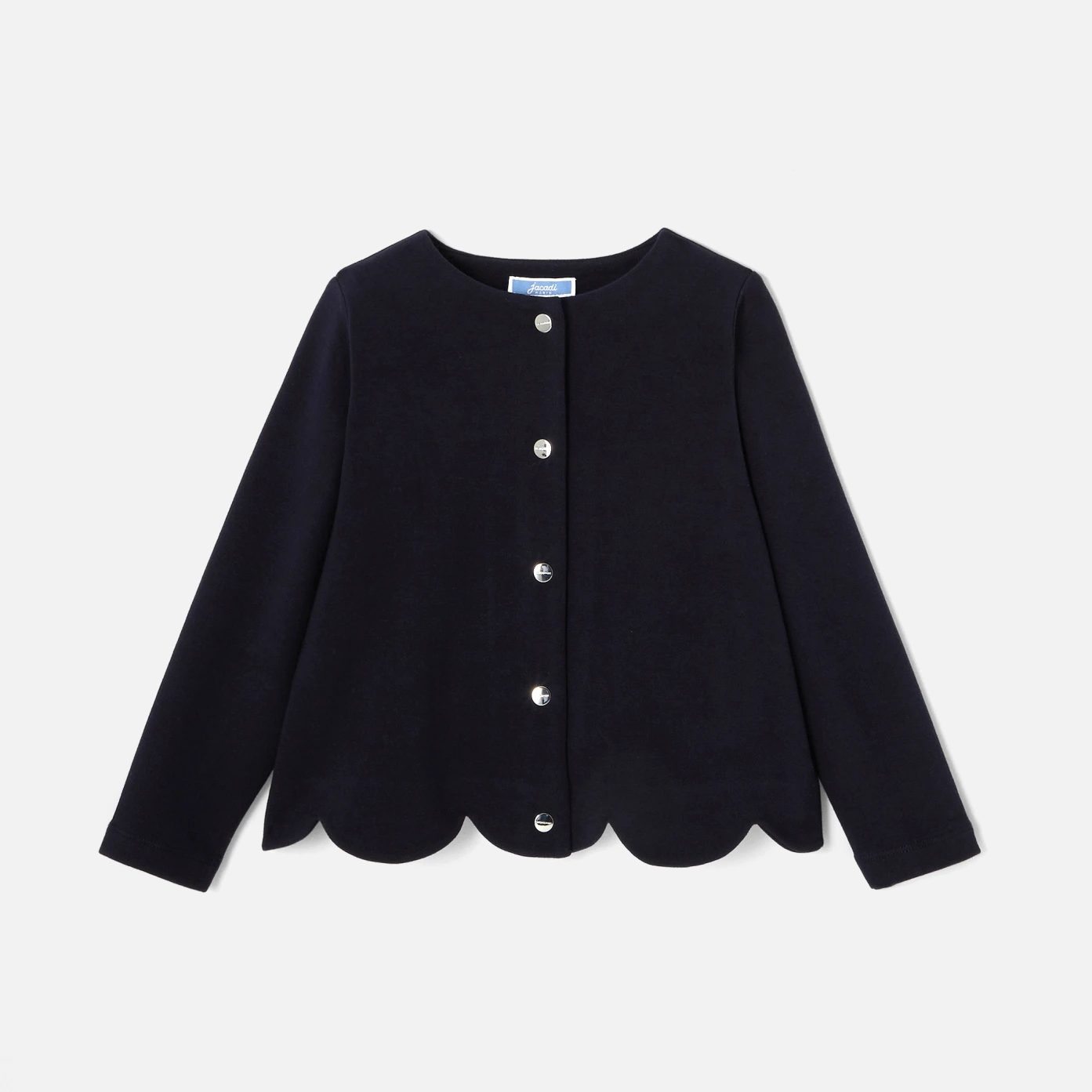 這款女孩開襟外套選用有機棉製成,內裡刷毛設計,柔軟舒適又保暖。簡約俐落的剪裁搭配波浪形下擺,增添優雅細節,正面壓釦開合方便穿脫,輕鬆搭配T恤或襯衫,成為四季皆宜的衣櫥必備單品。