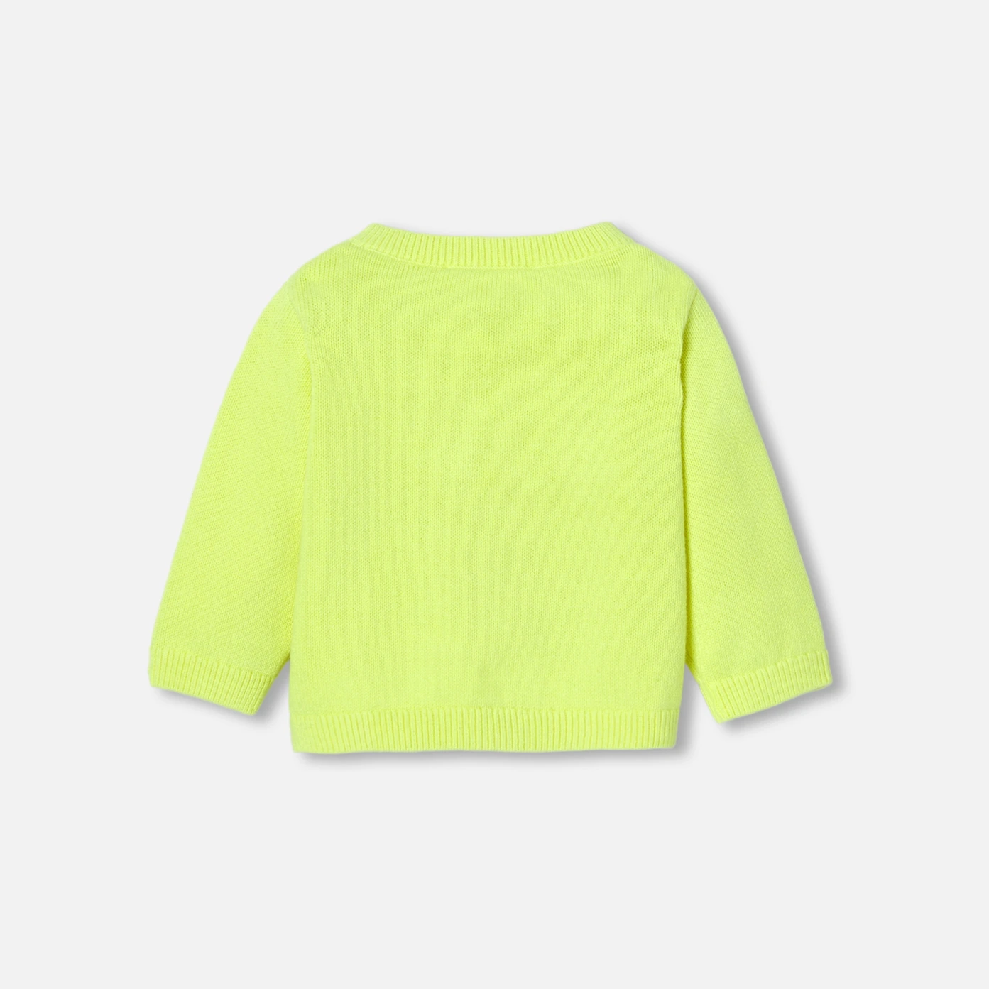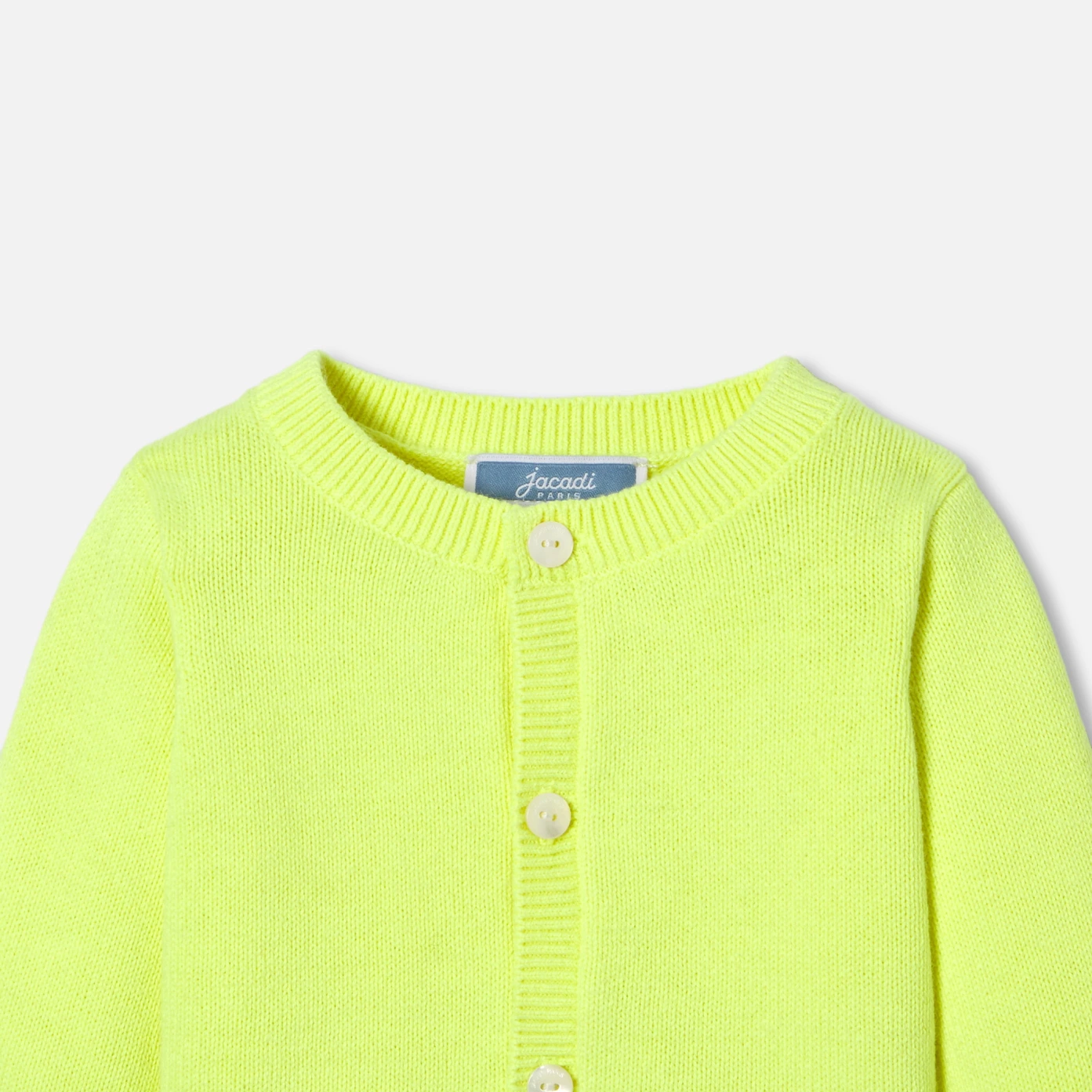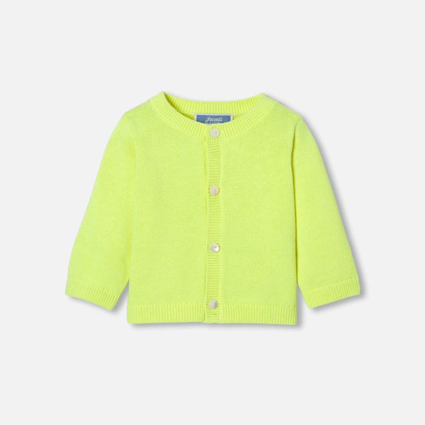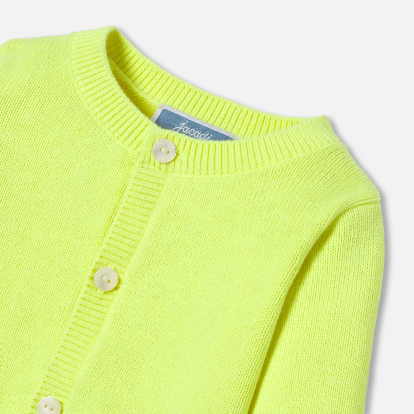 這款必備的嬰兒開襟毛衣以其霓虹色而在人群中脫穎而出。採用有機棉和Cashmere羊絨製成,羅紋飾邊帶有挑孔細節和天然珍珠母鈕釦,使這款款式充滿現代感。