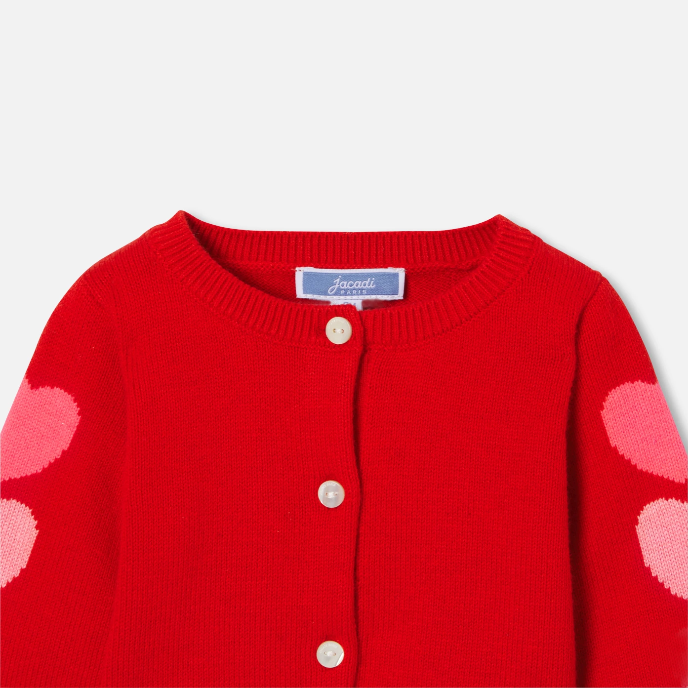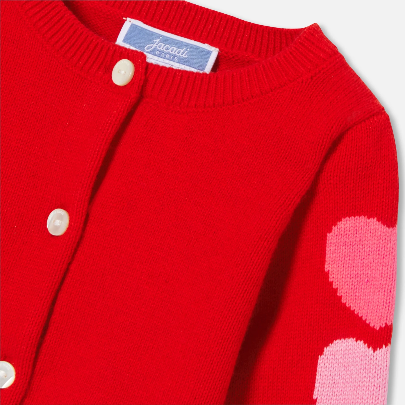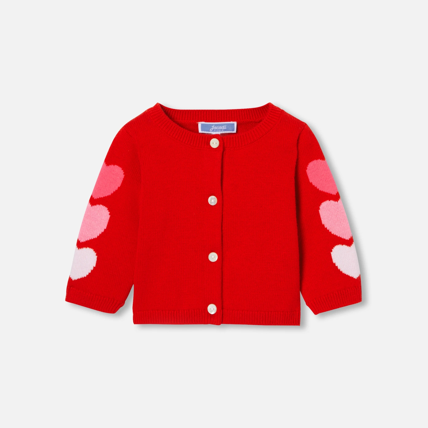 這款柔軟舒適的女嬰開襟毛衣採用有機棉和環境友善羊毛製成,打造現代閃亮的新一季衣櫥。這款嬰兒開襟毛衣採用鮮豔的色彩,袖子上令人難以抗拒的嵌花心形圖案,展現優雅現代穿搭風格,可搭配牛仔連身裙或吊帶褲,打造時尚造型。
