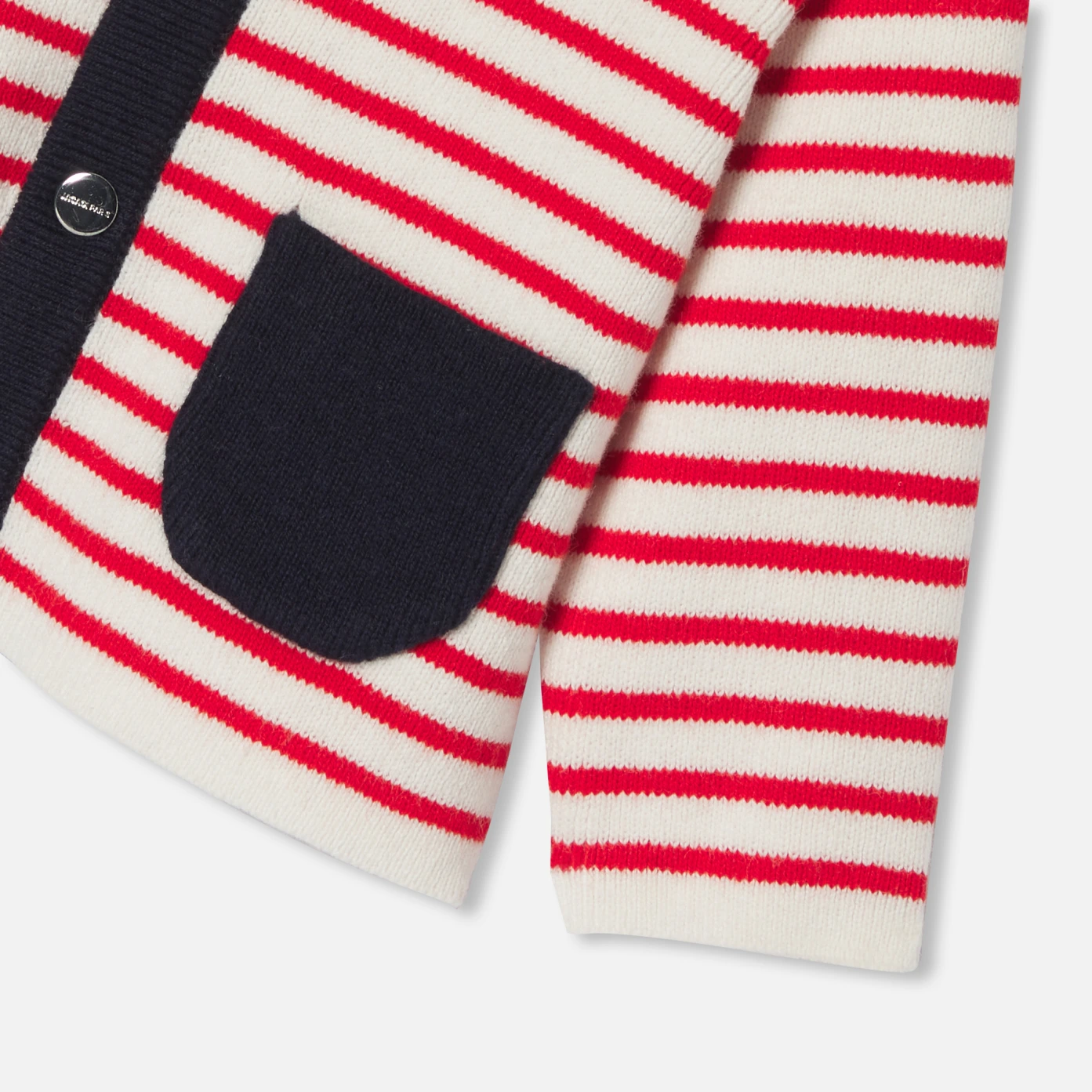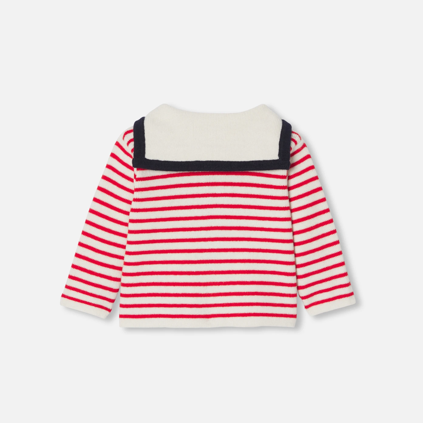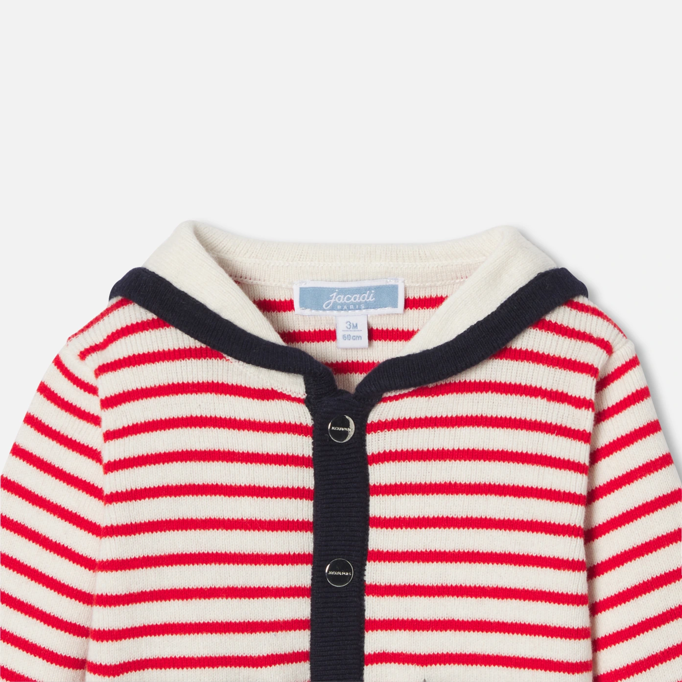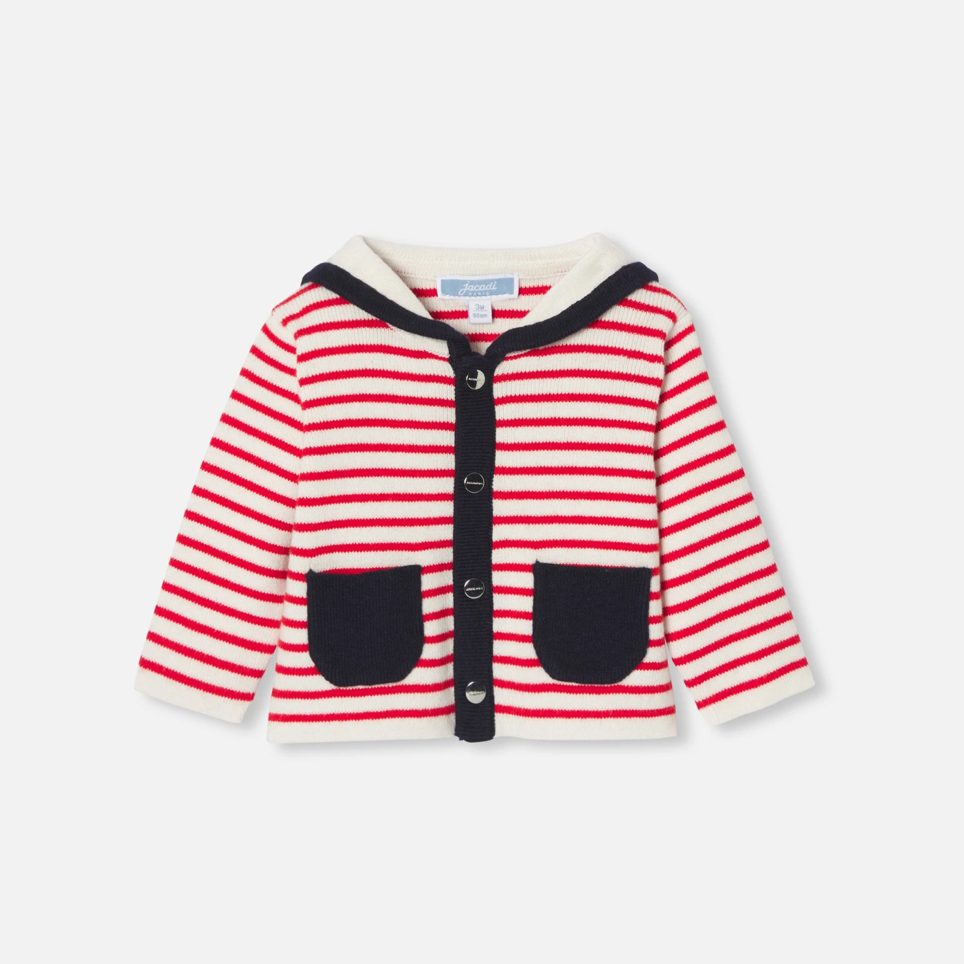 穿上這款開襟毛衣,重新發現法式優雅和 Jacadi 精神。靈感來自永恆的布列塔尼 T 恤,海軍領和貼袋為這款開襟毛衣帶來別緻的海洋風格。採用有機棉和環境友善的羊毛製成,搭配牛仔褲或吊帶褲,搭配連身衣,打造活力感穿搭。