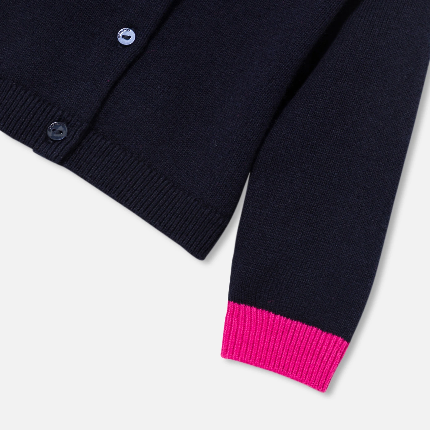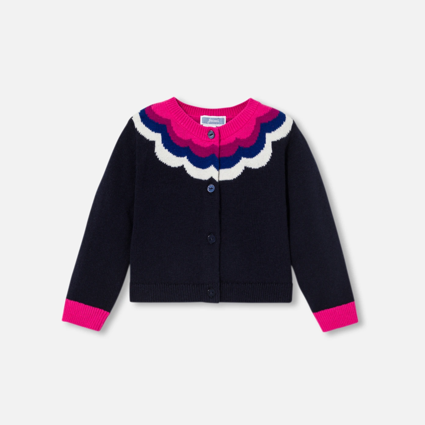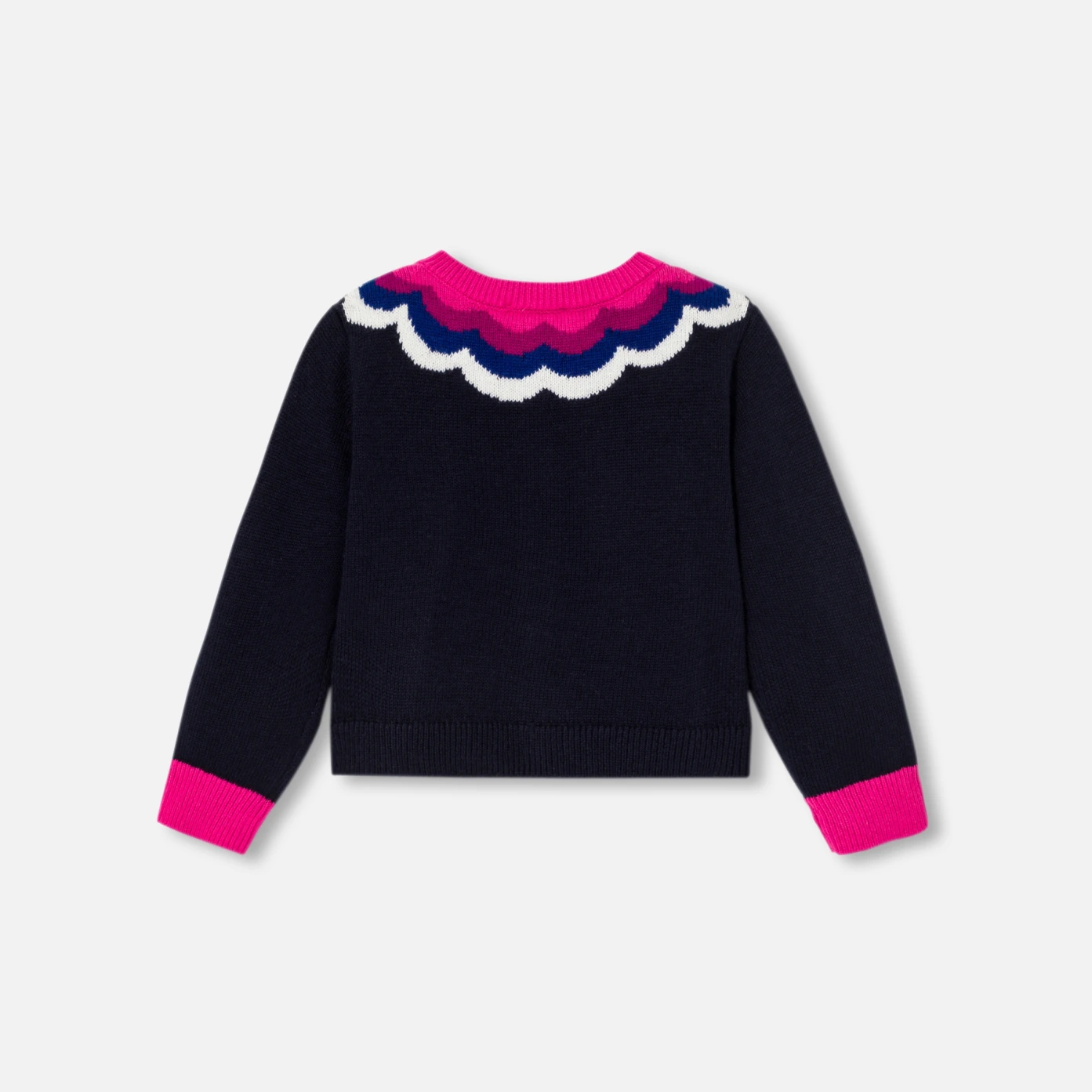 為了在秋季造型中增添一抹暖意與色彩,這款使用負責任羊毛與有機棉製成的針織開襟毛衣將是完美之選。設計簡約,拉克蘭袖及領口處多彩嵌花,無論是搭配牛仔裙還是燈芯絨短褲,都能完美呼應整體造型。