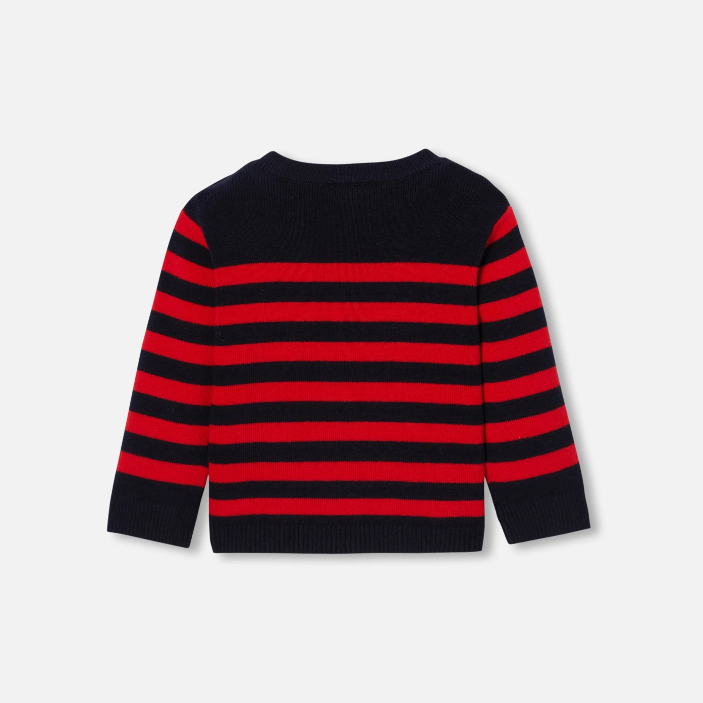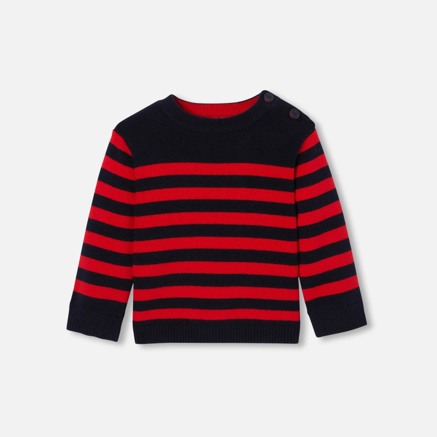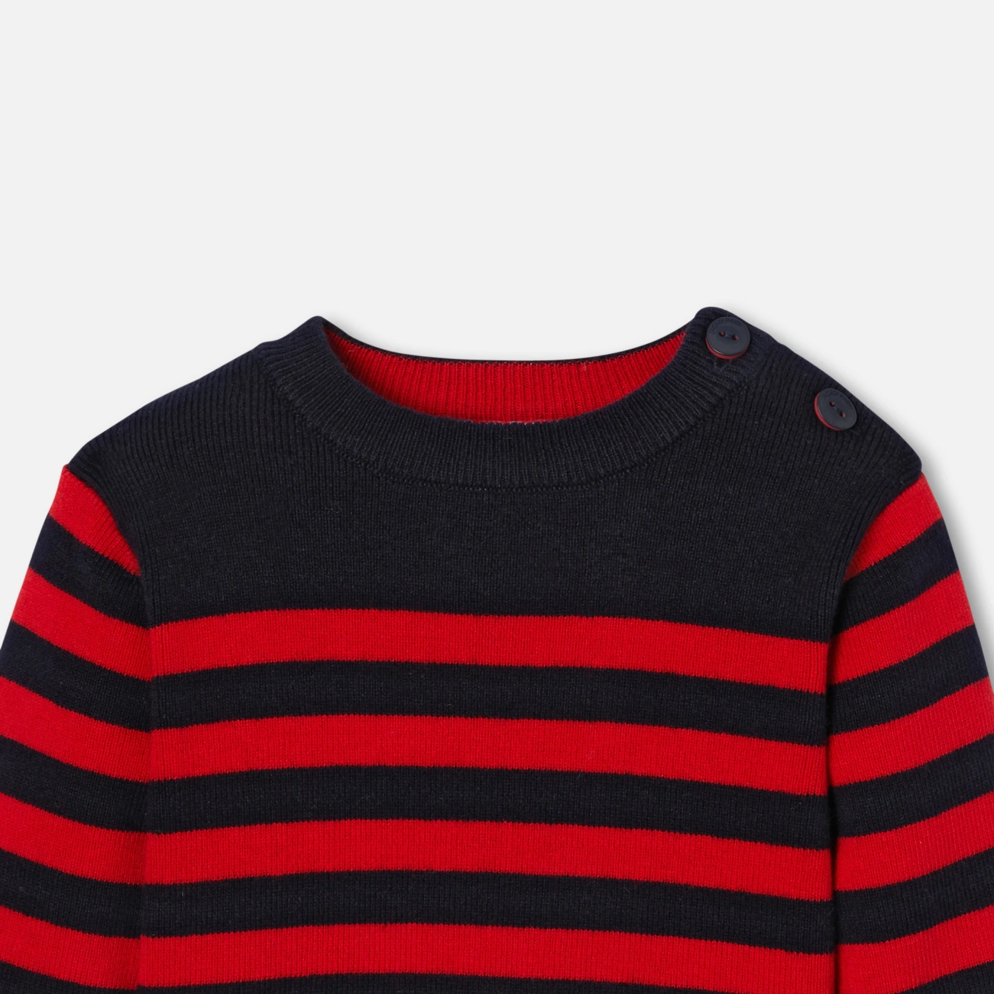 這款深藍色小男童條紋毛衣是新一季的必備單品。採用無縫針織設計,肩部配有開釦設計,這款休閒且時尚的毛衣,適合搭配捲邊牛仔褲和運動鞋,營造出都市風格造型。