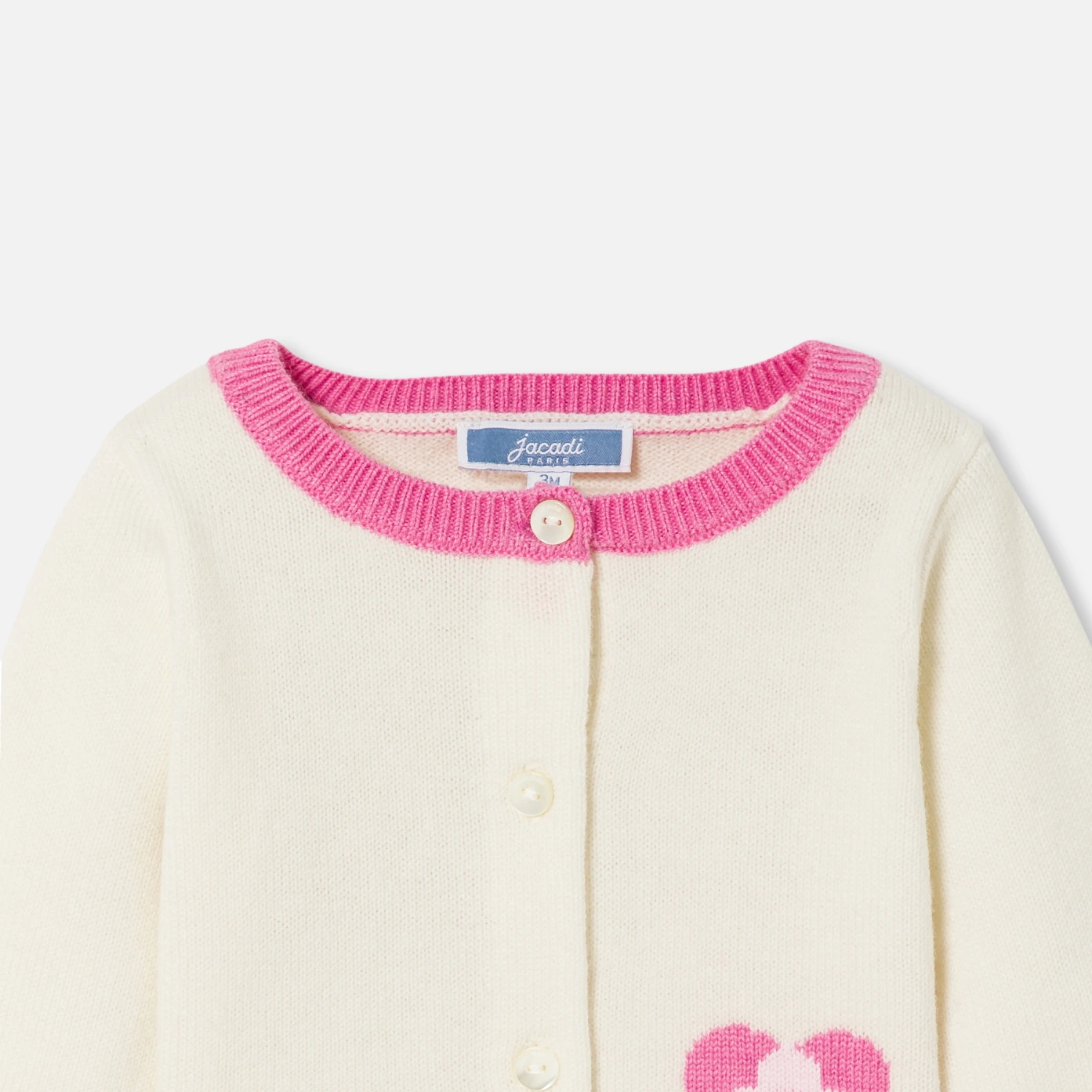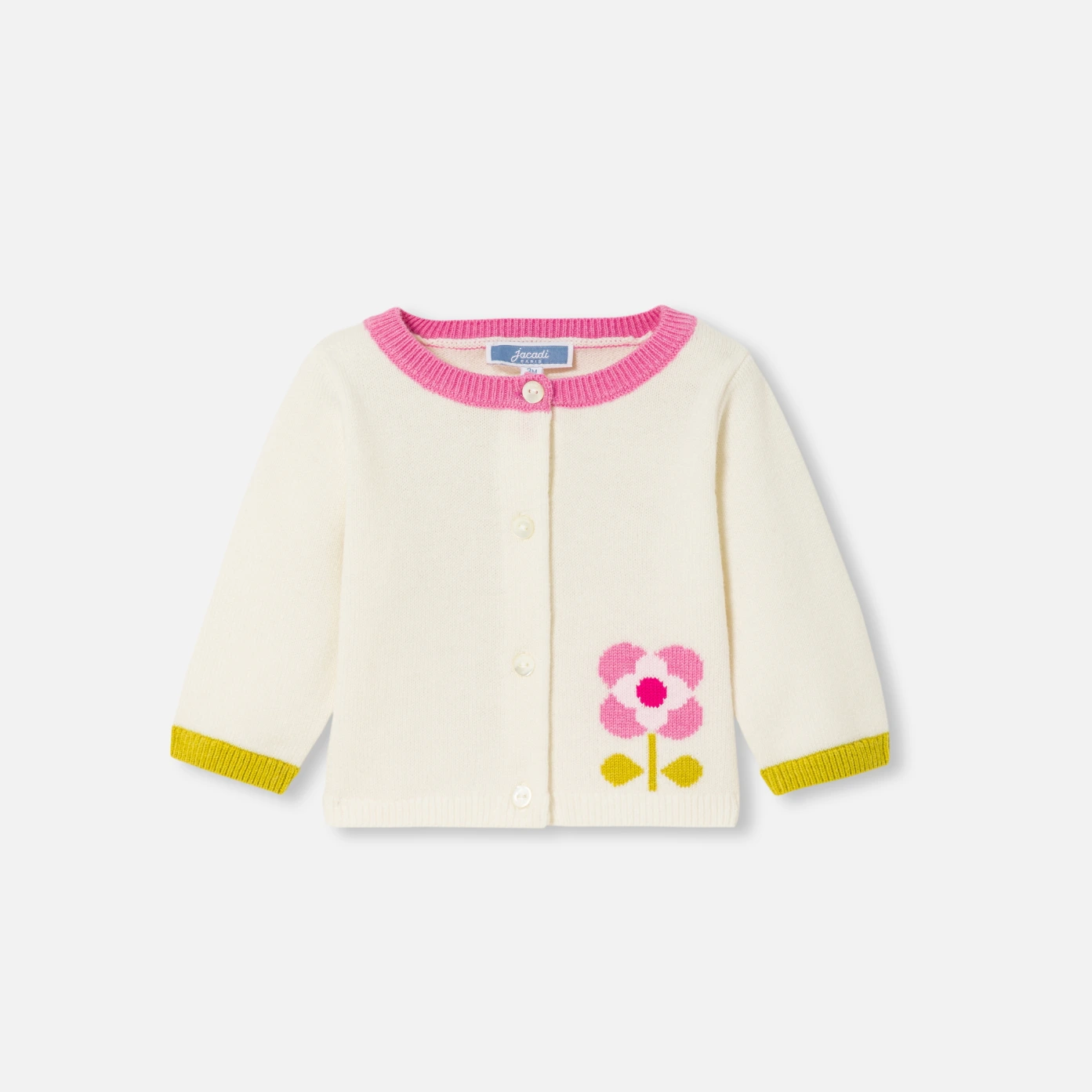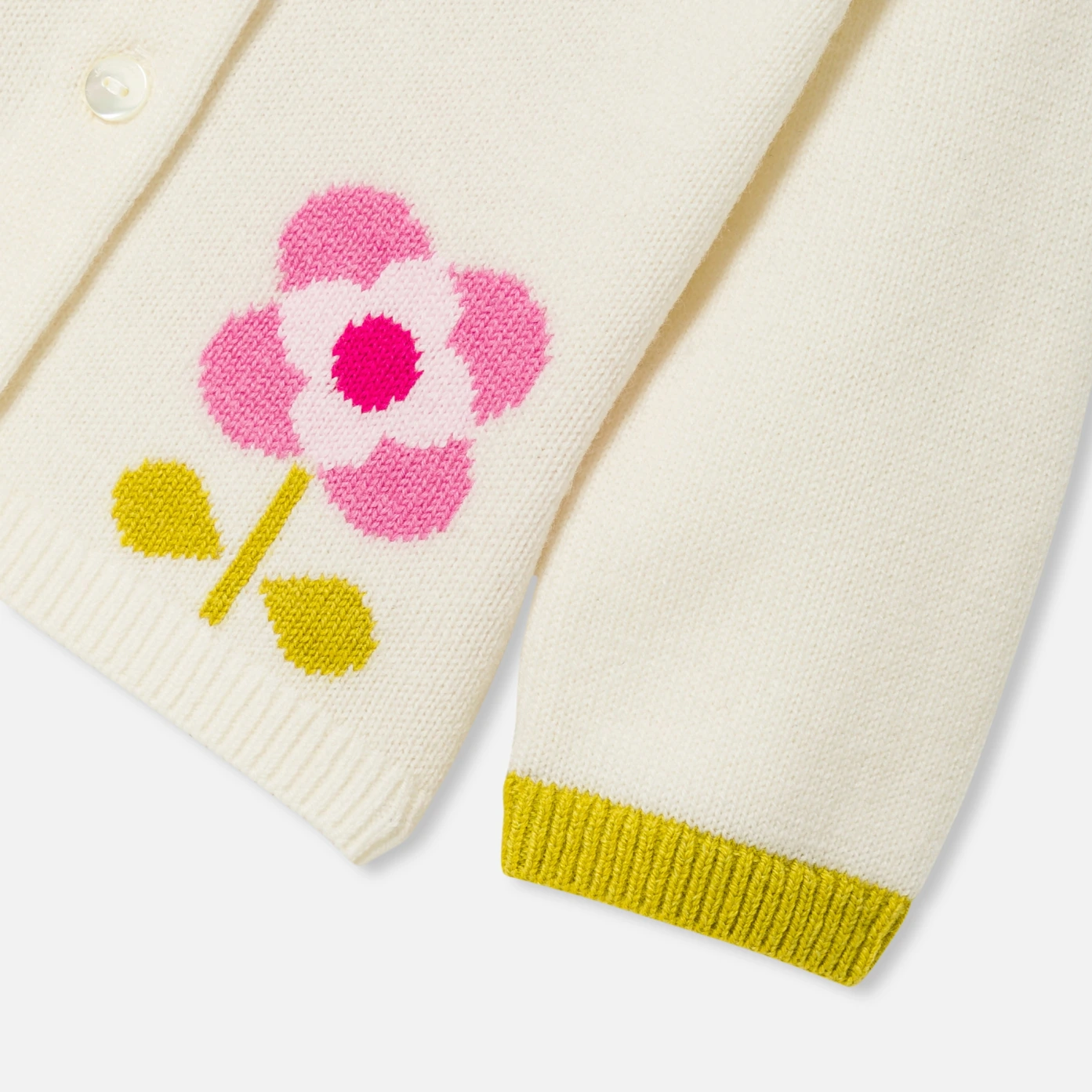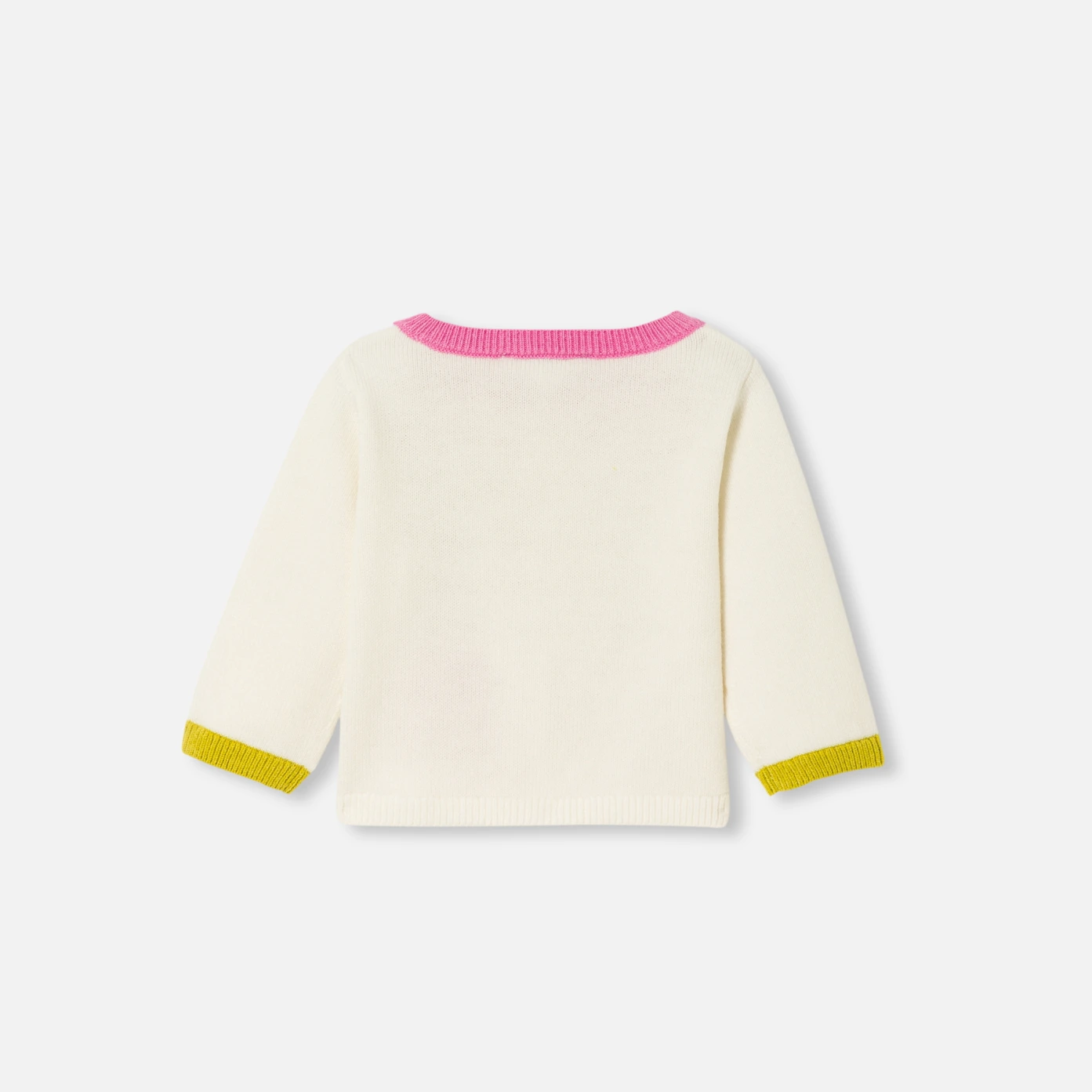 這款開襟毛衣採用環境友善的羊毛製成,可搭配任何服裝,在秋冬的季節帶來溫暖和舒適感。採用對比色飾面和嵌花設計,與該系列的連身裙和吊帶褲都可以完美的搭配,十分協調,打造現代又時尚典雅的穿衣風格。