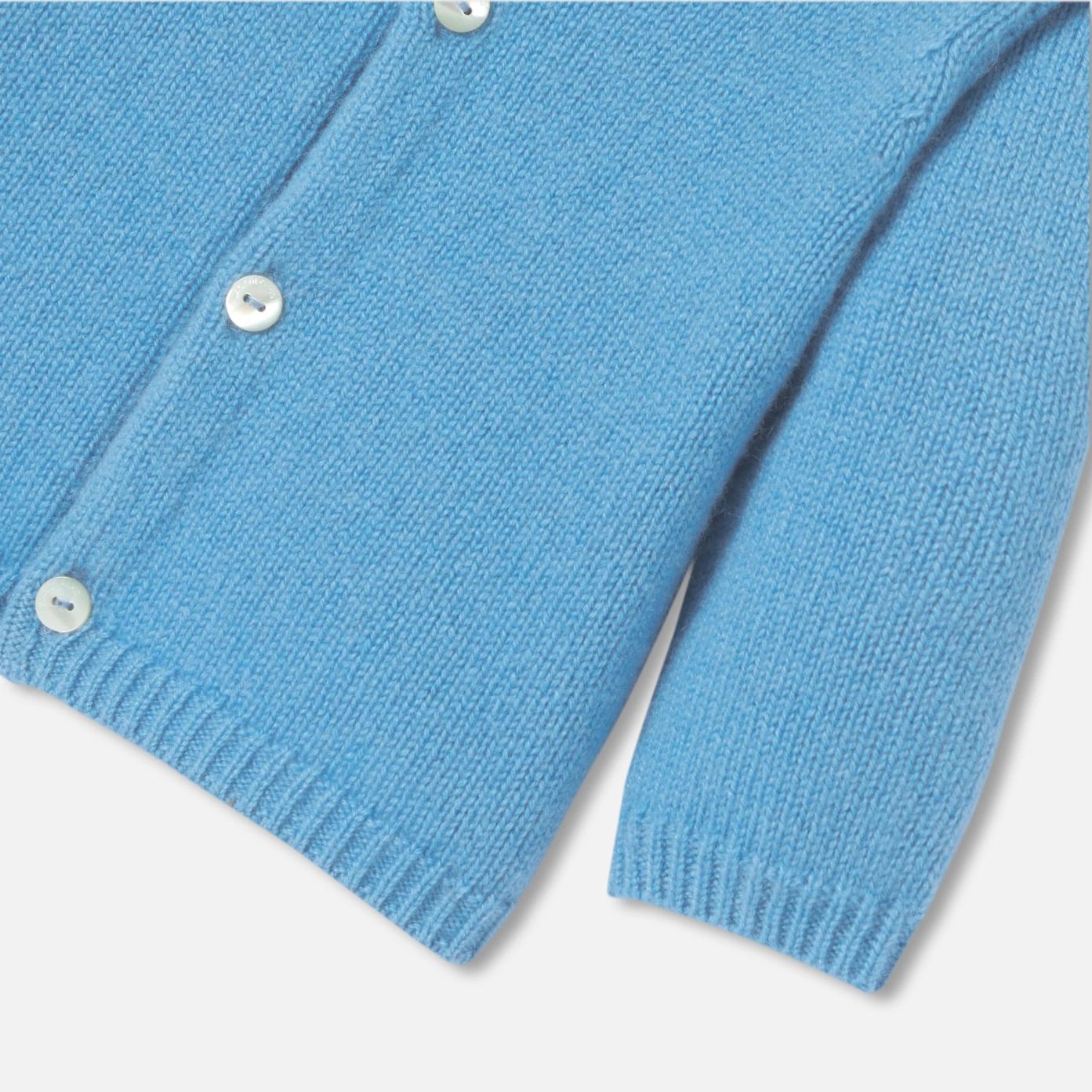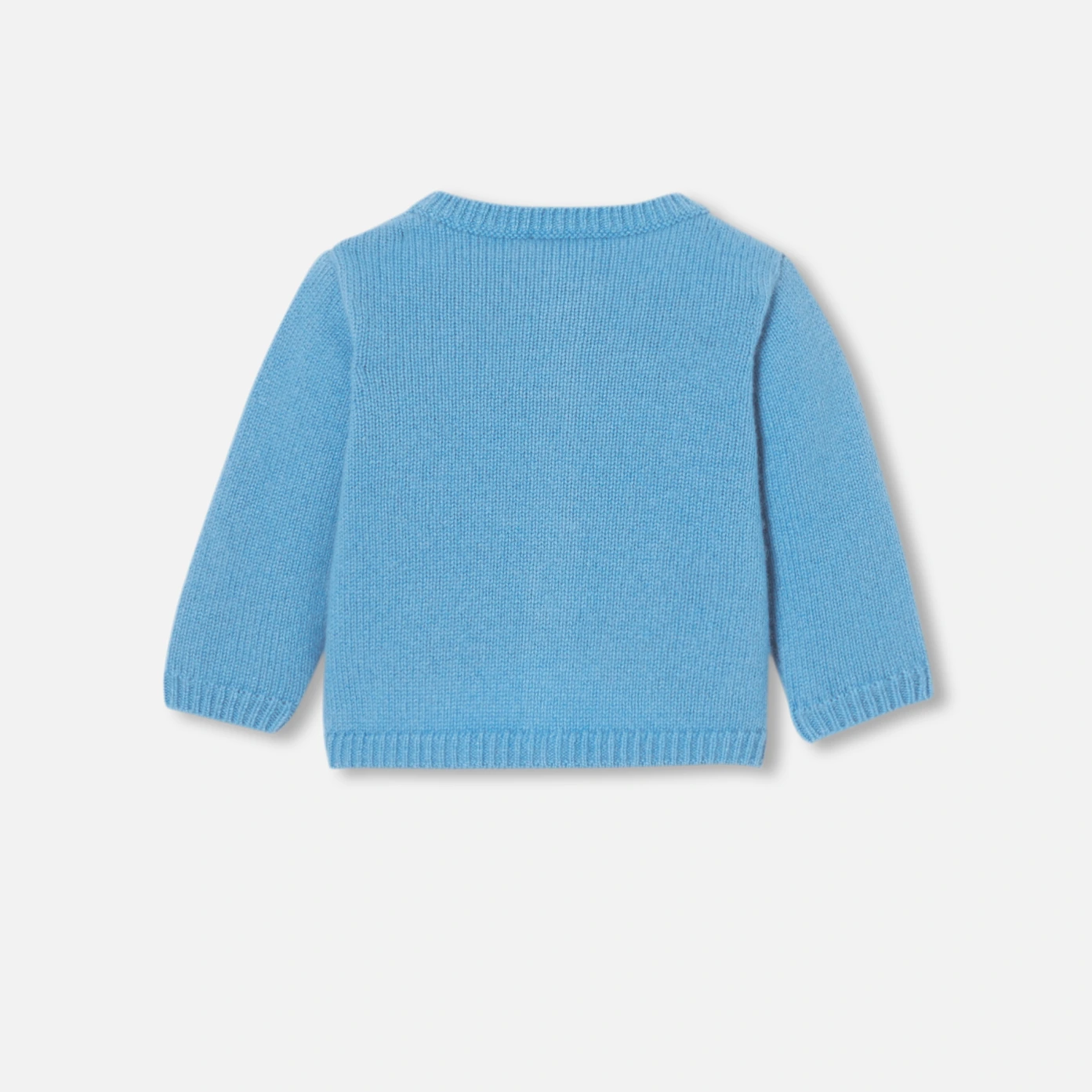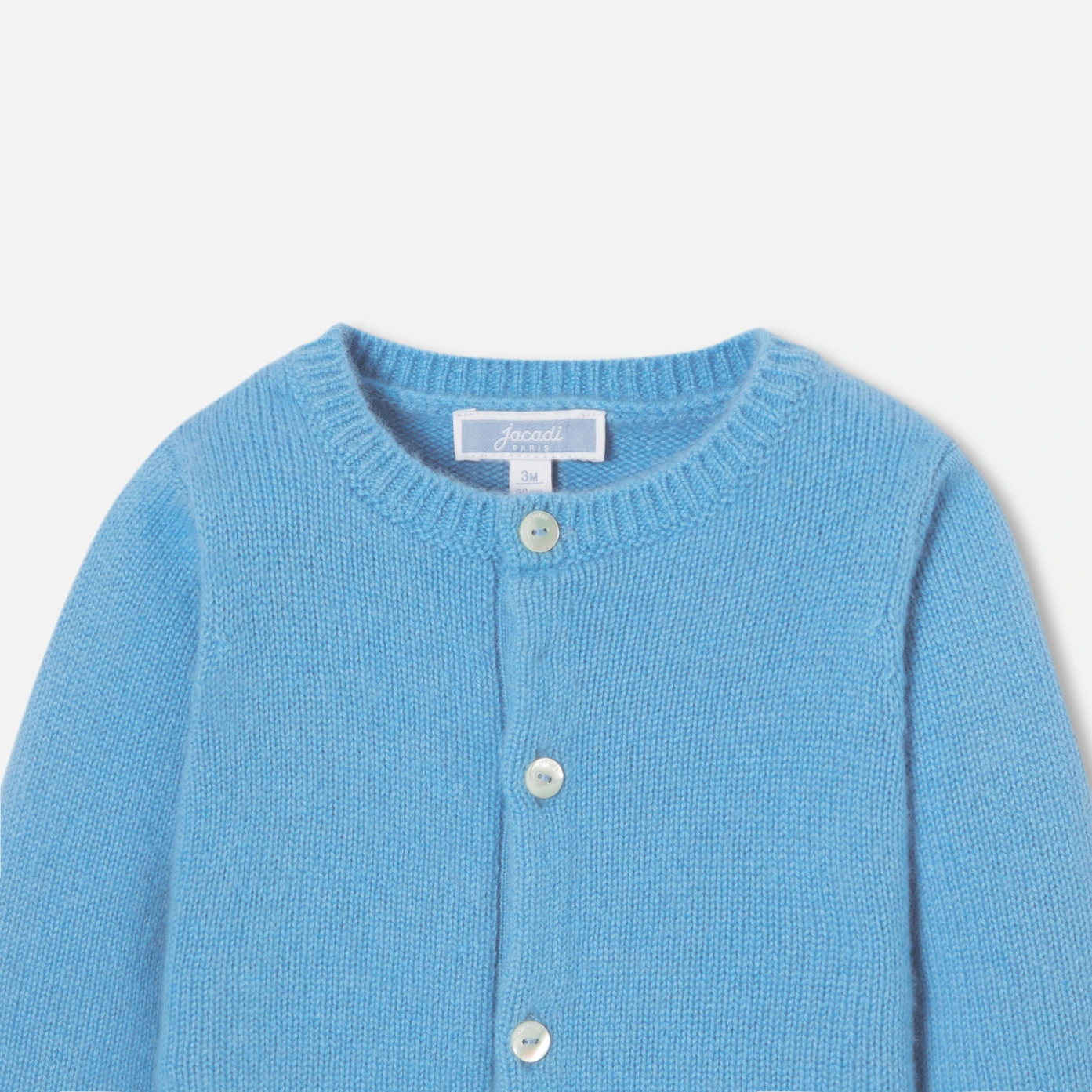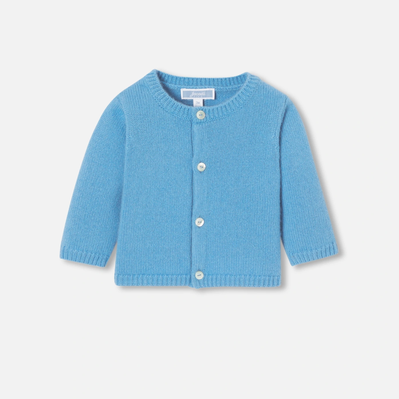 這款嬰兒開襟毛衣衫採用優雅、明亮的藍色設計,是新季衣櫥的必備單品,非常適合作為冬日保暖的服裝造型。可以搭配上牛仔吊帶褲和條紋連身衣,打造時尚風格。