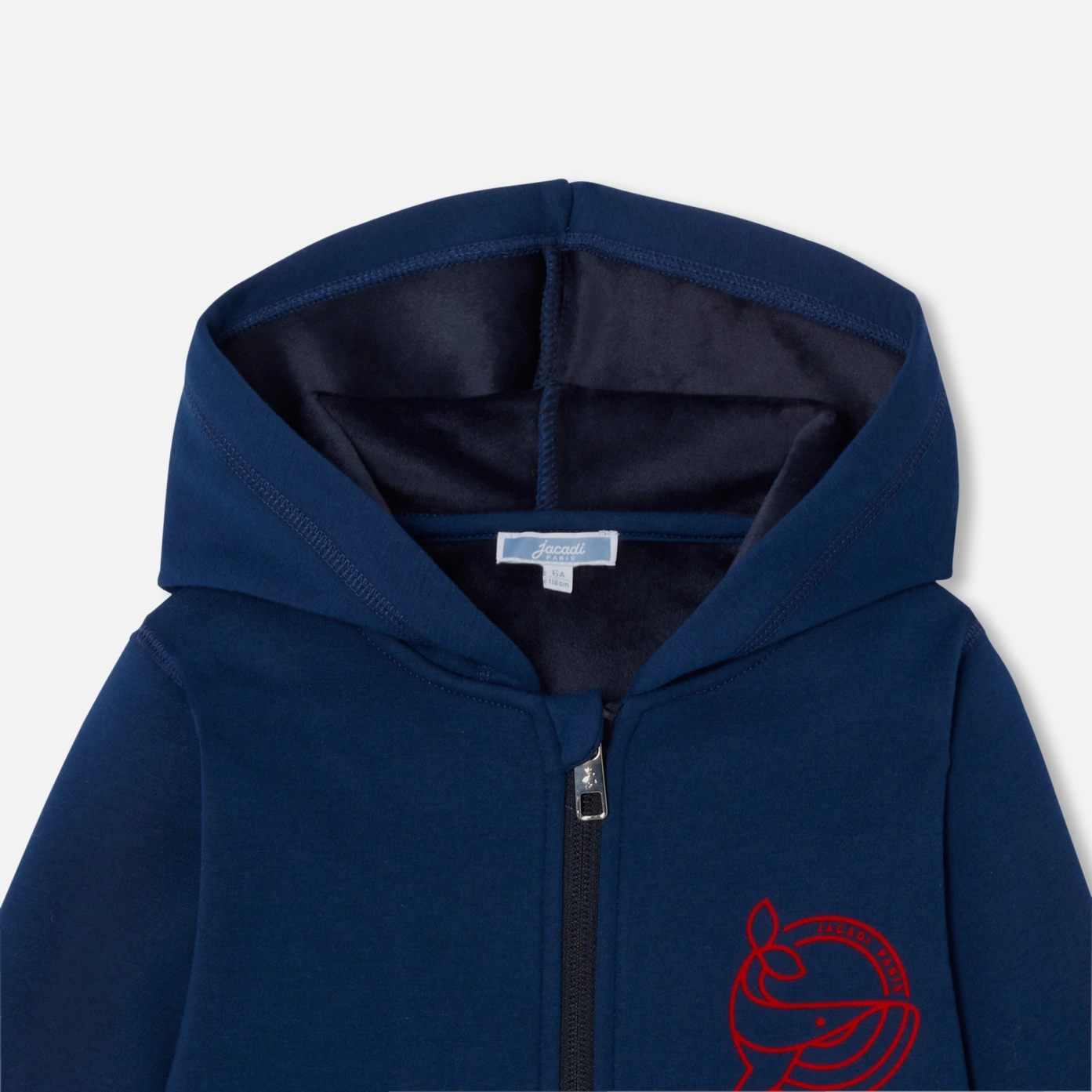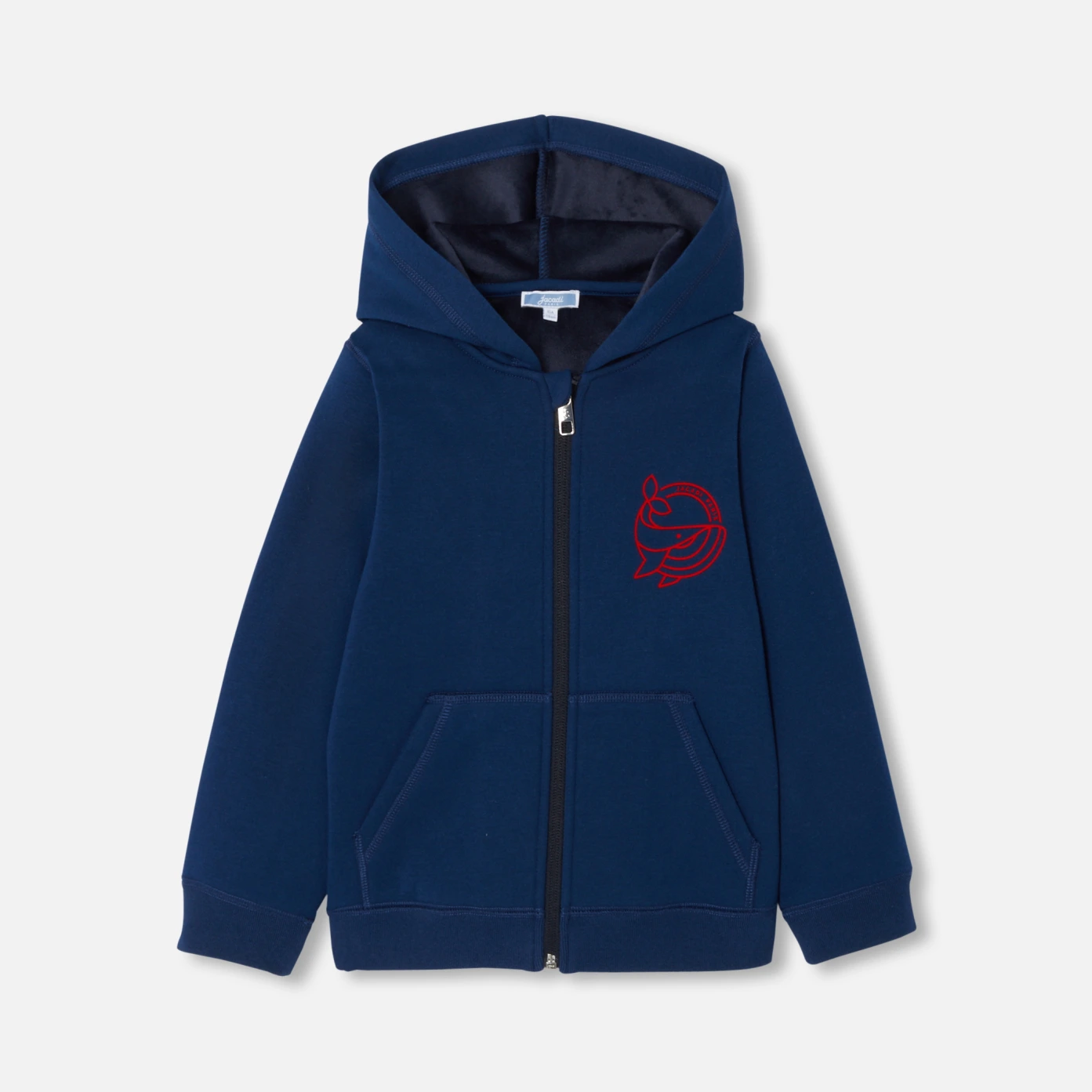 這款連帽拉鍊外套外層採用刷毛,內裡則是細絨布,提供額外保暖效果。配有連帽設計、胸前有壓印鯨魚圖案及袋鼠口袋,這款全能外套非常適合搭配長袖T恤、捲邊牛仔褲和運動鞋,展現輕鬆自在的都市風格。