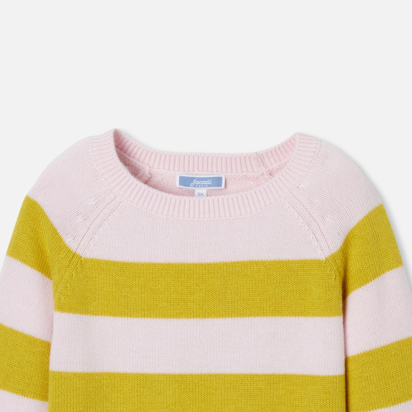 這款女孩毛衣採用柔軟、溫暖的負責任羊毛製成,以暖色調的寬條紋設計,為日常穿搭增添隨性又優雅的風格。圓領與拉克蘭袖設計,無論是搭配寬版燈芯絨長褲或運動鞋,都適合穿去與朋友聚會。