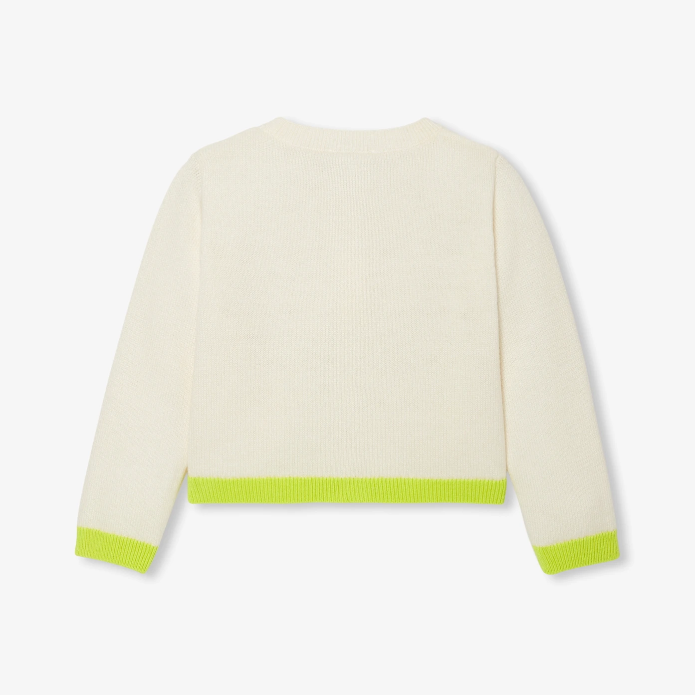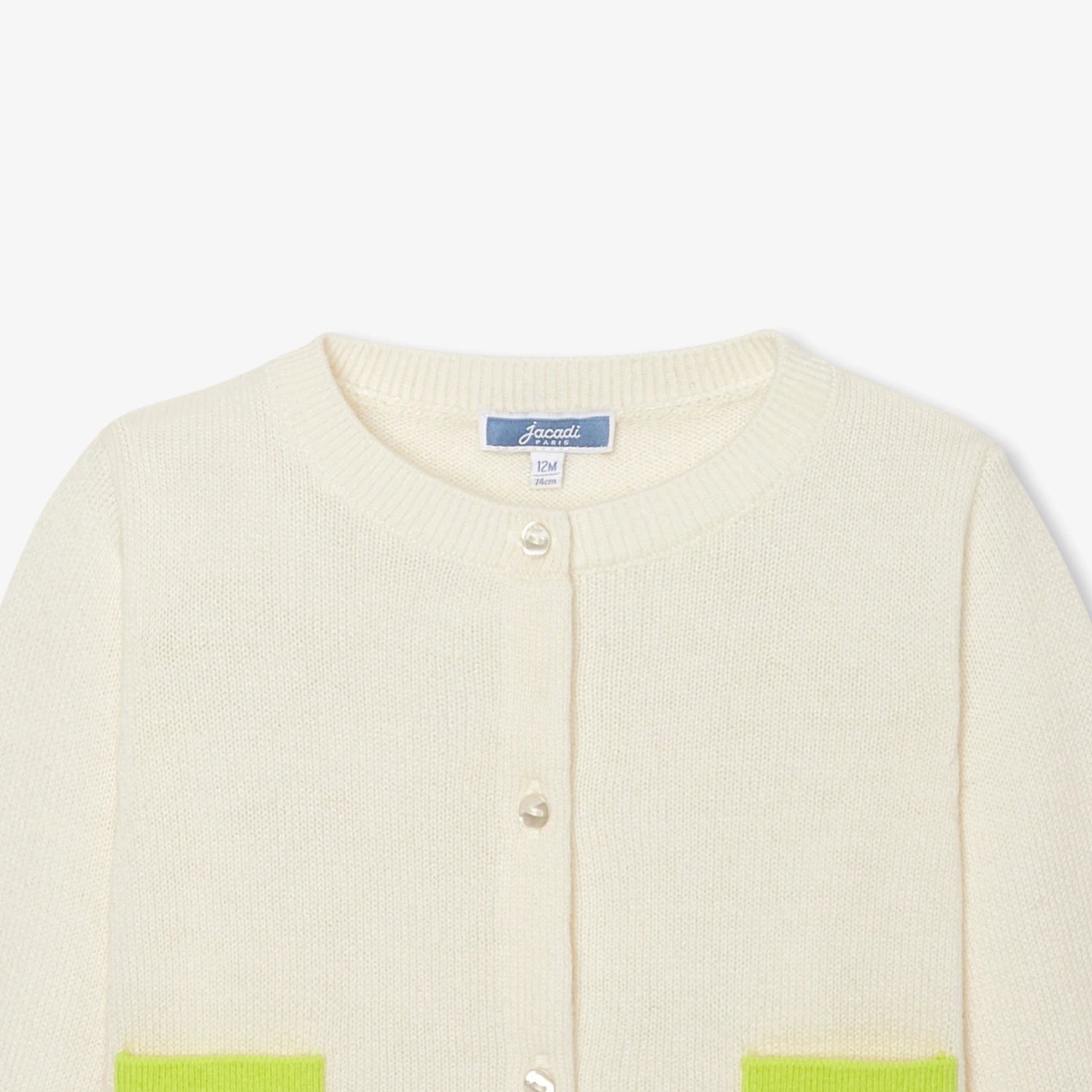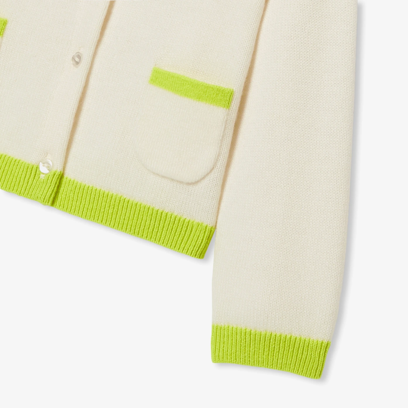 這款經典女寶寶羊毛開襟衫,帶有霓虹點綴,是冬季穿搭中的必備單品。以羊毛和羊絨混紡製成,搭配口袋與同色系鈕扣設計,可與天鵝絨連身衣和短褲搭配,增添溫暖與風格。