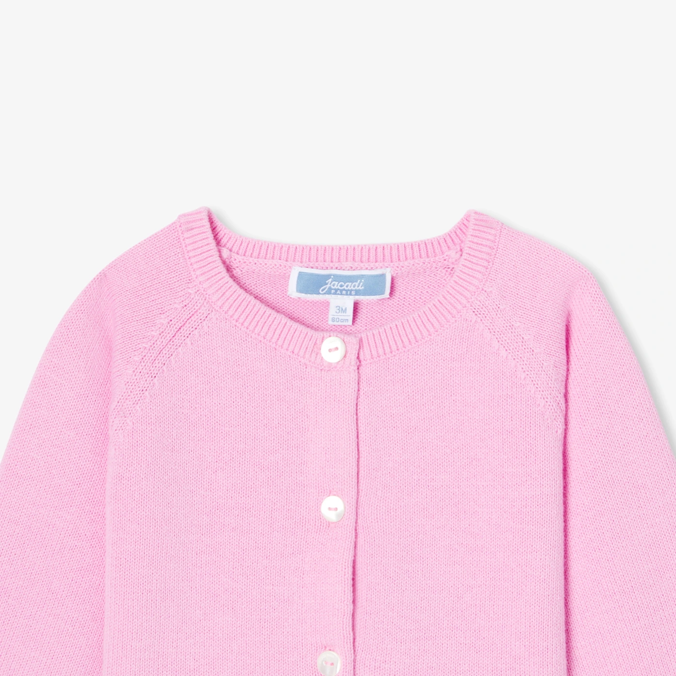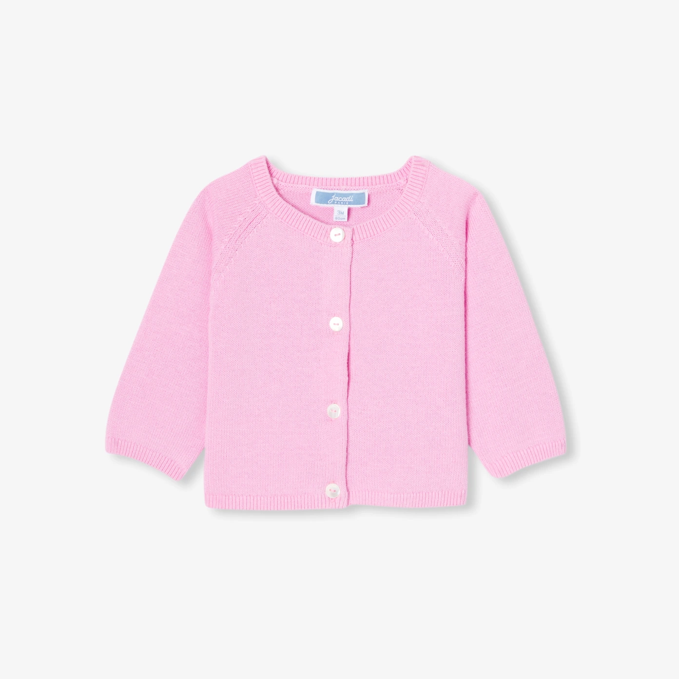 這款棉質新生女嬰開襟衫為日常穿搭帶來柔軟觸感與色彩點綴。採用針織平針織法,肩袖處設有鏤空細節,並搭配天然珠母貝鈕釦。無論搭配洋裝或連身褲,這款經典多功能單品都能讓寶寶優雅度過整個季節。