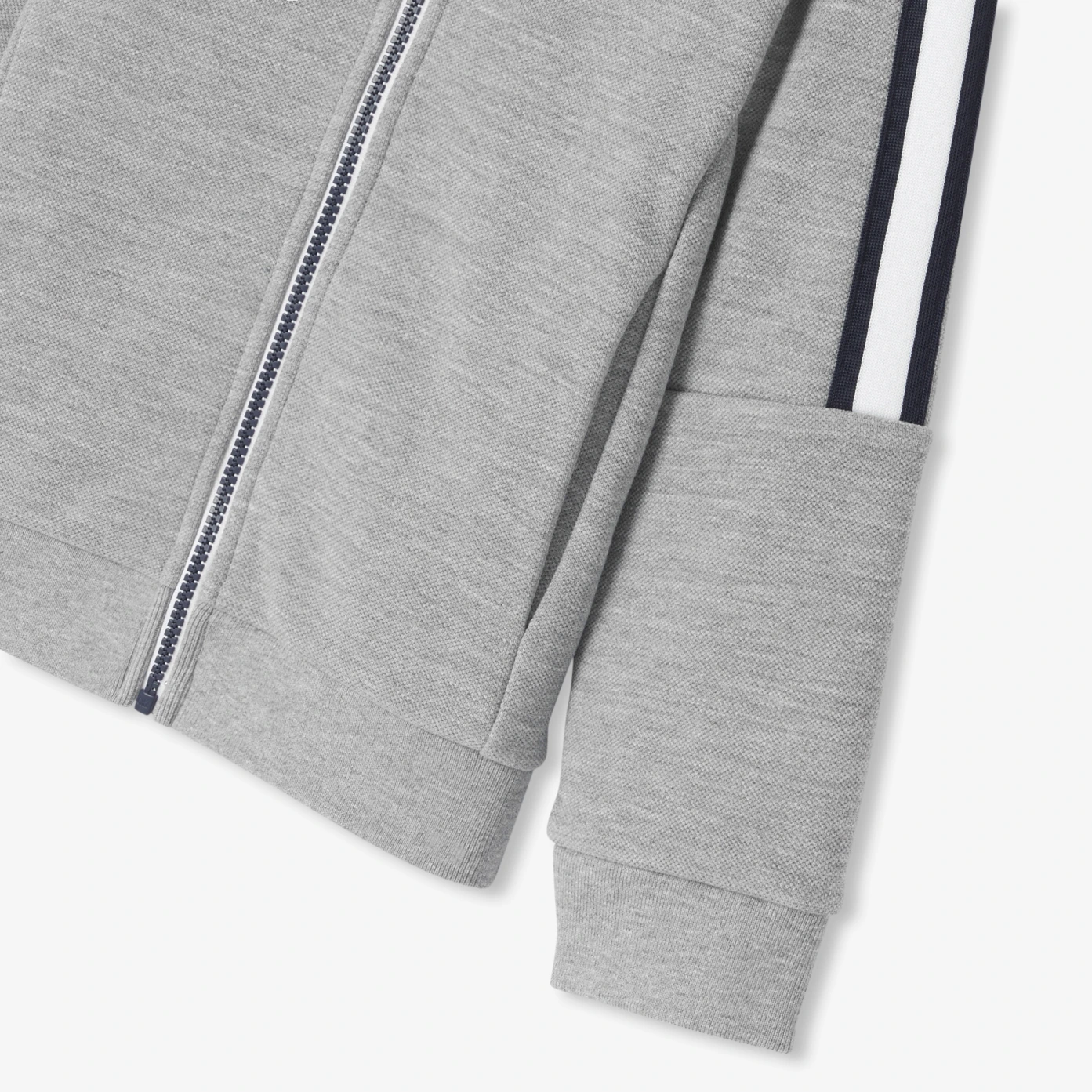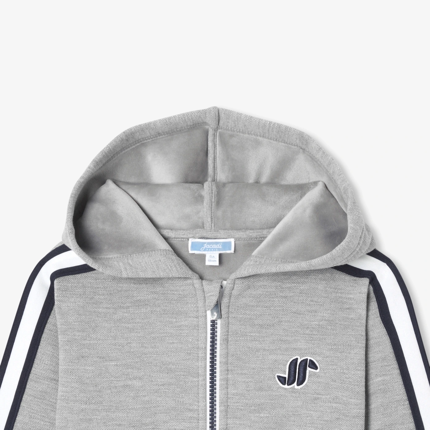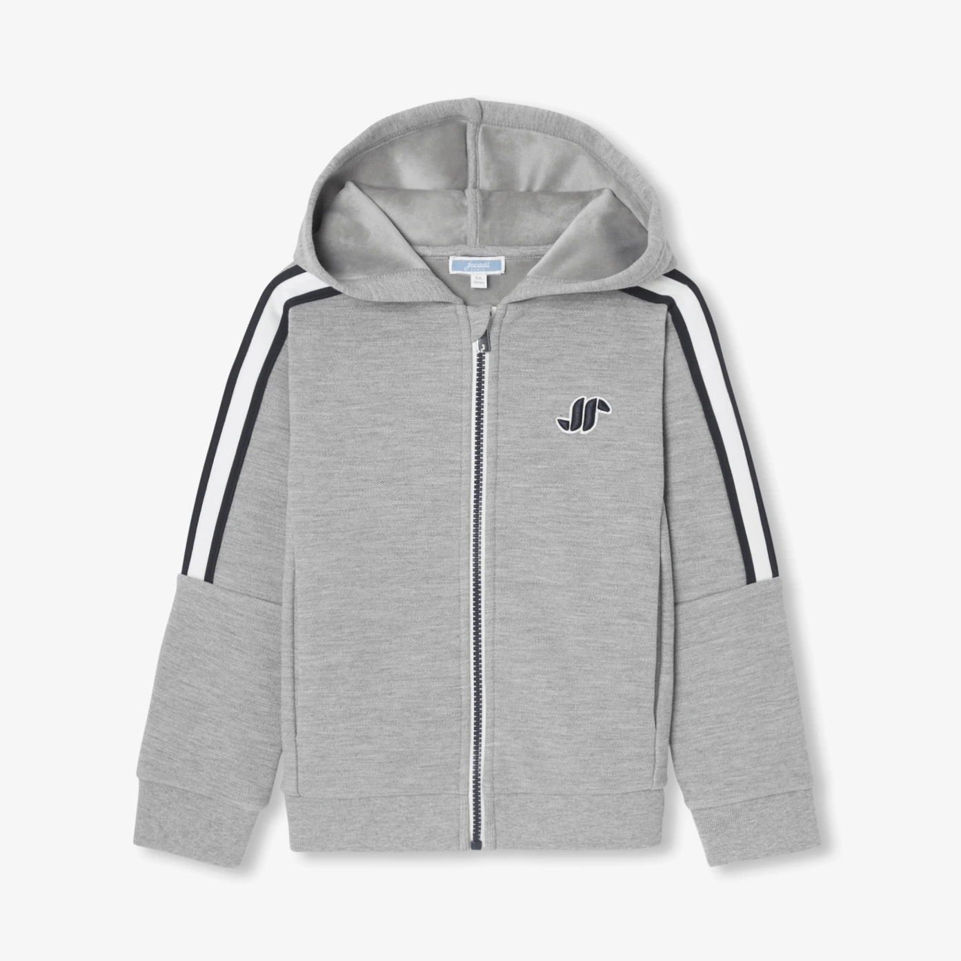 歷久不衰的男孩最愛,Jacadi 精心打造完美拉鍊連帽開襟外套。採用棉質針織刷毛,內裡柔軟絨毛襯裡,袖子以條紋滾邊點綴,展現摩登都會風格。連帽設計與拉鍊開合,搭配同款運動褲或牛仔褲,百搭多變。