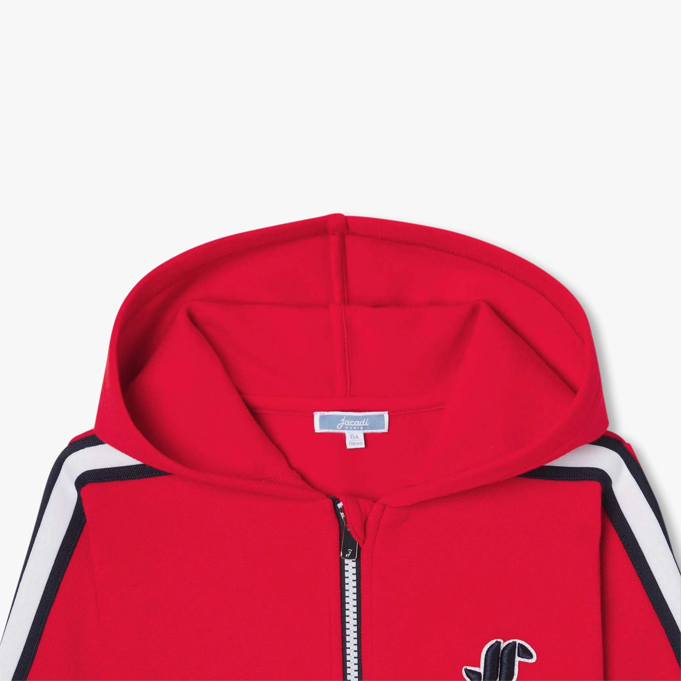 這款大男童開襟外套以舒適的棉質珠地布搭配背面平紋針織內裡設計,為開學季打造兼具運動風與時尚感的穿搭選擇。條紋滾邊與胸前徽章細節,增添整體造型亮點。拉鍊開襟設計方便穿脫,可與牛仔褲或運動褲搭配,輕鬆應對上學與戶外活動。