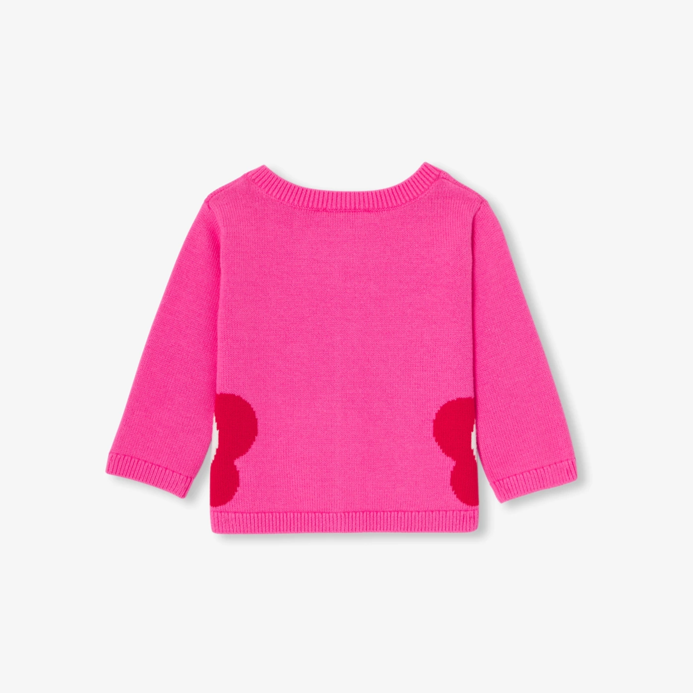 這款新生女嬰開襟線衫為開學季衣櫥注入活潑亮眼的風格。採用柔軟純棉平針織面料,兩側點綴幾何花卉提花圖案,展現復古與現代交融的設計巧思。搭配天鵝絨洋裝,打造優雅又富都會感的造型。