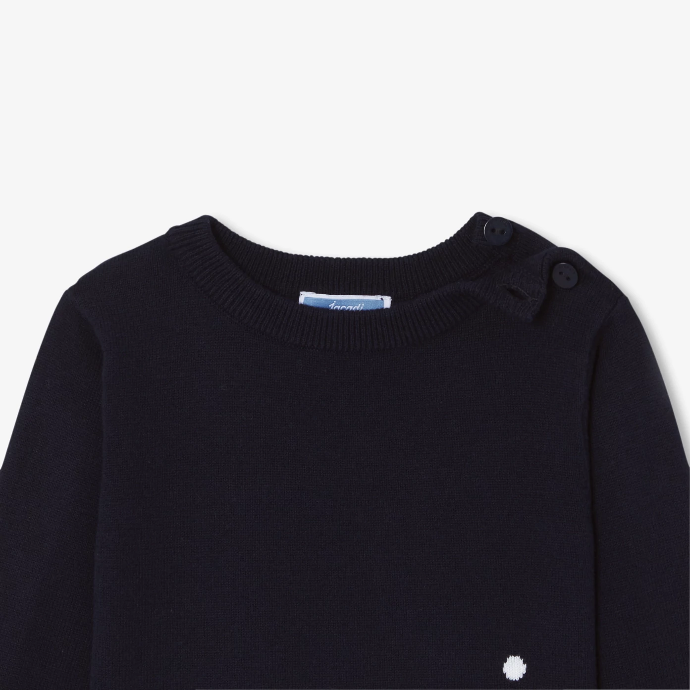 這款男寶寶棉質線衫採用柔軟舒適的棉質製成,肩部設有鈕釦開合設計,底部則為紅色小火車提花圖案,為經典剪裁融入一抹童趣細節,展現法式日常的優雅氣質,溫柔陪伴寶寶每一天的探索旅程。